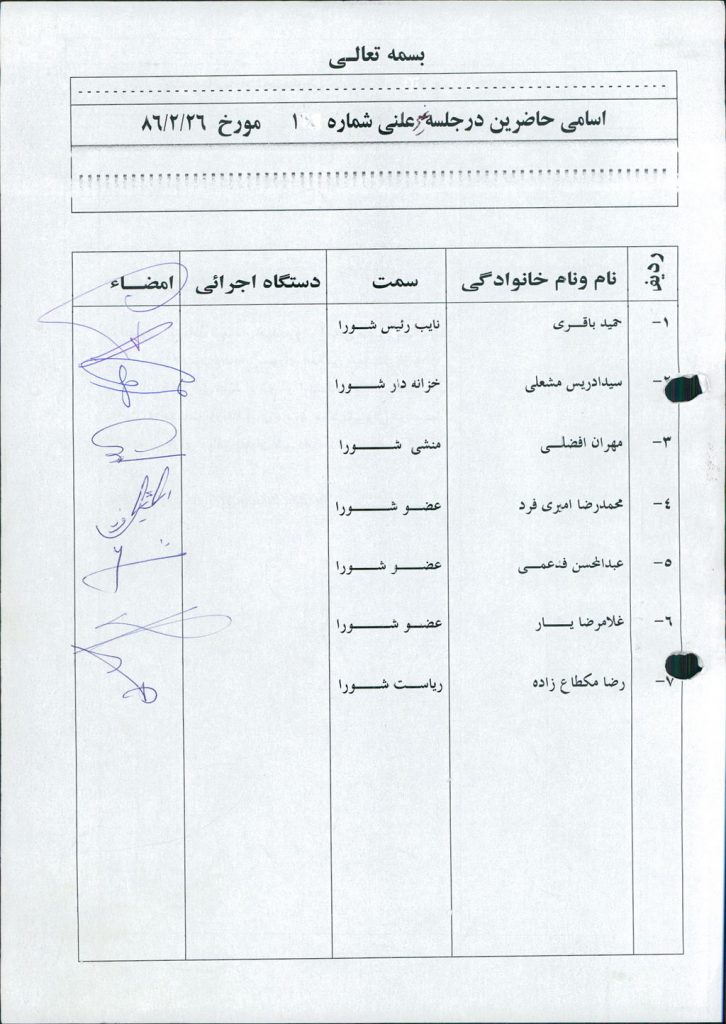 مصوبه شماره ۱ جلسه شماره ۱ شورای اسلامی شهر امیدیه