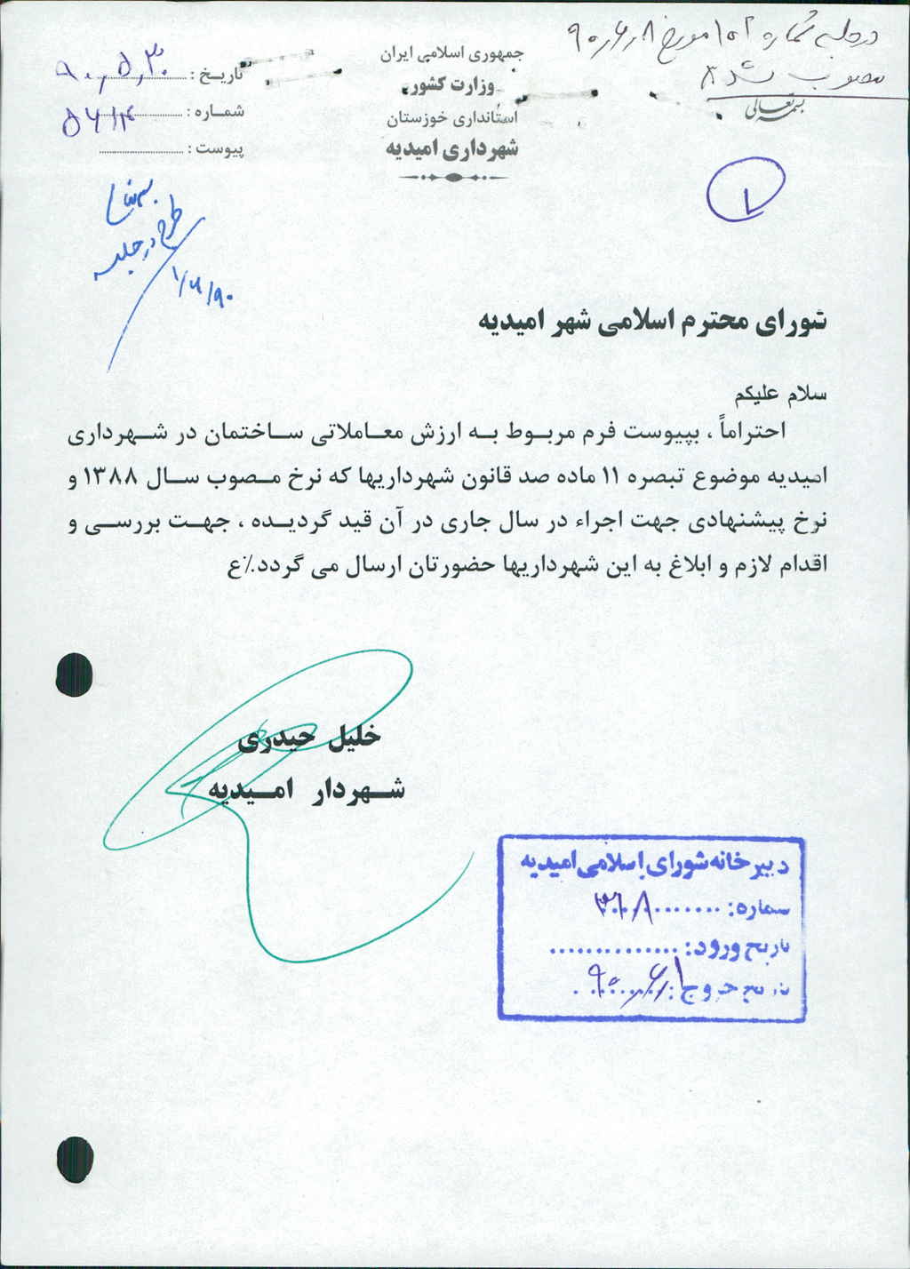 مصوبه شماره ۱ جلسه شماره ۱۰۲ شورای اسلامی شهر امیدیه