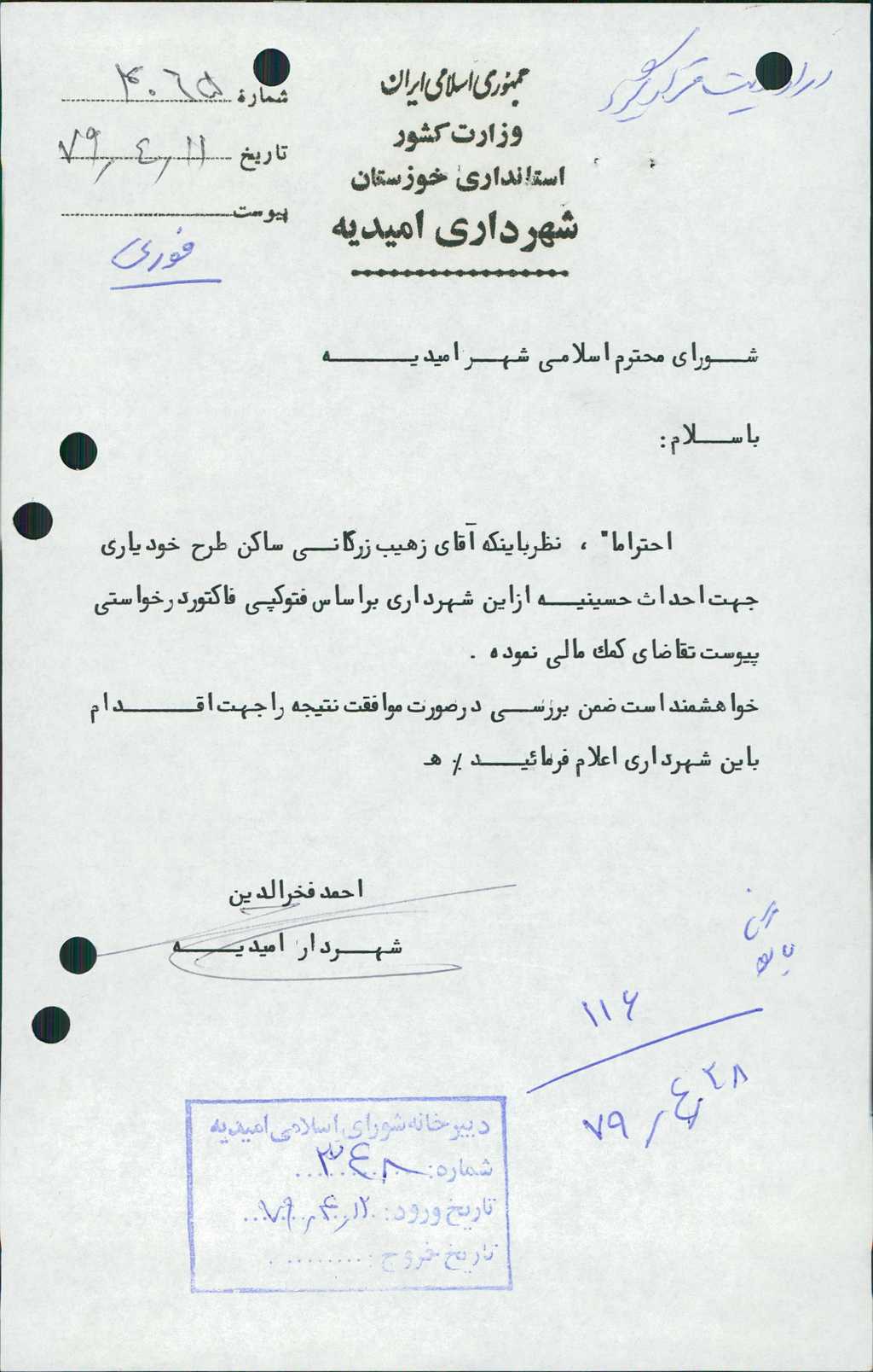 بسم الله الرحمن الرحیم مصوبه شماره ۱ جلسه شماره ۱۱۶ شورای اسلامی شهر امیدیه