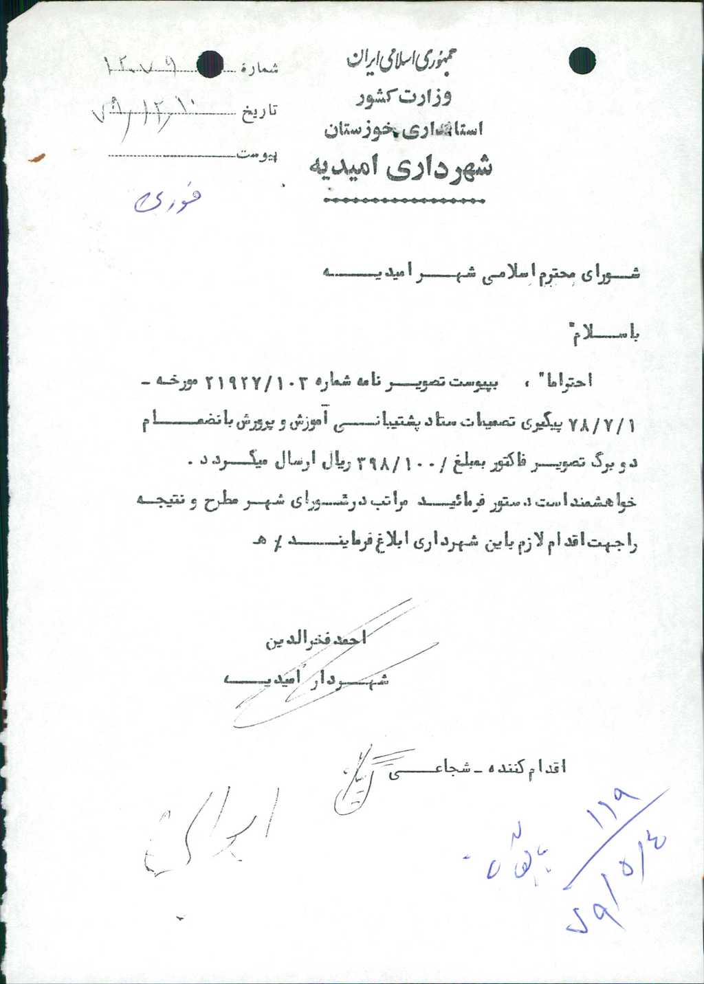 مصوبه شماره ۱ جلسه شماره ۱۱۸ شورای اسلامی شهر امیدیه