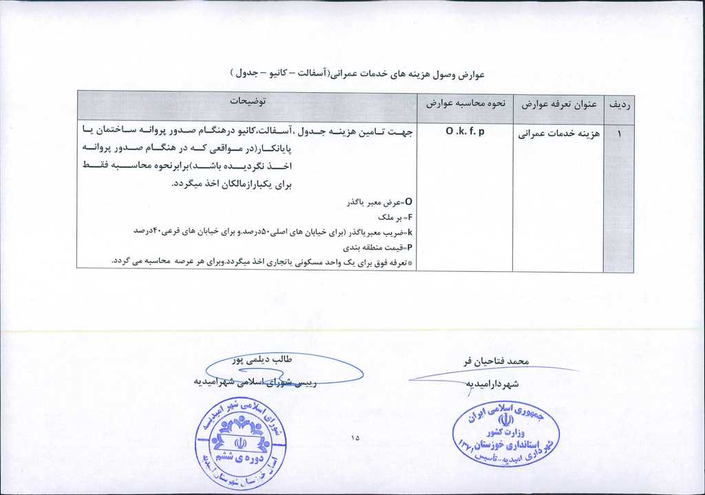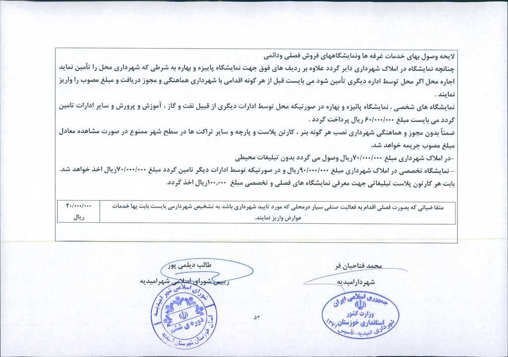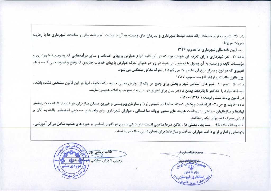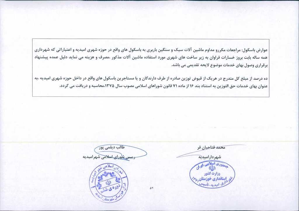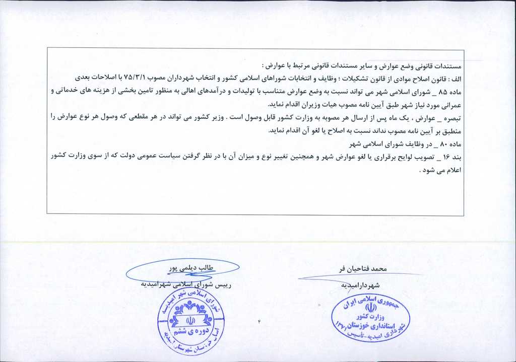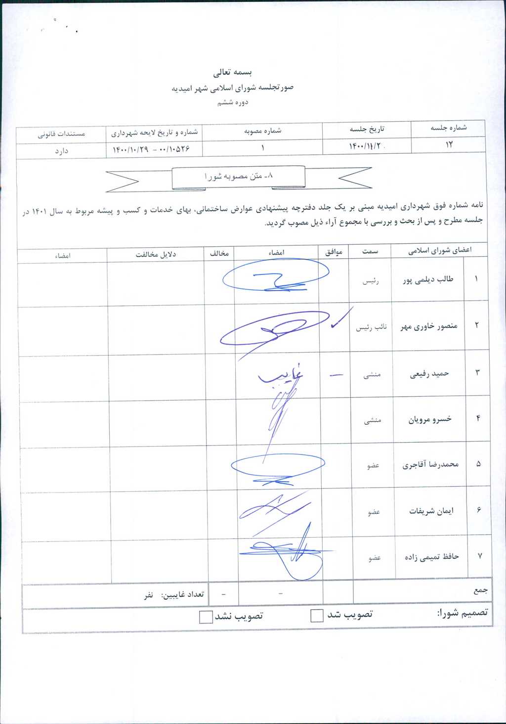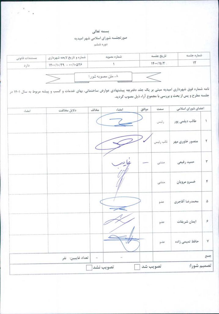 مصوبه شماره ۱ جلسه شماره ۱۲ شورای اسلامی شهر امیدیه