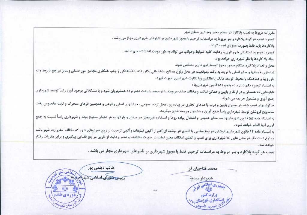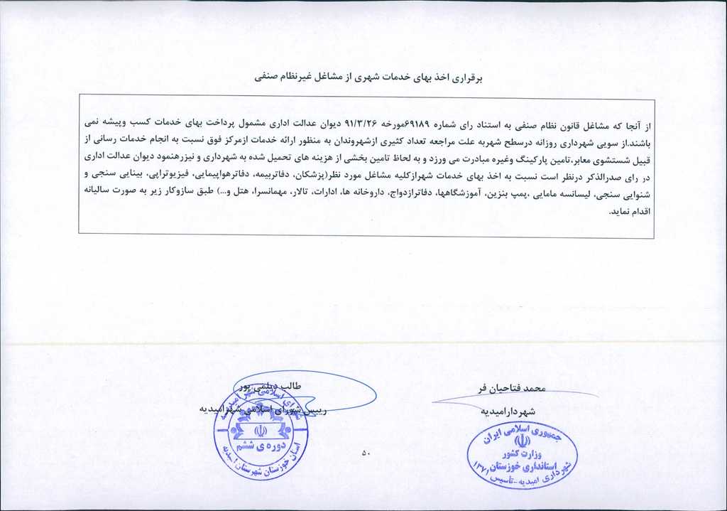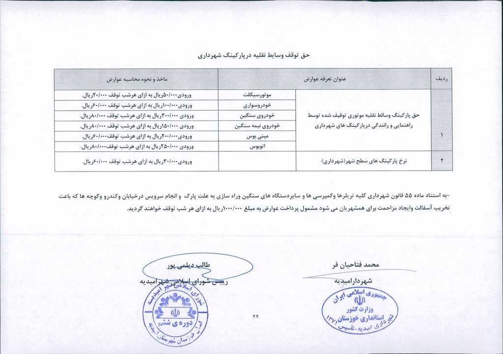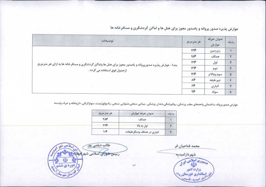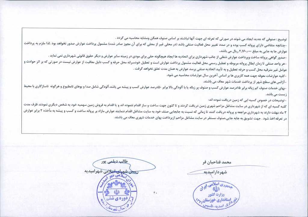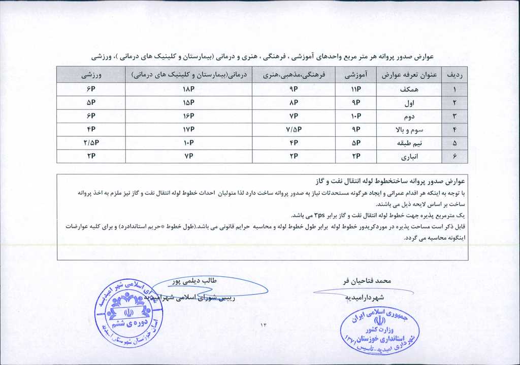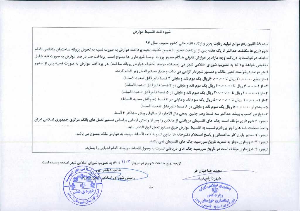مصوبه شماره ۱ جلسه شماره ۱۲ شورای اسلامی شهر امیدیه