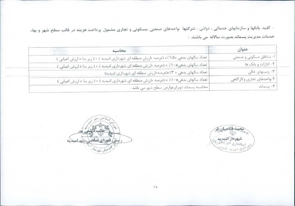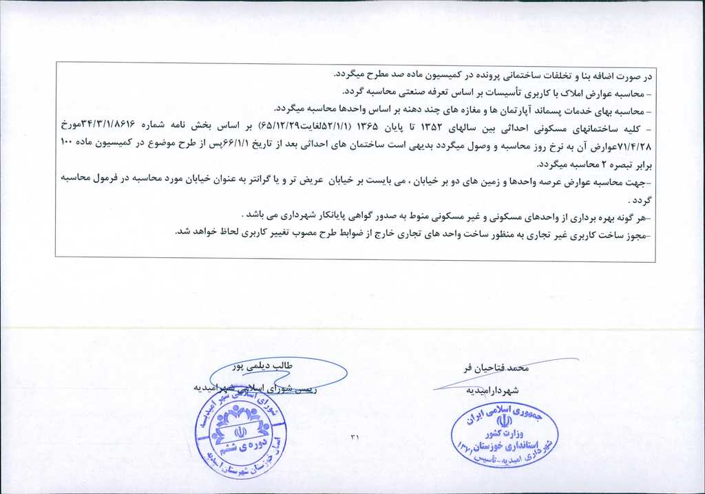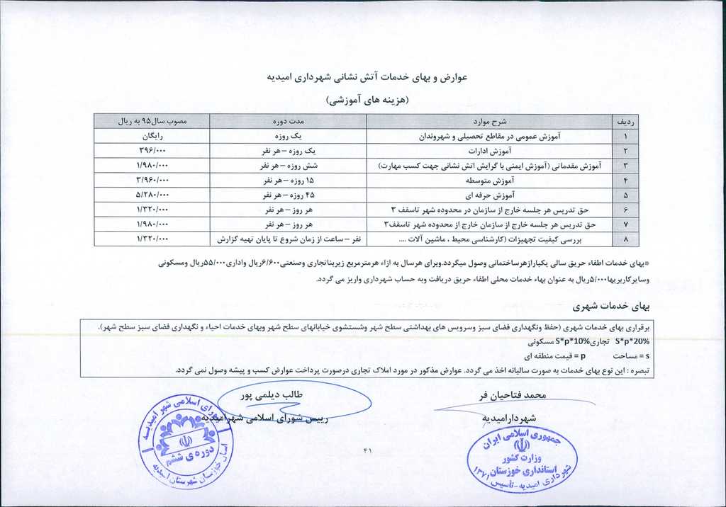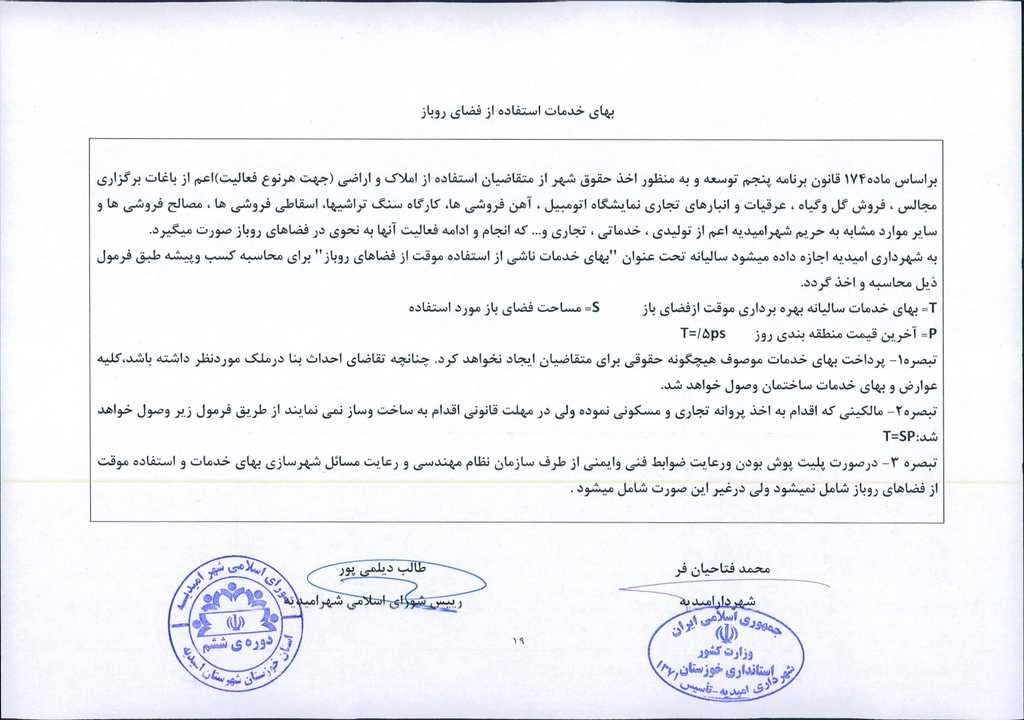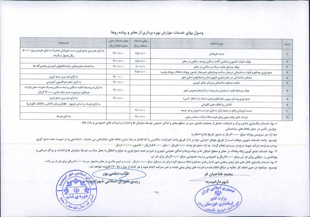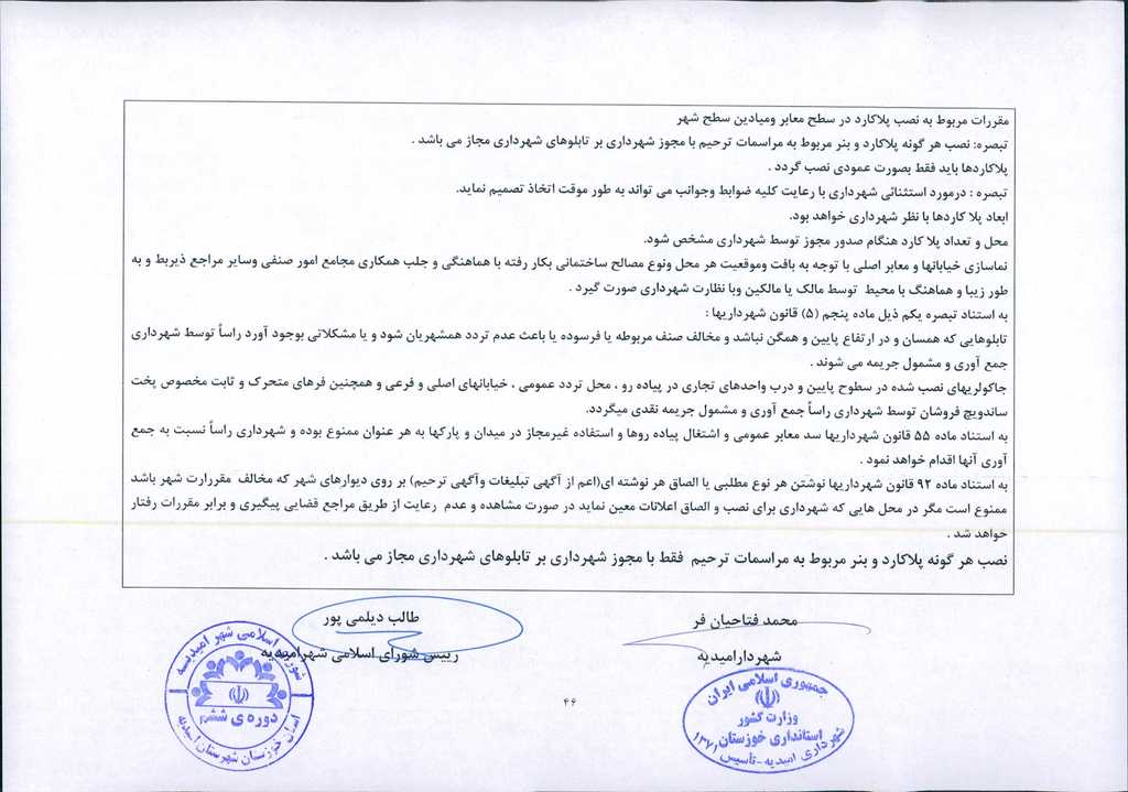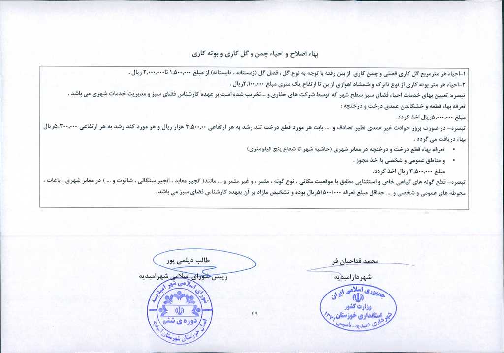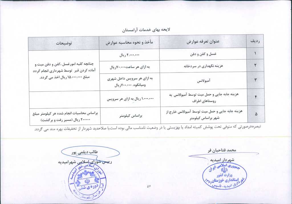 مصوبه شماره ۱ جلسه شماره ۱۲ شورای اسلامی شهر امیدیه