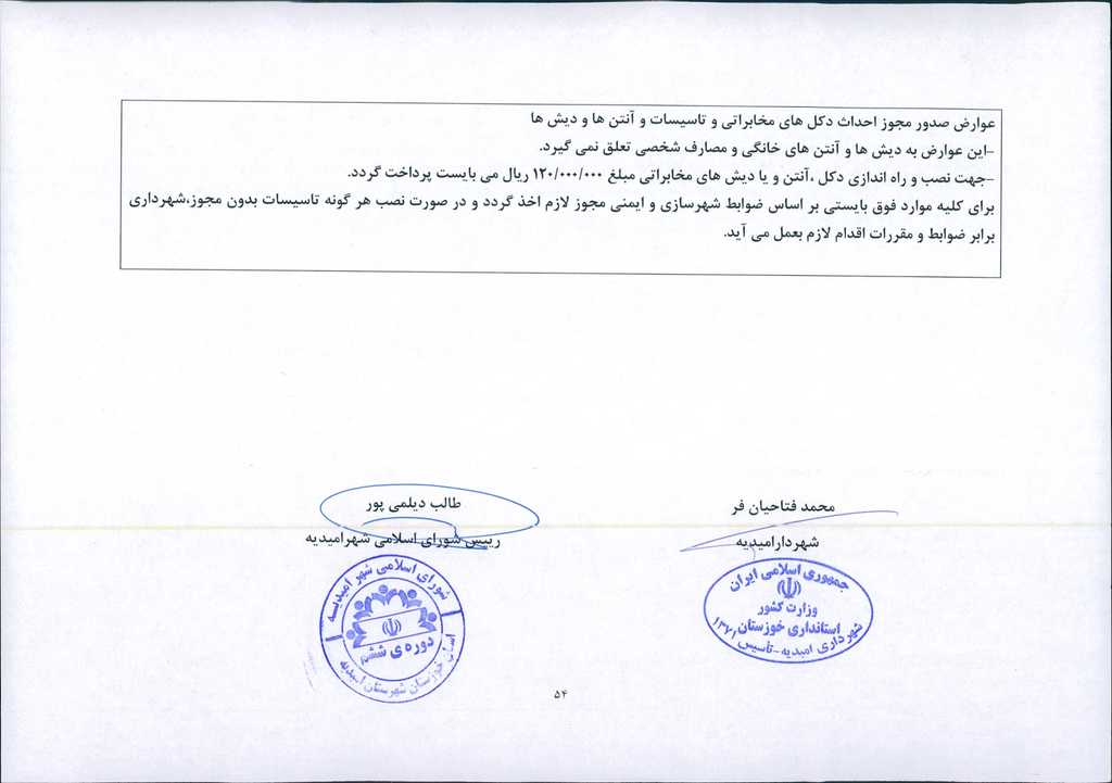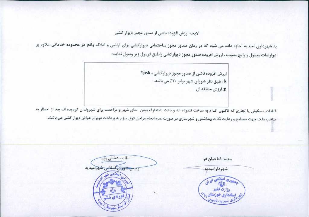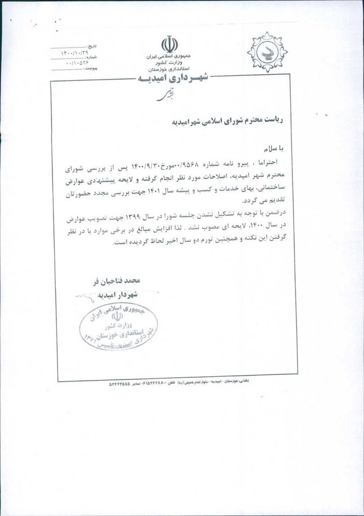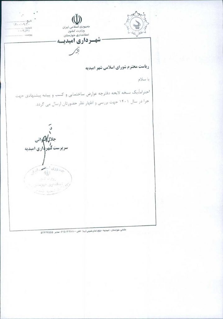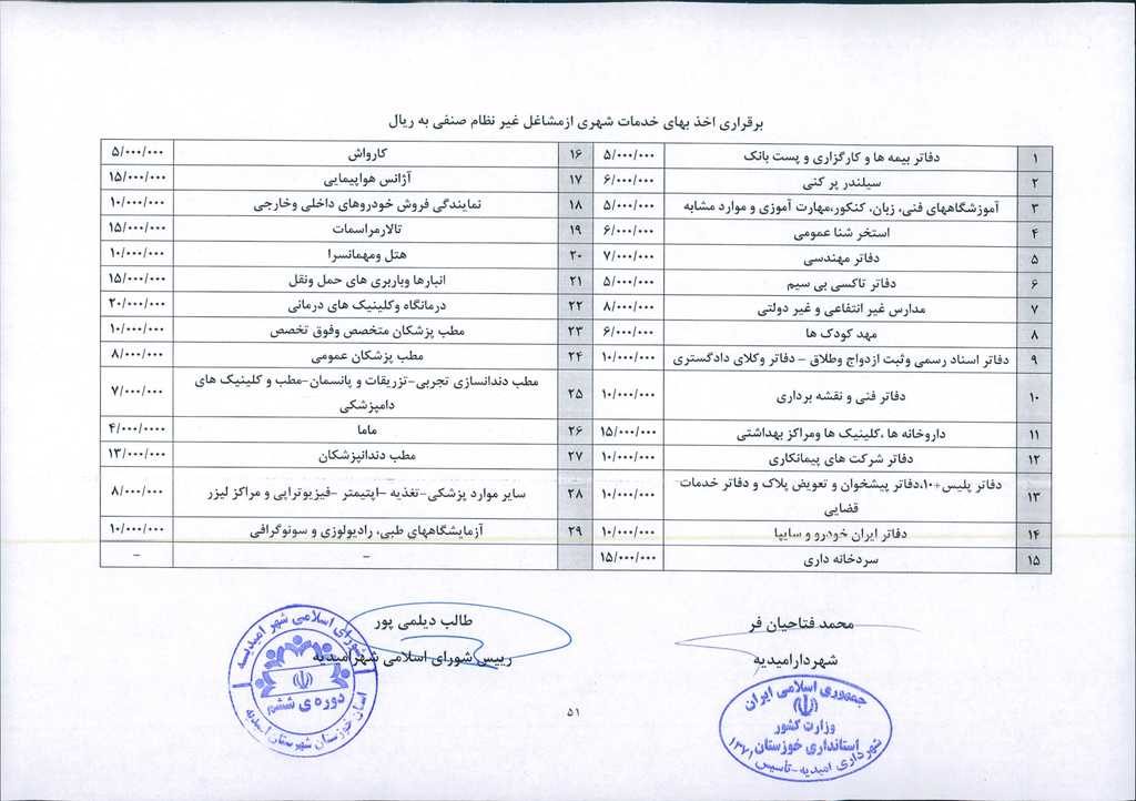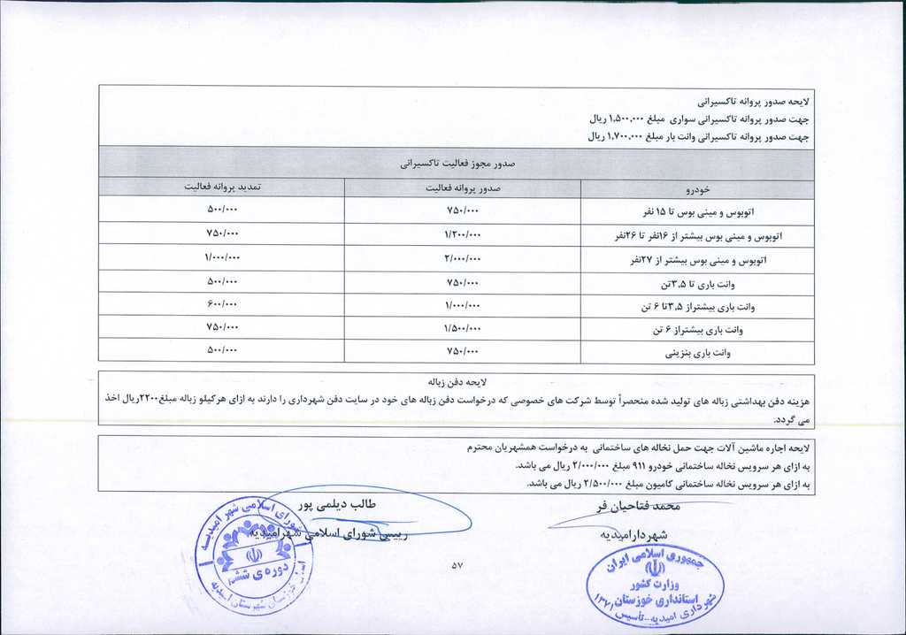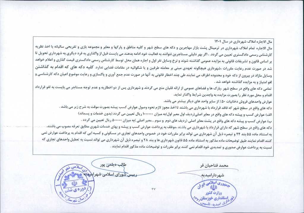 مصوبه شماره ۱ جلسه شماره ۱۲ شورای اسلامی شهر امیدیه