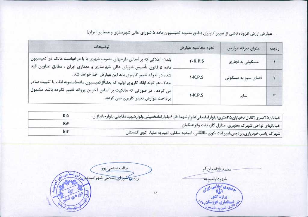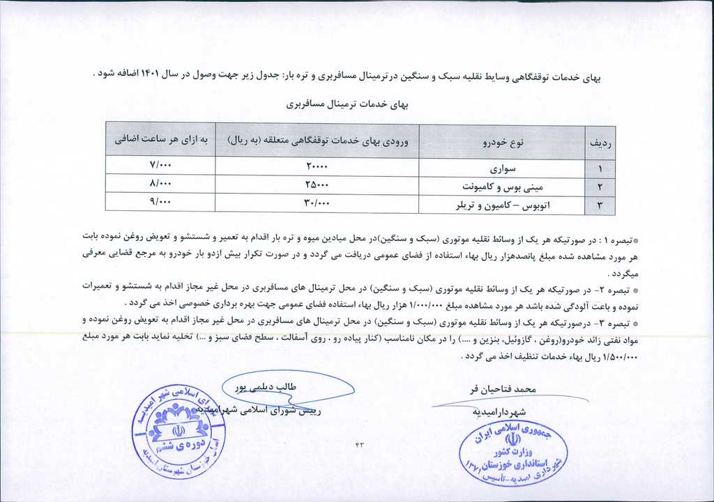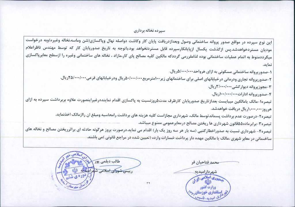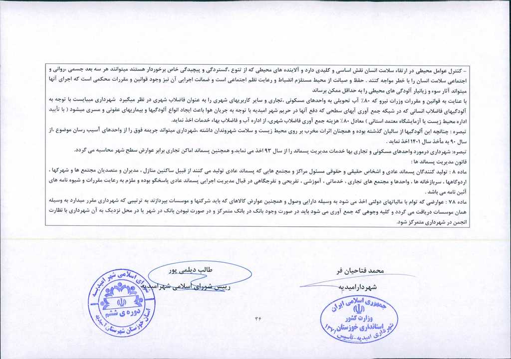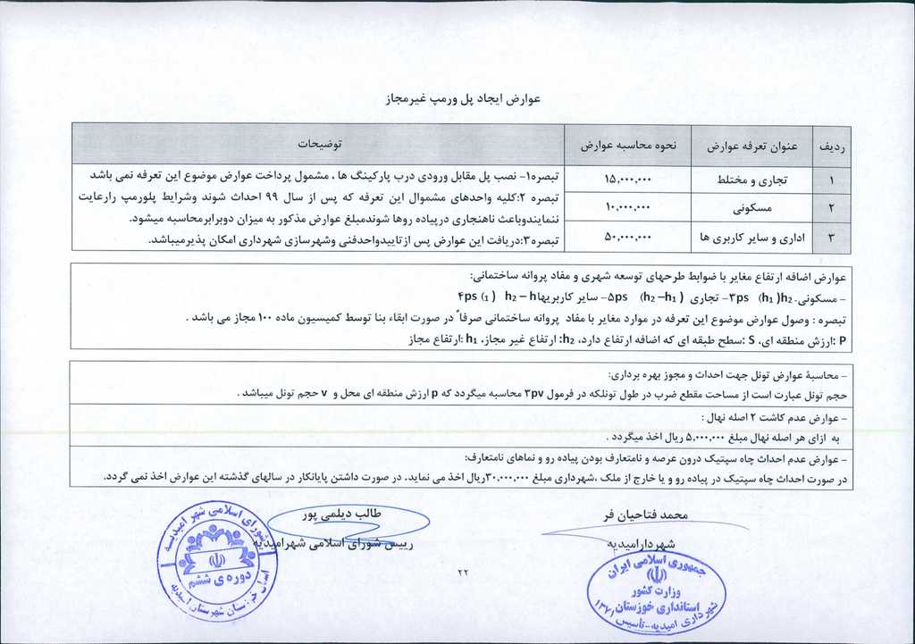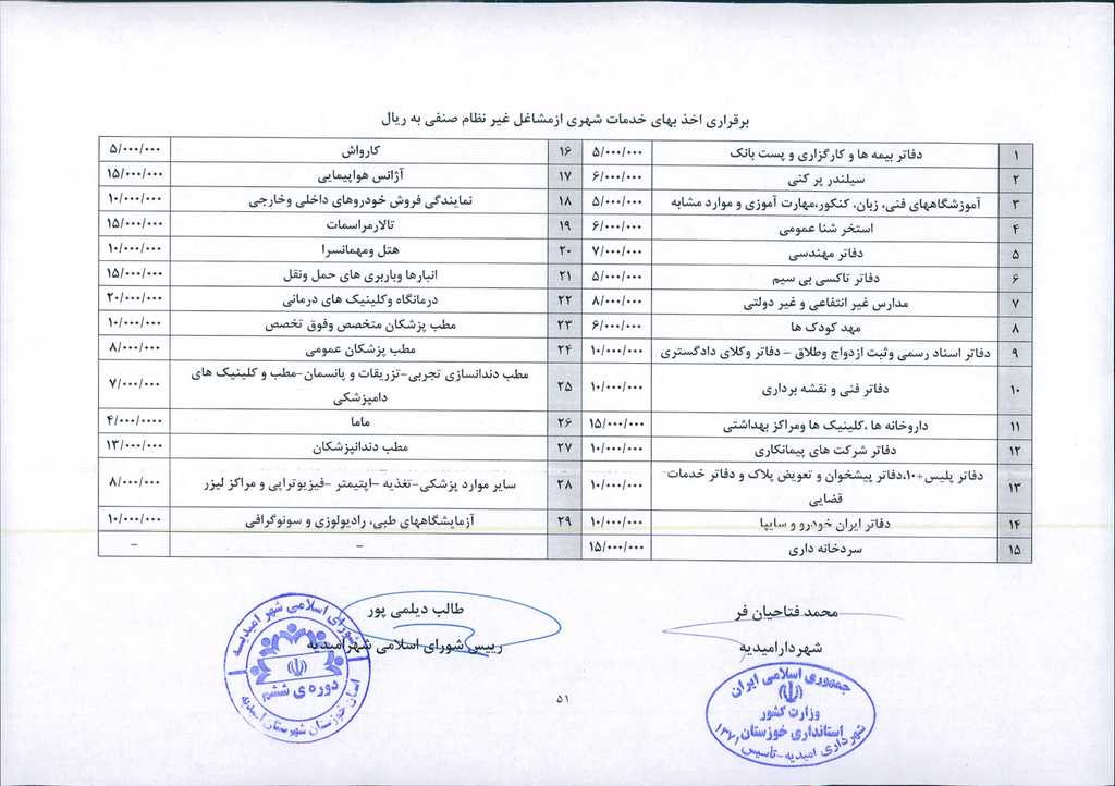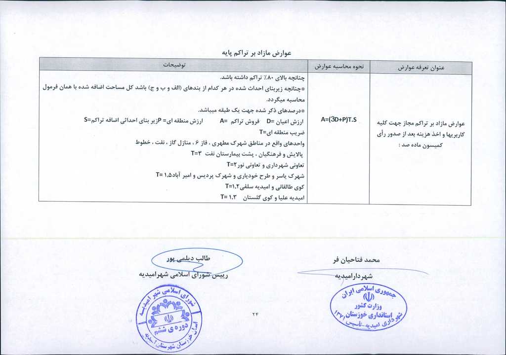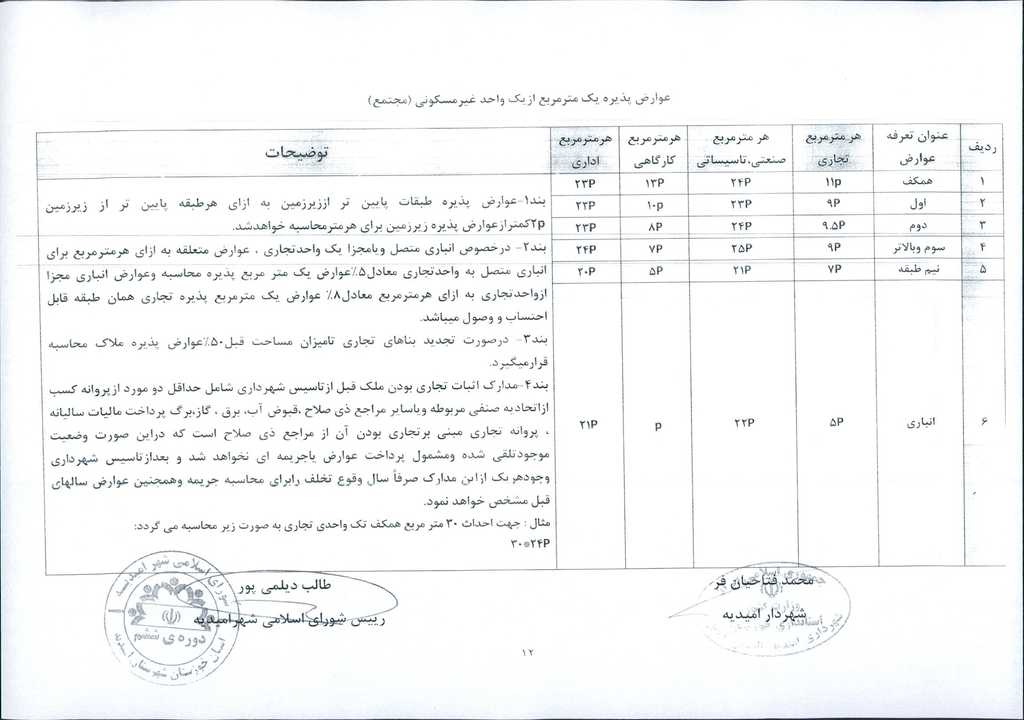 مصوبه شماره ۱ جلسه شماره ۱۲ شورای اسلامی شهر امیدیه