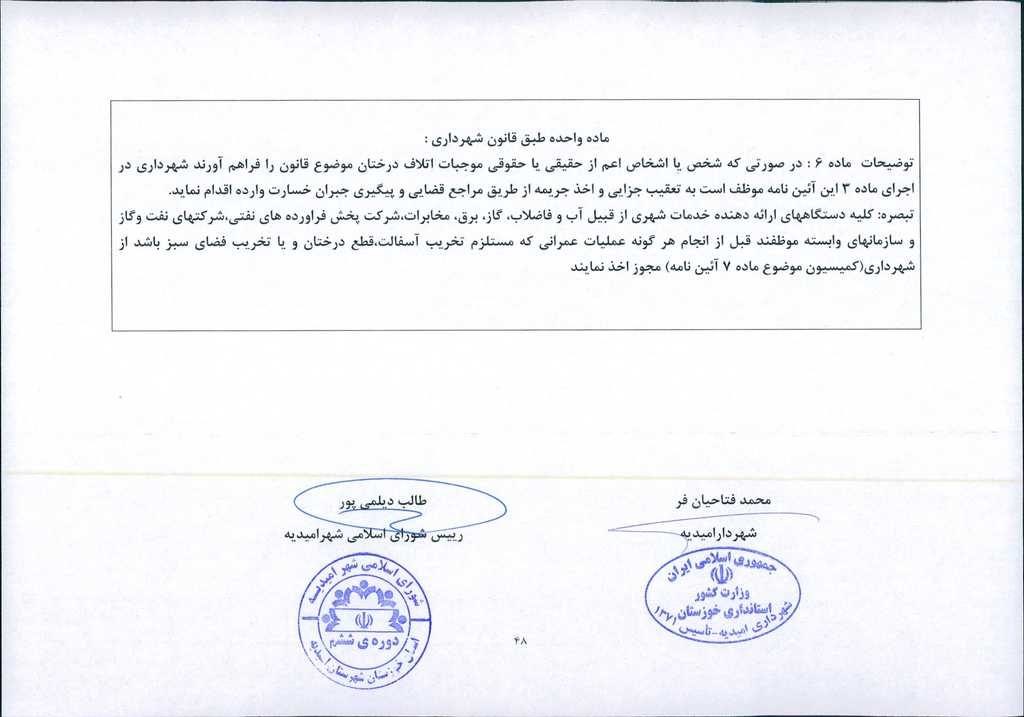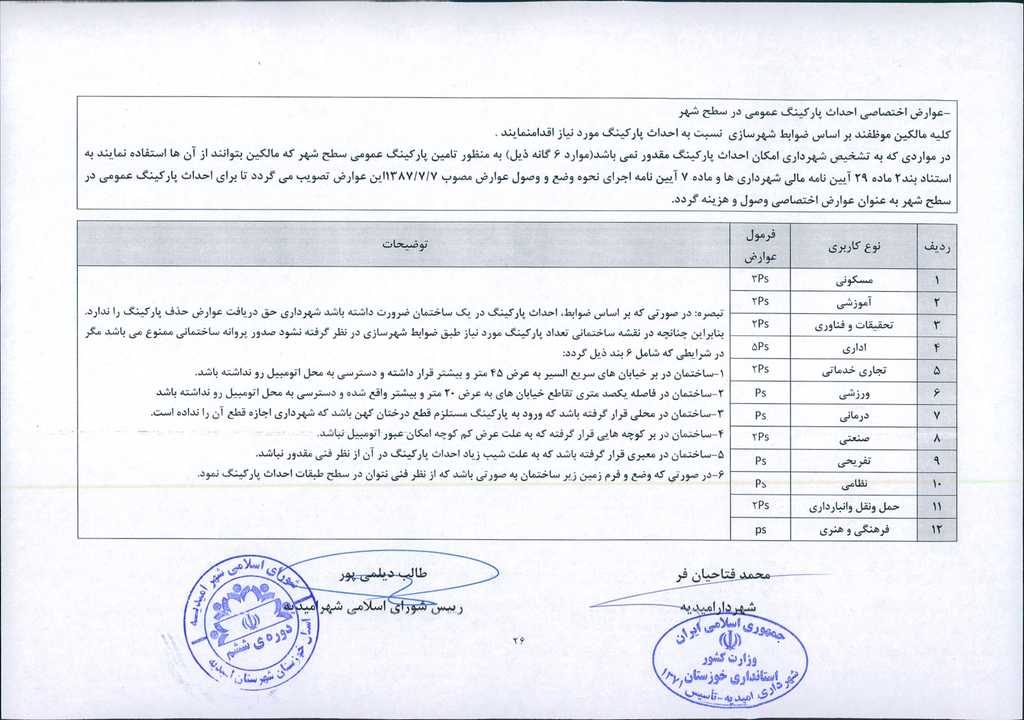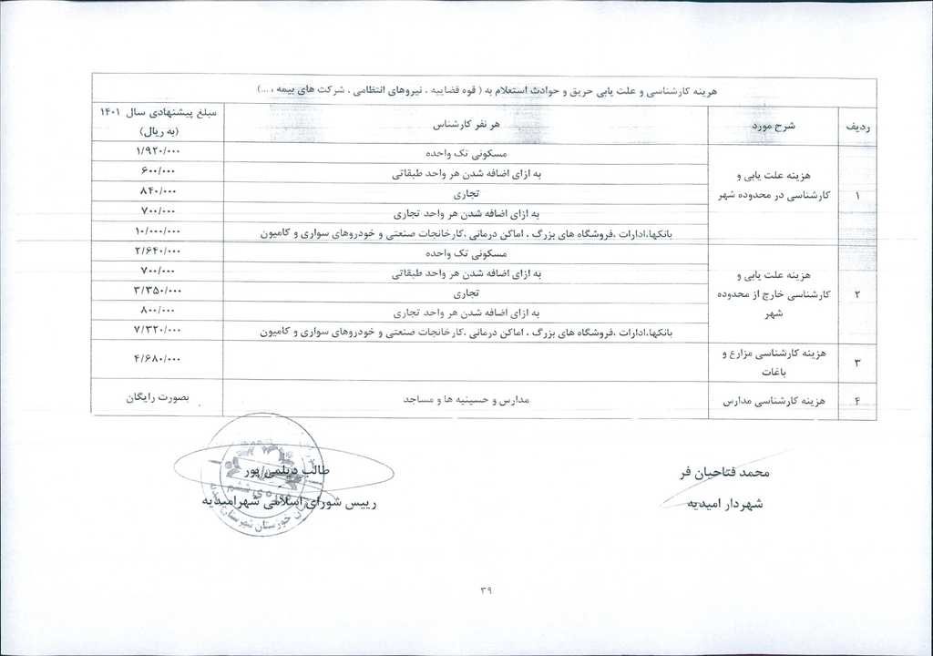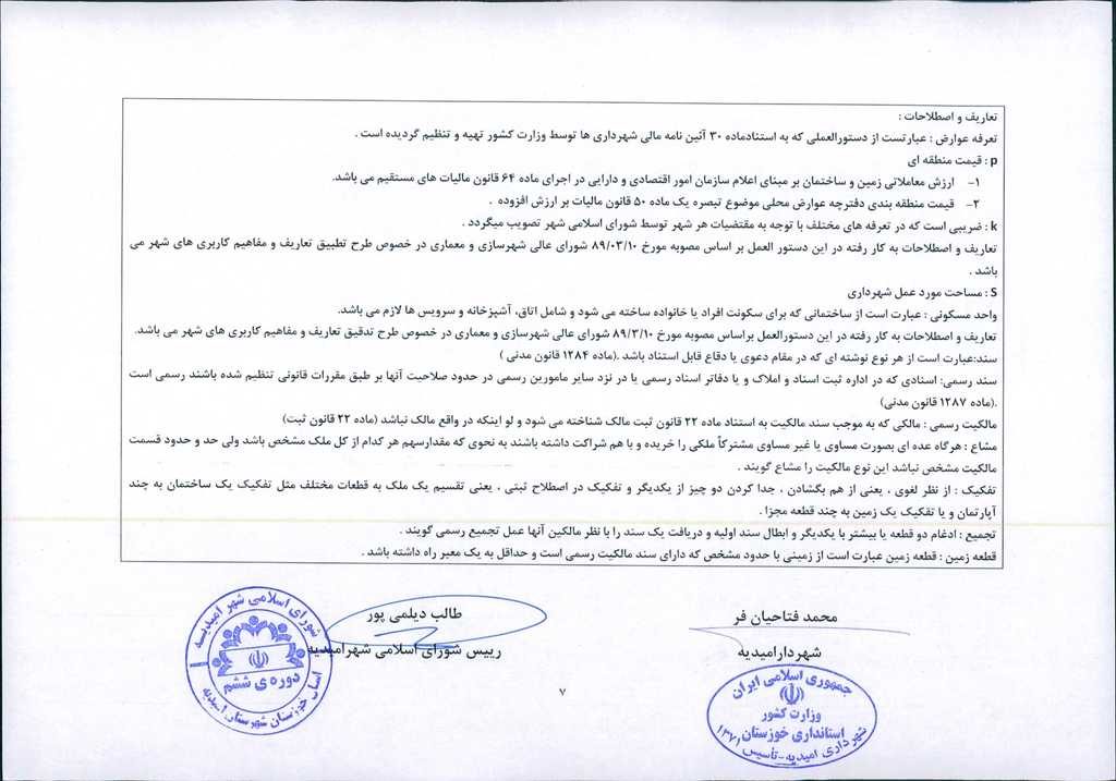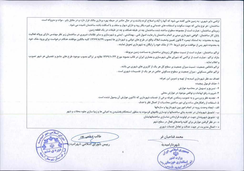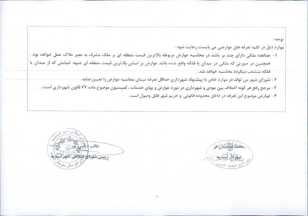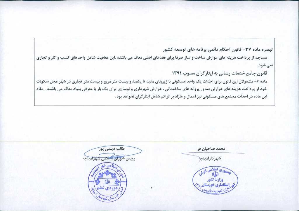 مصوبه شماره ۱ جلسه شماره ۱۲ شورای اسلامی شهر امیدیه