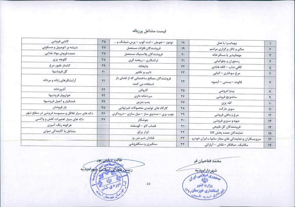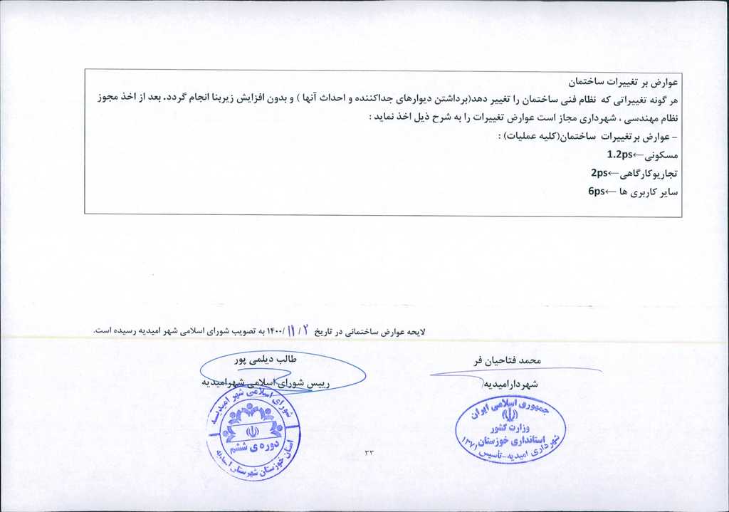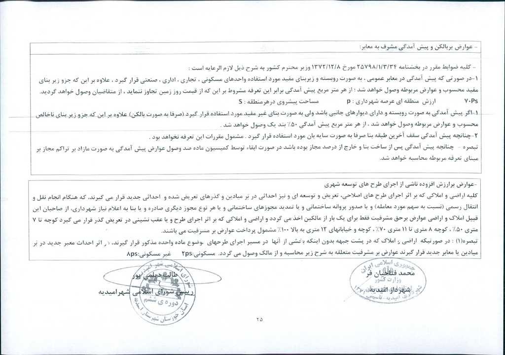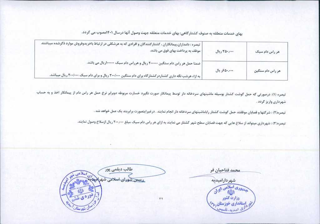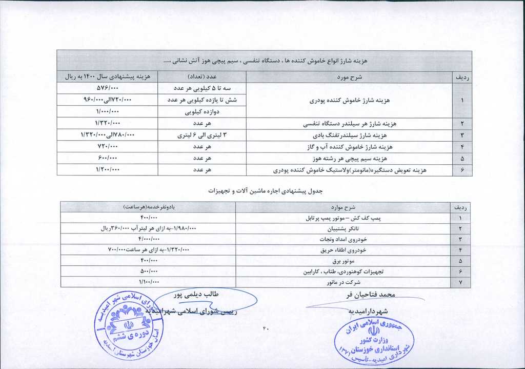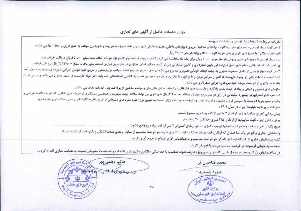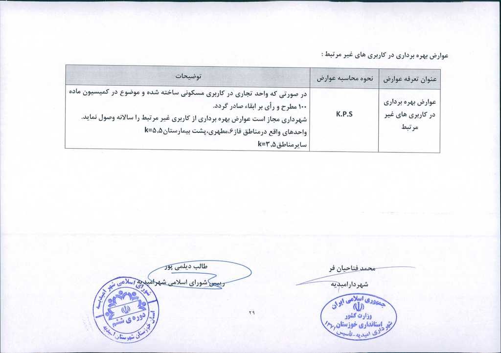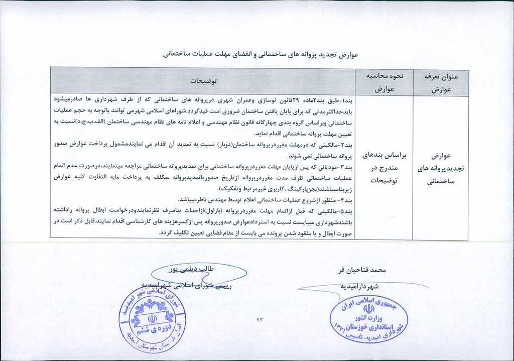 مصوبه شماره ۱ جلسه شماره ۱۲ شورای اسلامی شهر امیدیه