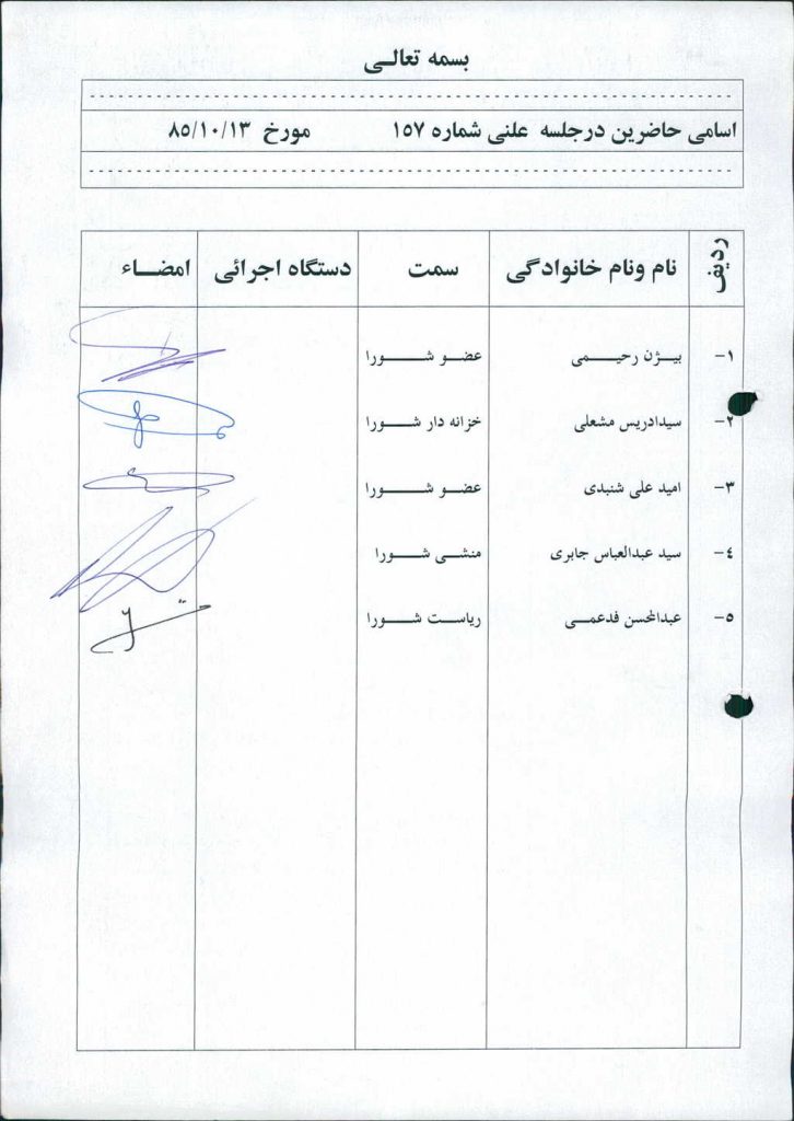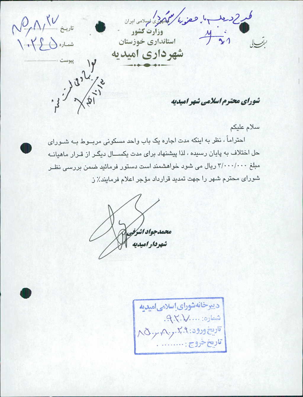 بسم الله الرحمن الرحیم مصوبه شماره ۱ جلسه شماره ۱۵۷ شورای اسلامی شهر امیدیه