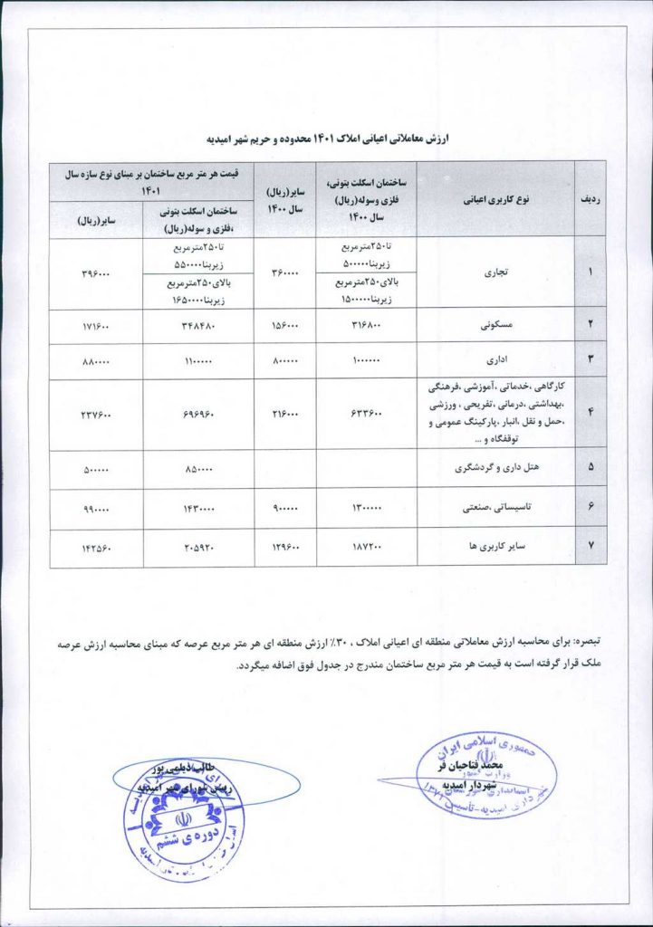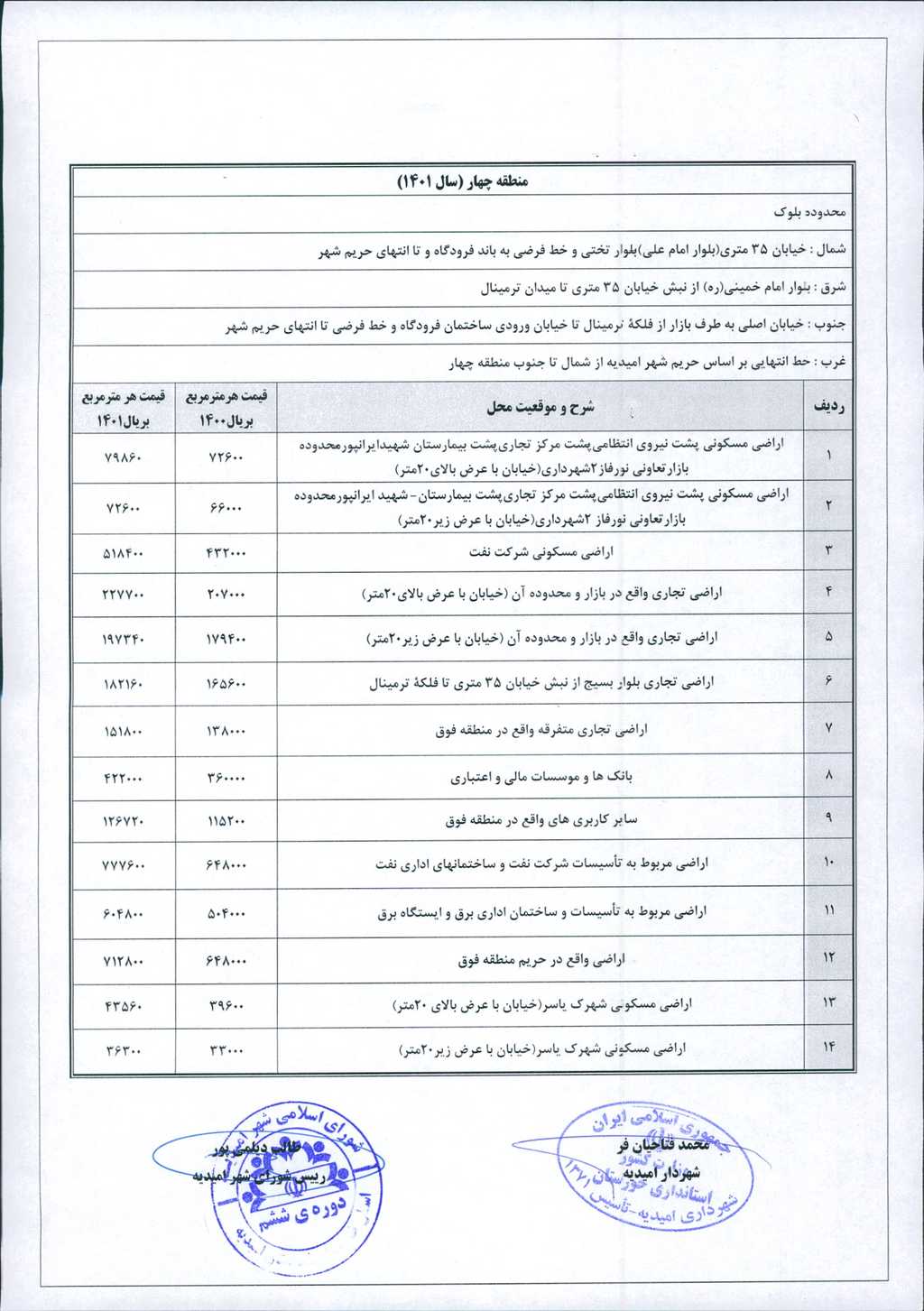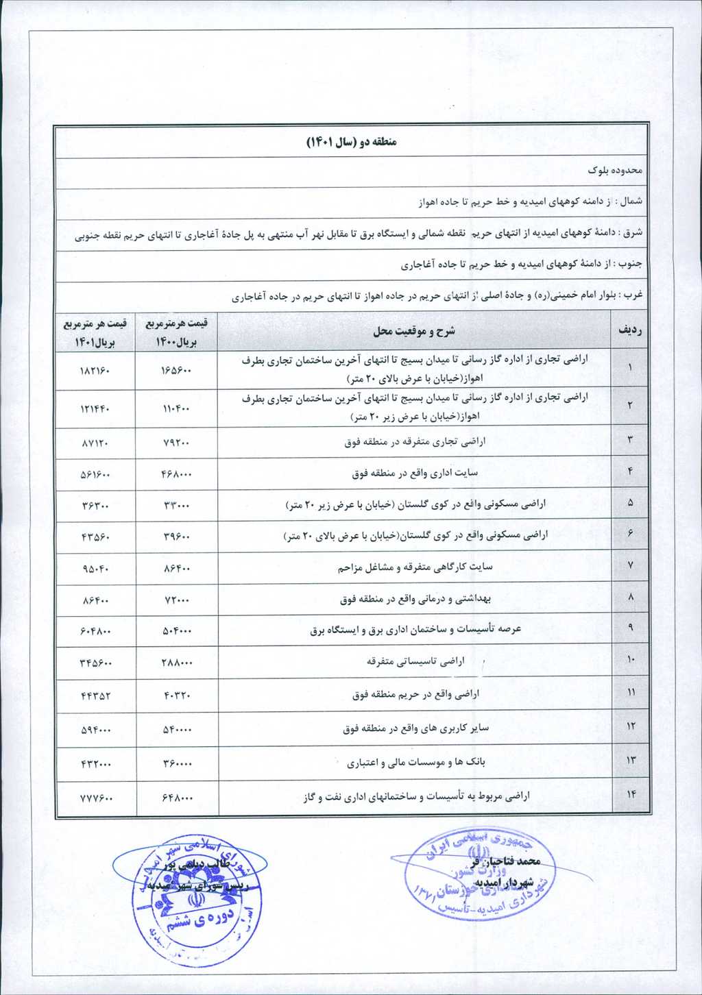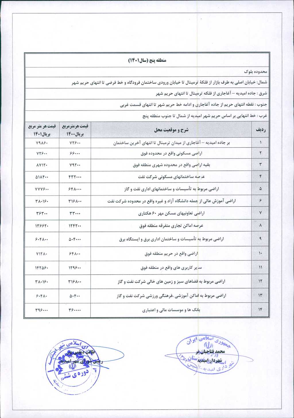 نامه شماره فوق شهرداری در خصوص یک جلد دفترچه ارزش منطقه ای عرصه و ارزش معاملاتی اعیانی محدوده و حریم شهر امیدیه مربوط به سال ۱۴۰۱ در جلسه مطرح و پس از بحث و بررسی با مجموع آراء ذیل مصوب گردید.