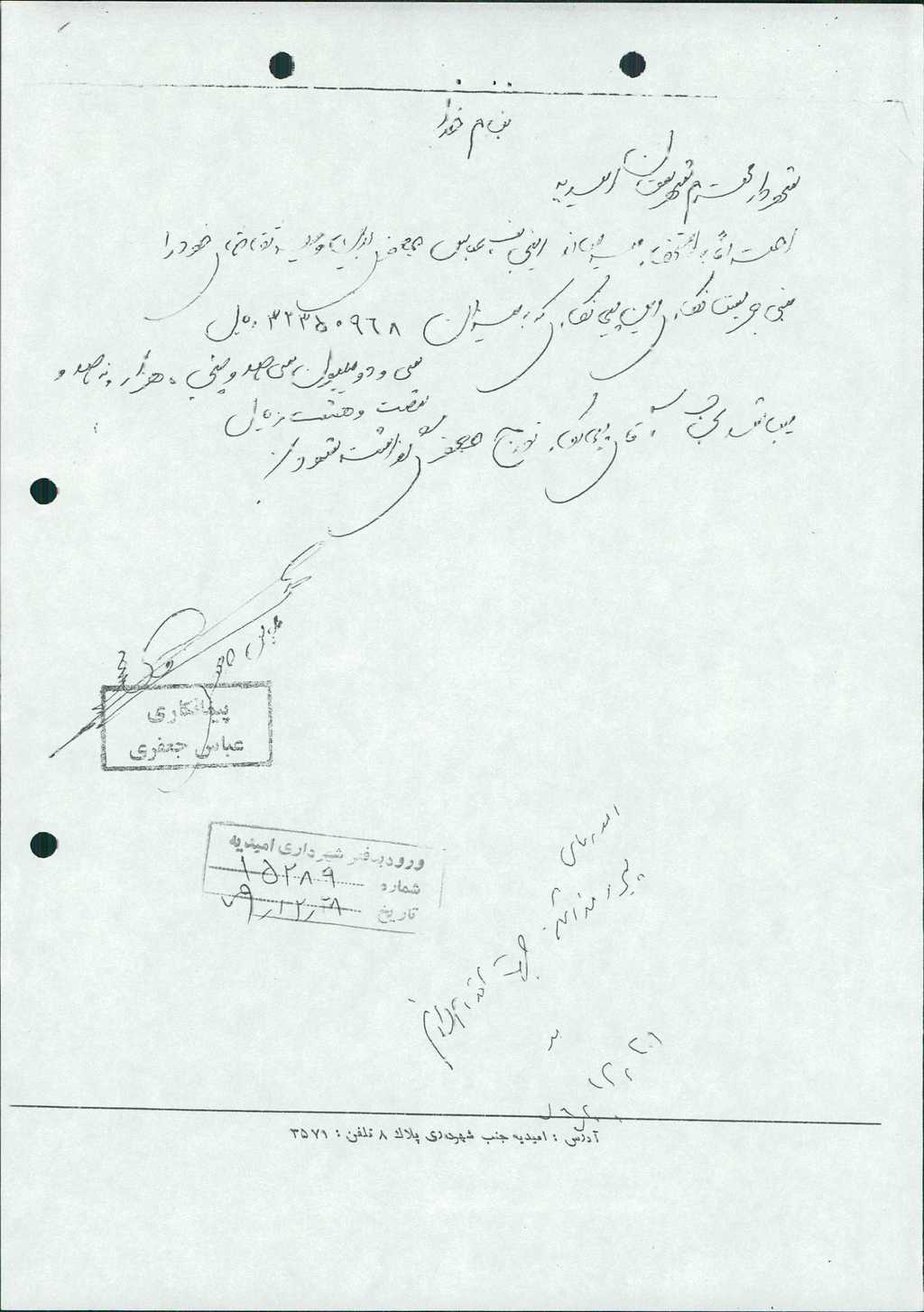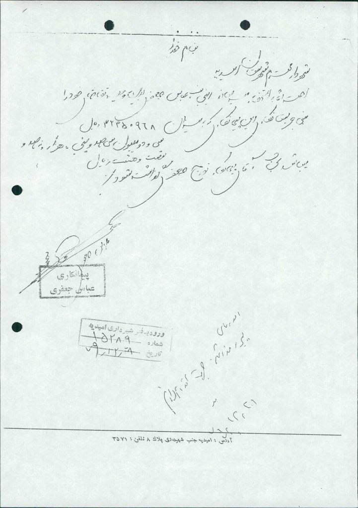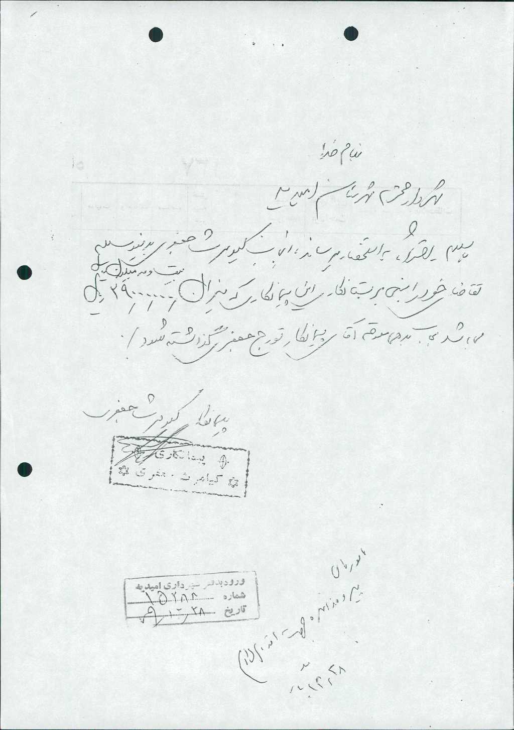۱-نامه شماره ۲۸۵ مورخه ۱۸/ ۱/ ۸۰ شهرداري در خصوص وصول مبلغ -/ ۱۴۰/ ۴۵۰/ ۷۹ ريال كه پيمانكار آقاي تورج جعفري بصورت علي الحساب از سال ۷۱ لغايت ۷۷ دريافت نموده بررسي و با توجه به اعلام رضايت برادران نامبرده مبني بر پاياپاي نمودن مبلغ فوق از طلب مشاراليه با ۶ رأي موافق بتصويب رسيد كه اينكار صورت پذيرد.