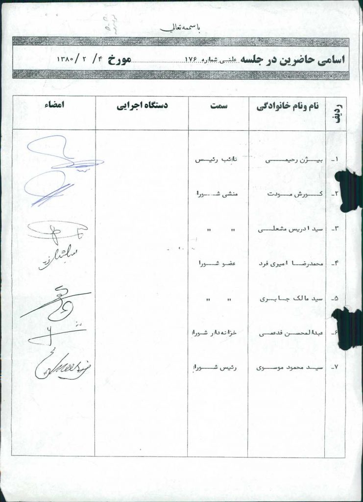 مصوبه شماره ۱ جلسه شماره ۱۷۶ شورای اسلامی شهر امیدیه