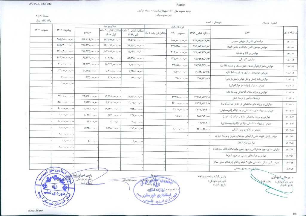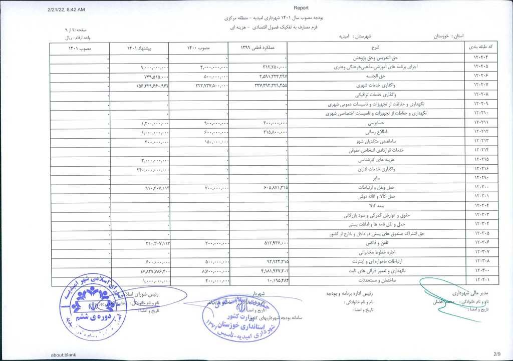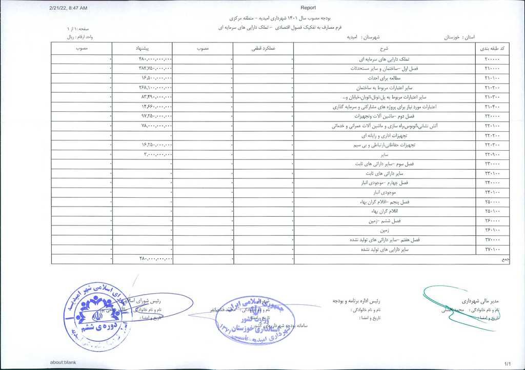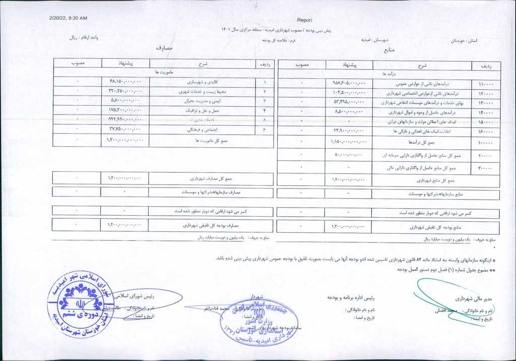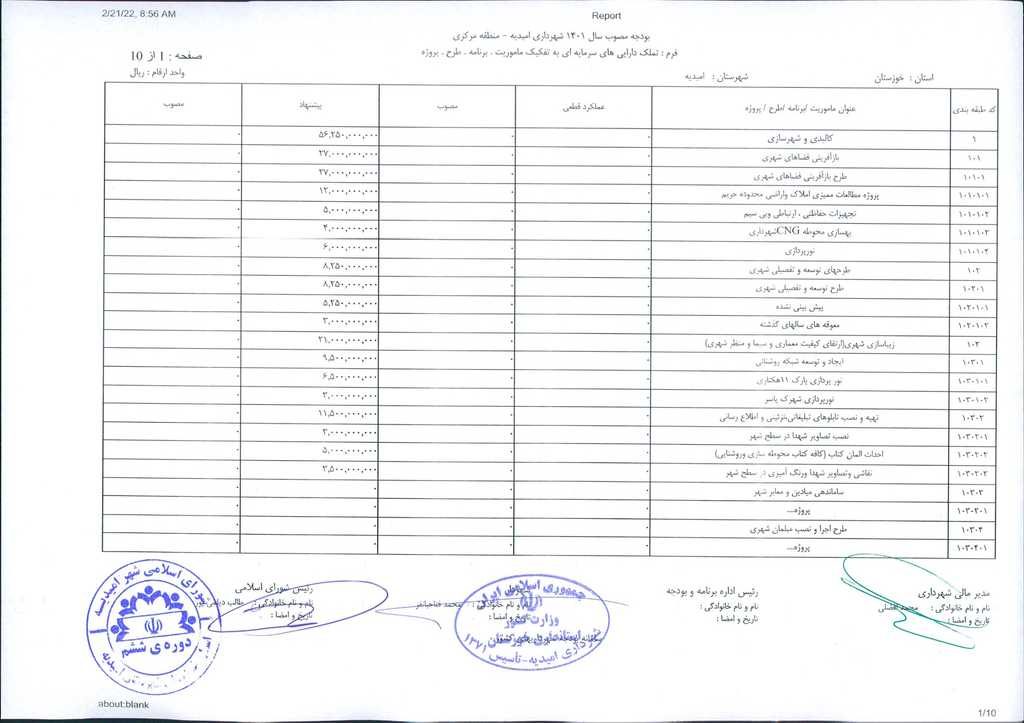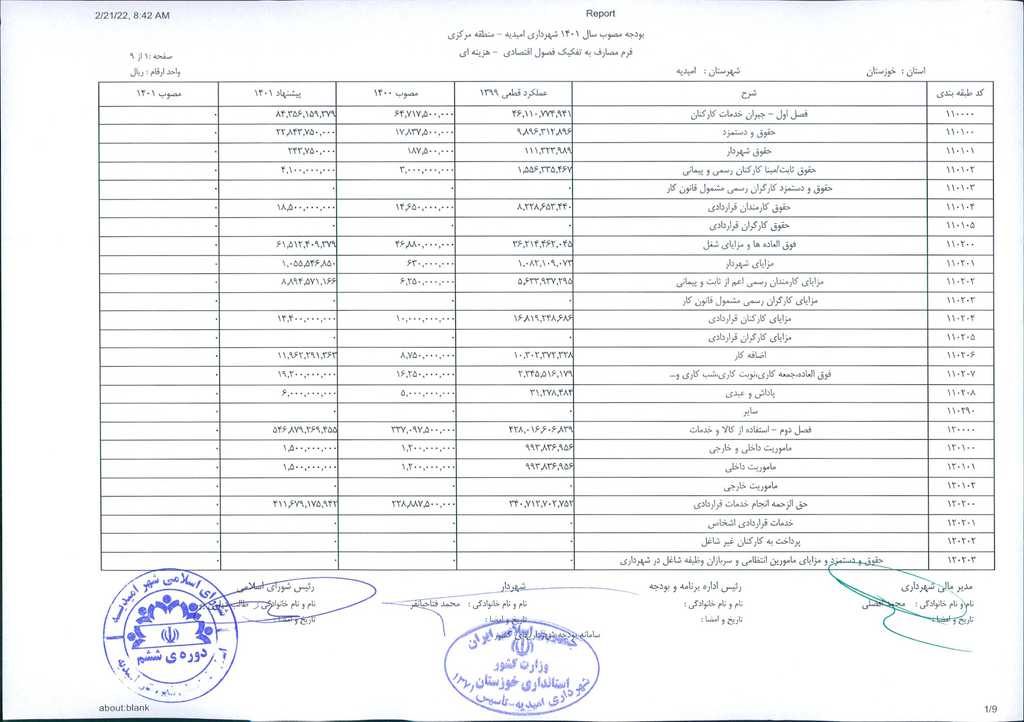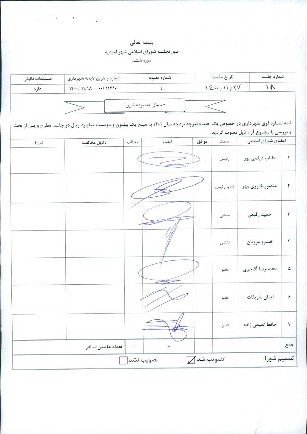 مصوبه شماره ۱ جلسه شماره ۱۸ مورخ ۱۴۰۰/۱۱/۲۷ شورای اسلامی شهر امیدیه