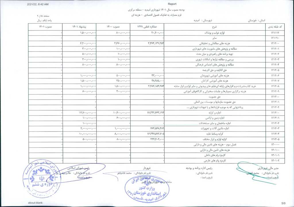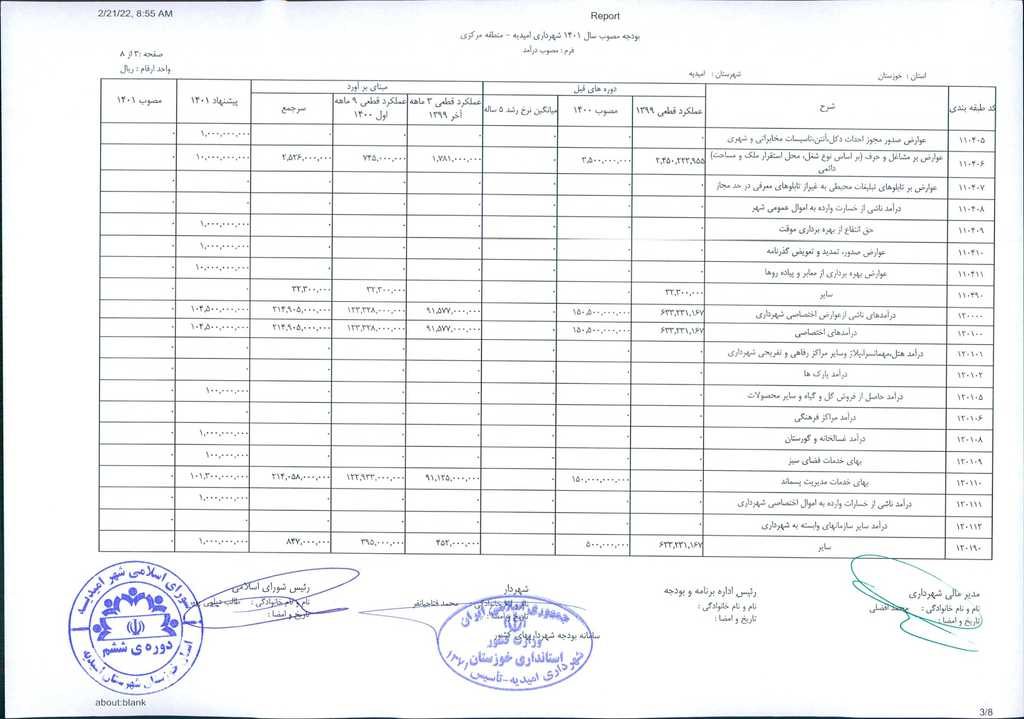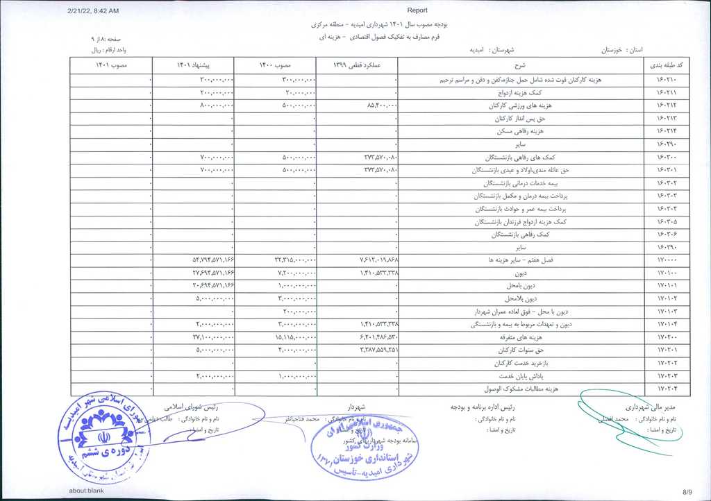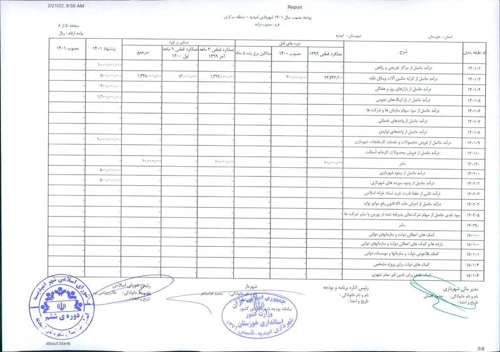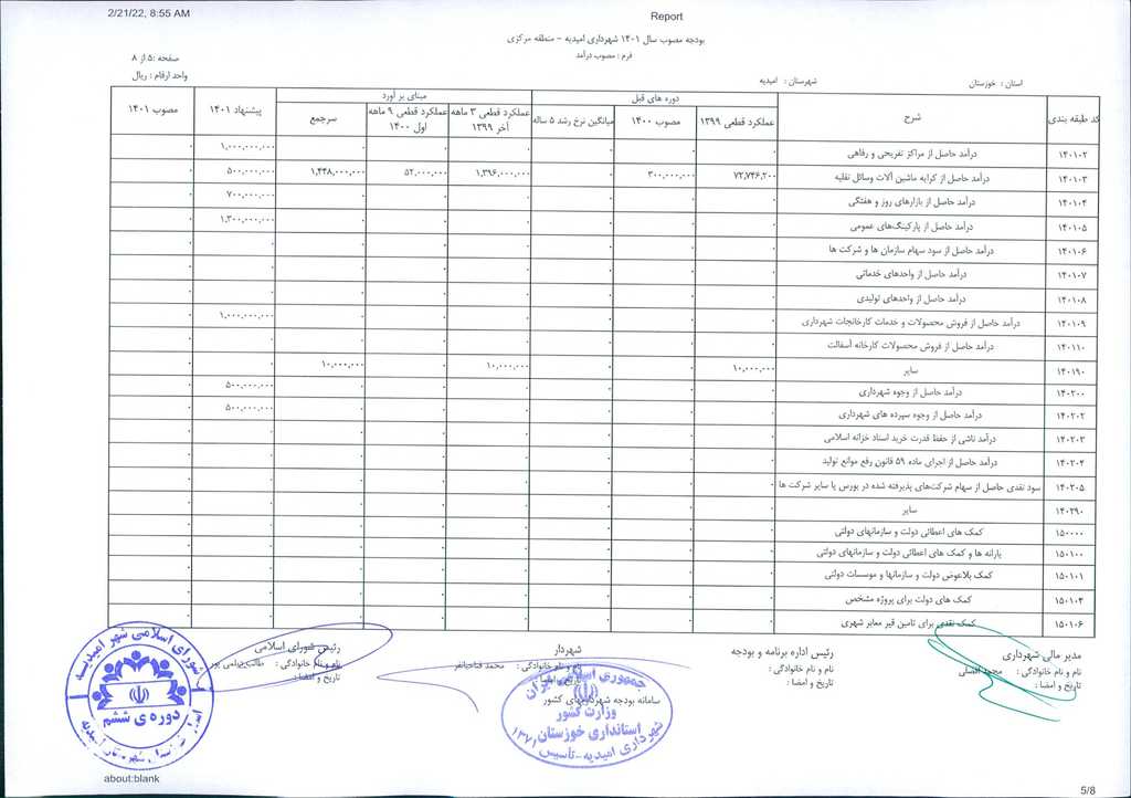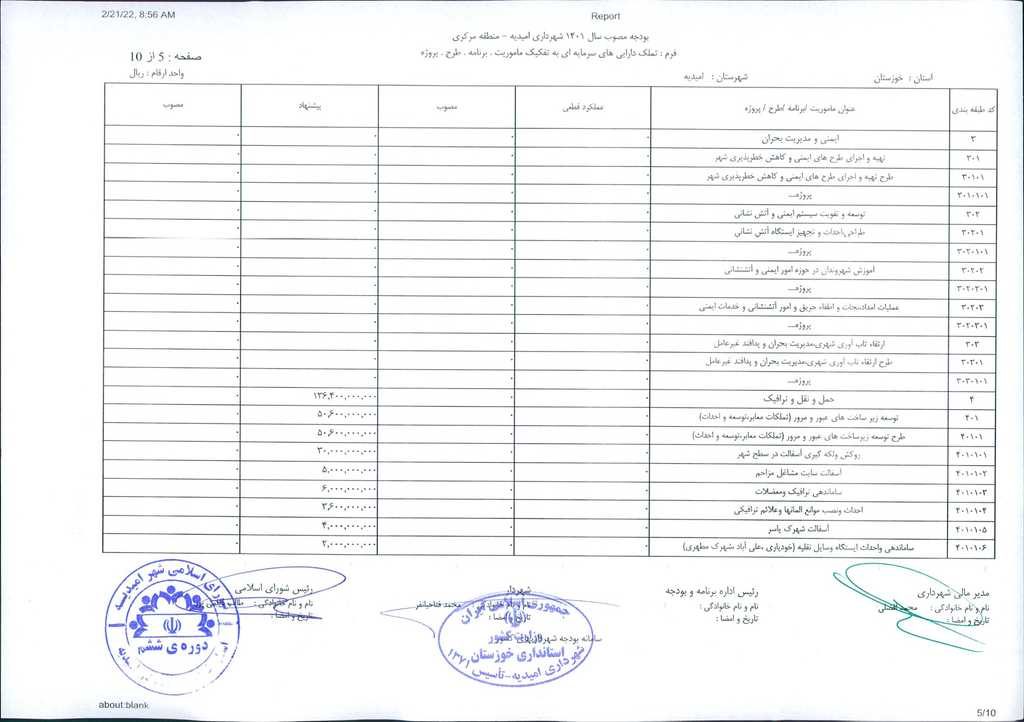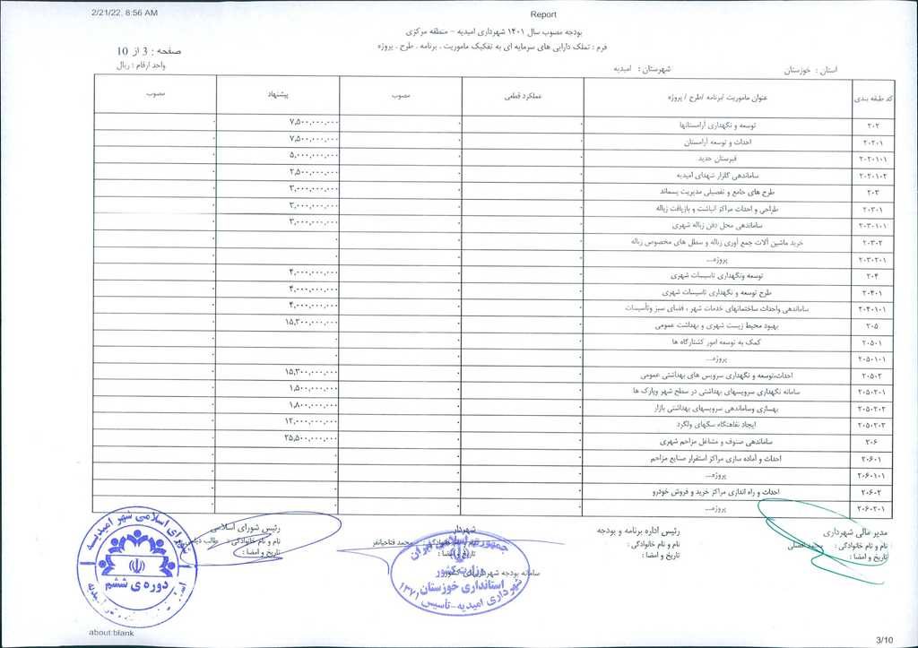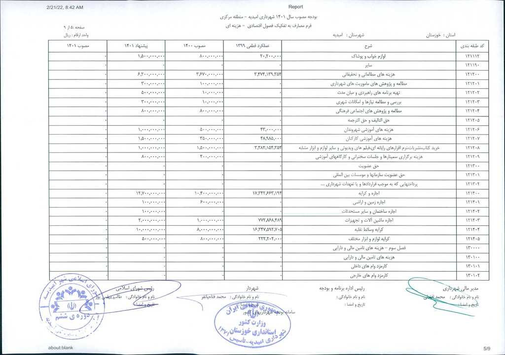 مصوبه شماره ۱ جلسه شماره ۱۸ مورخ ۱۴۰۰/۱۱/۲۷ شورای اسلامی شهر امیدیه
