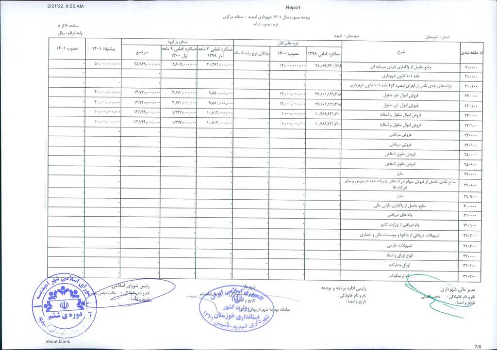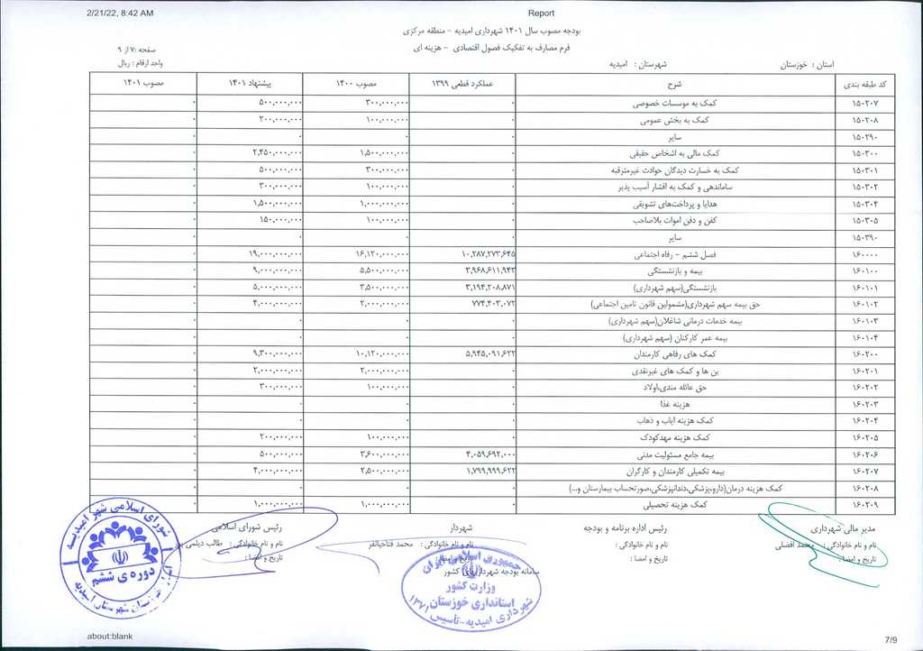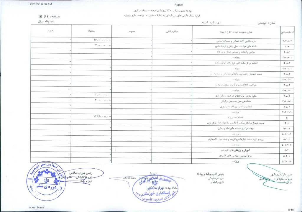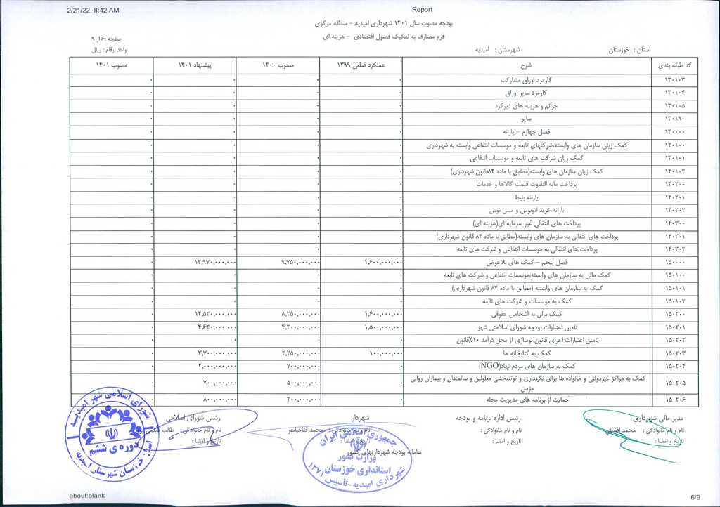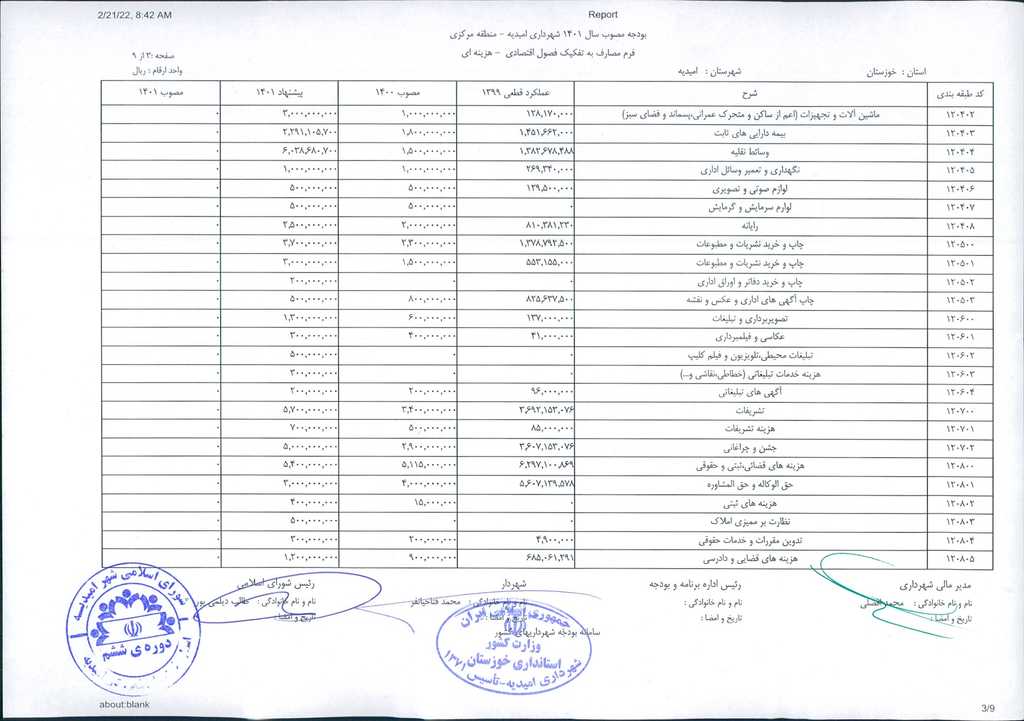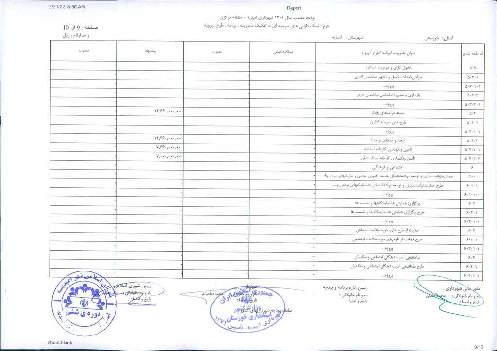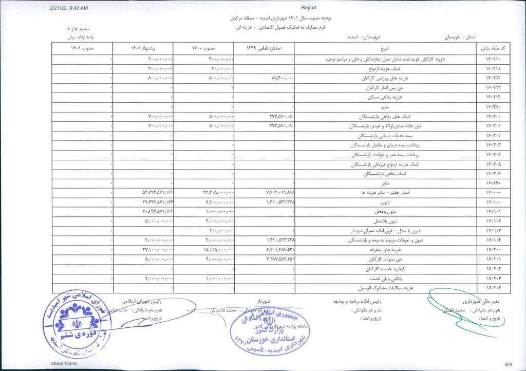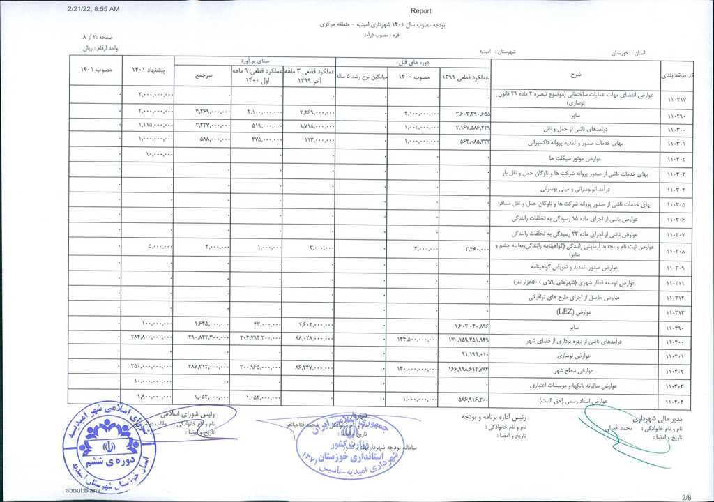 مصوبه شماره ۱ جلسه شماره ۱۸ مورخ ۱۴۰۰/۱۱/۲۷ شورای اسلامی شهر امیدیه