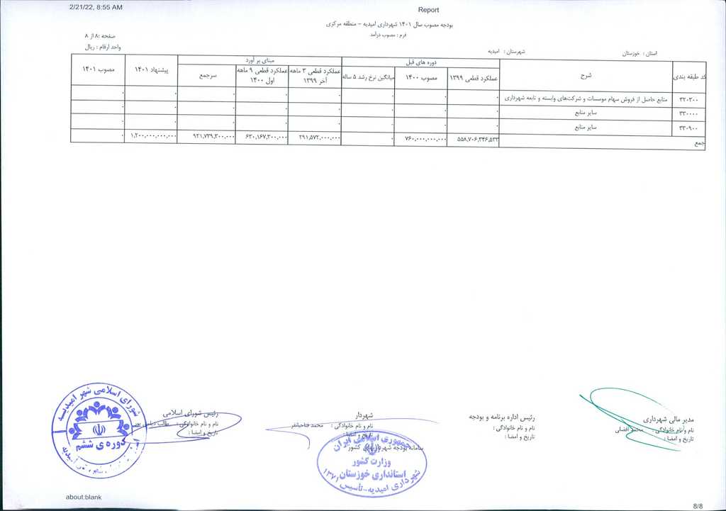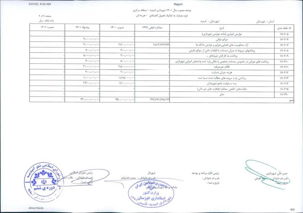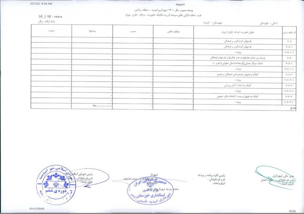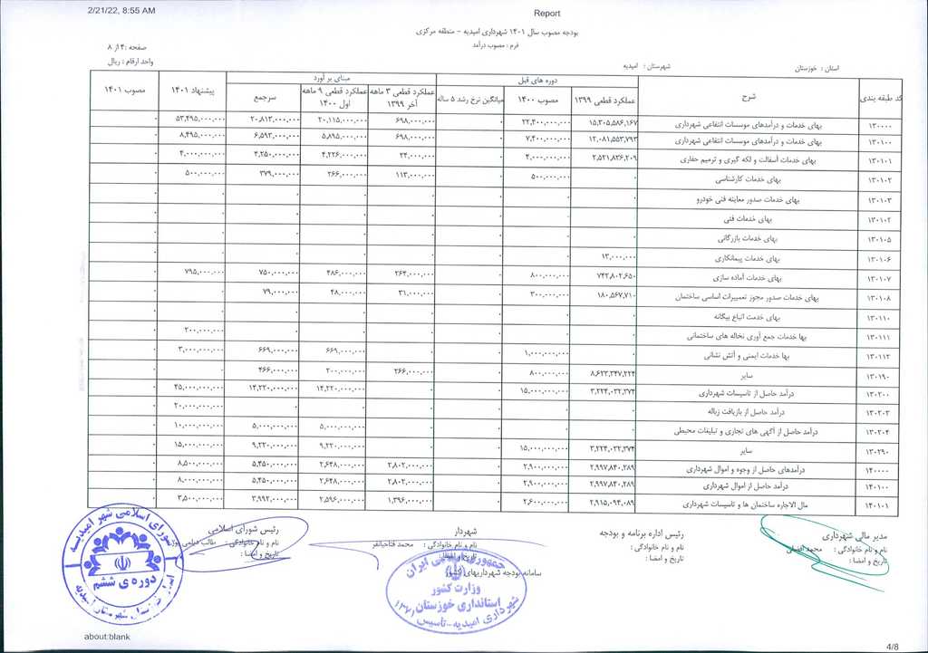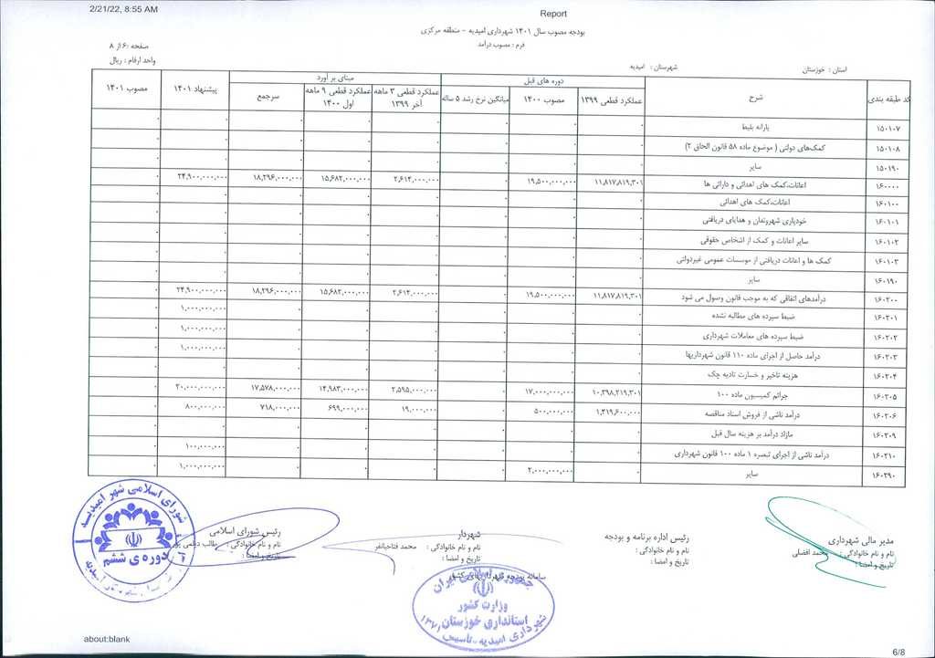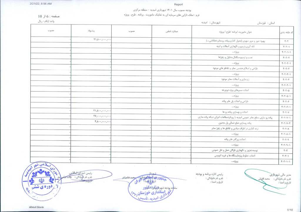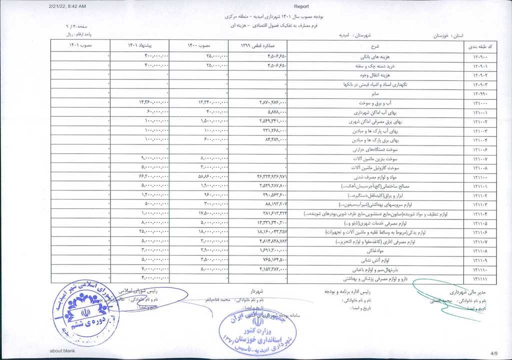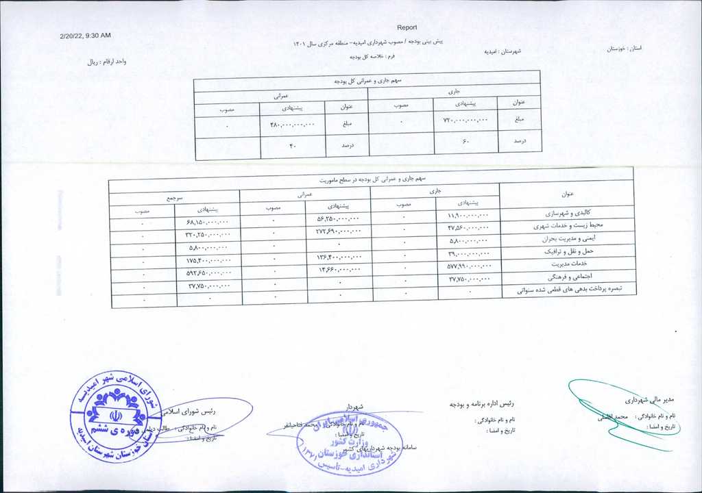 مصوبه شماره ۱ جلسه شماره ۱۸ مورخ ۱۴۰۰/۱۱/۲۷ شورای اسلامی شهر امیدیه