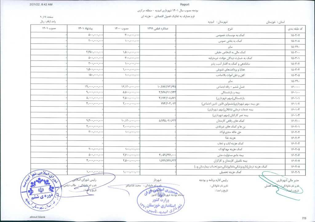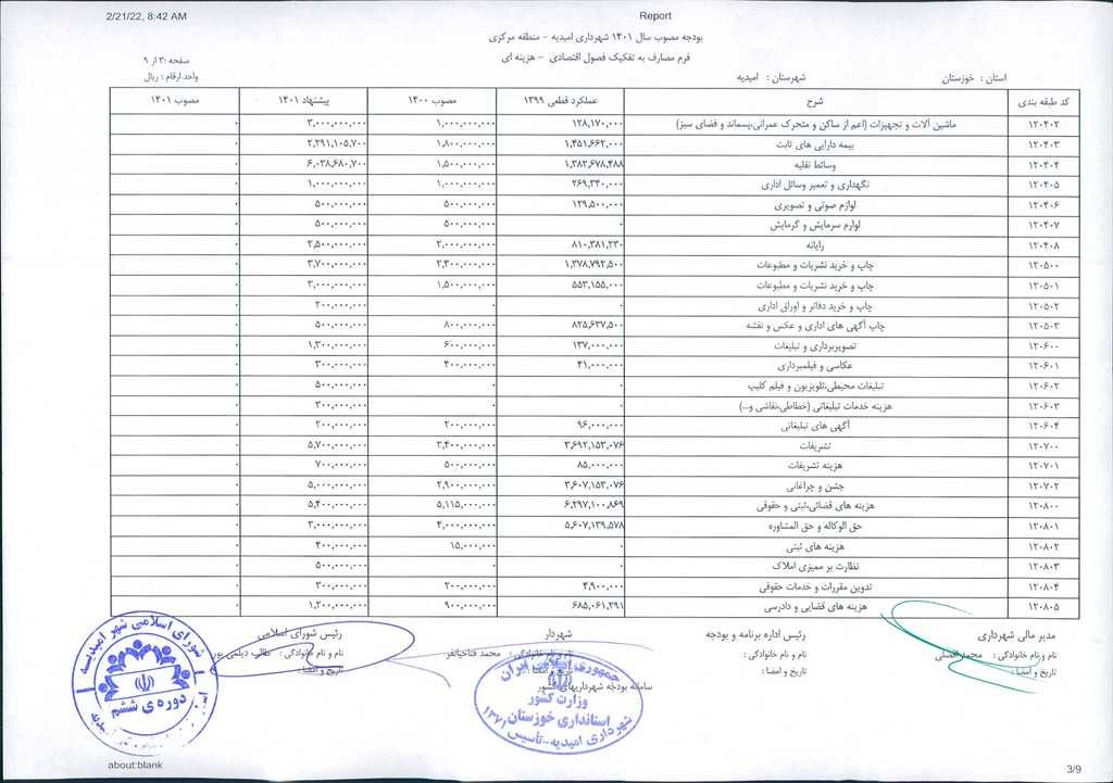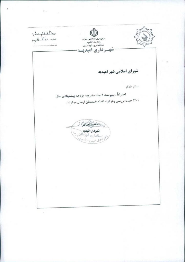 نامه شماره فوق شهرداری در خصوص یک جلد دفترچه بودجه سال ۱۴۰۱ به مبلغ یک بیلیون و دویست میلیارد ریال در جلسه مطرح و پس از بحث و بررسی با مجموع آراء ذیل مصوب گردید.