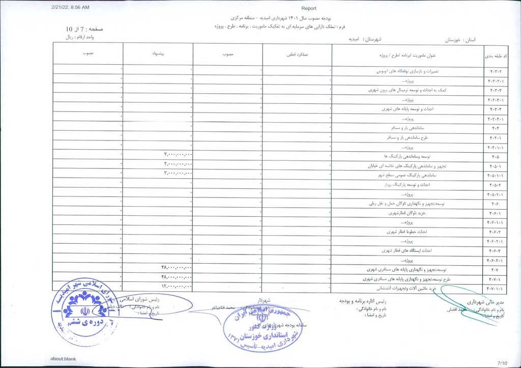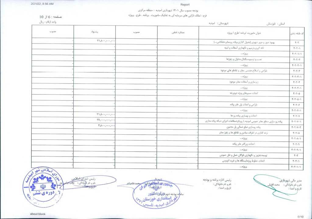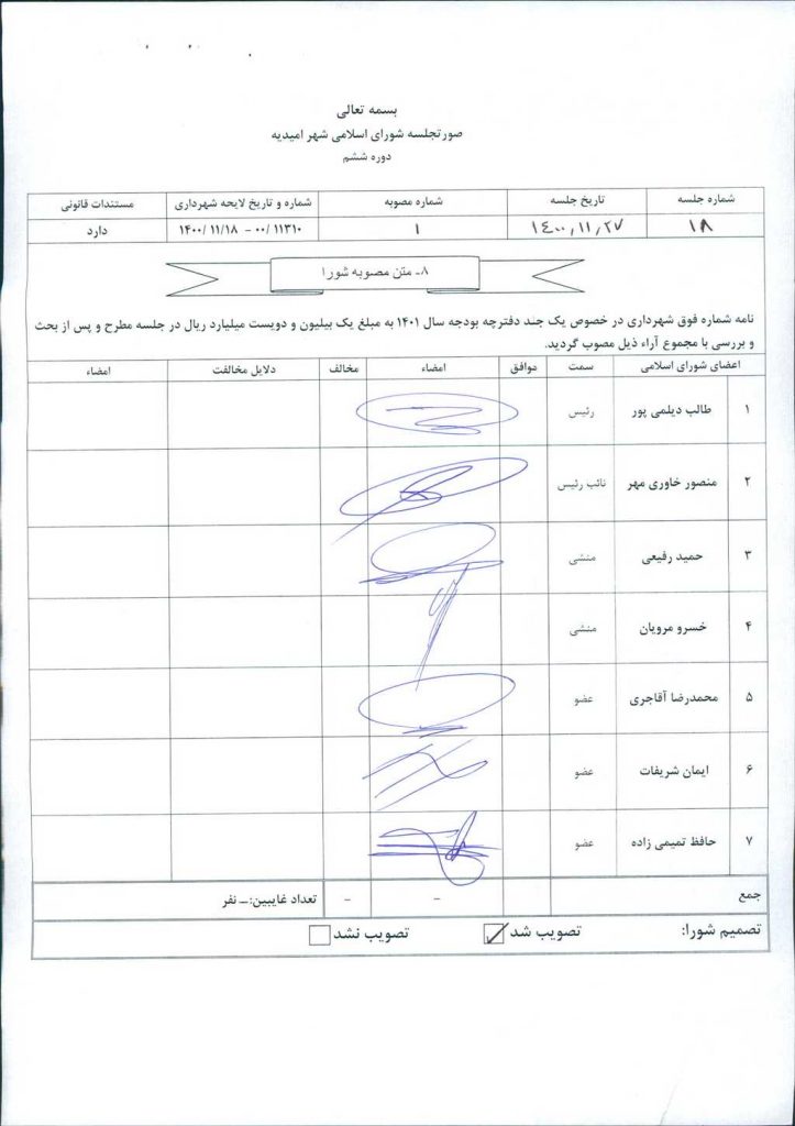 مصوبه شماره ۱ جلسه شماره ۱۸ شورای اسلامی شهر امیدیه