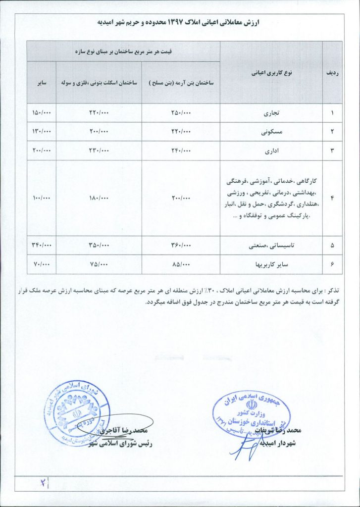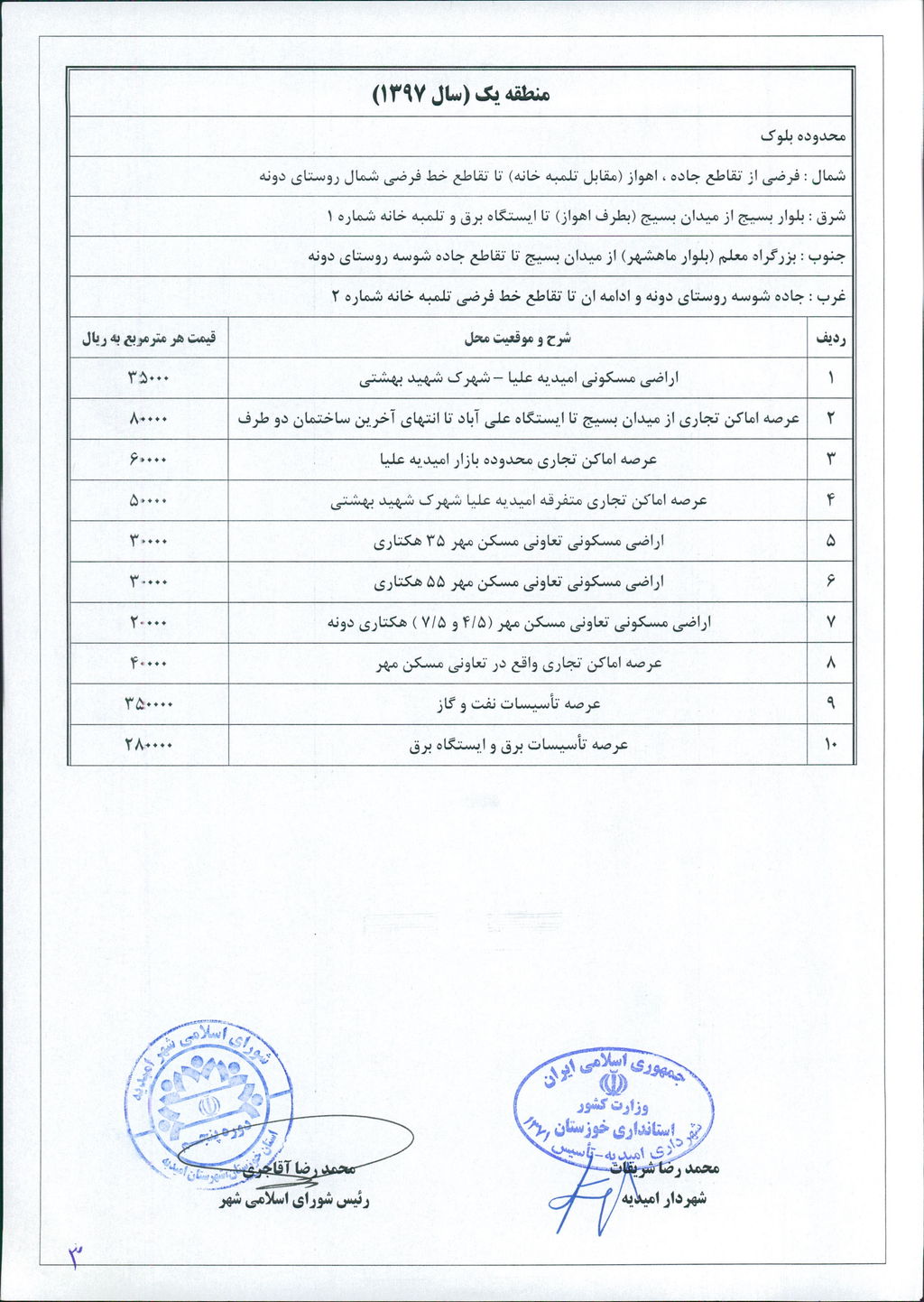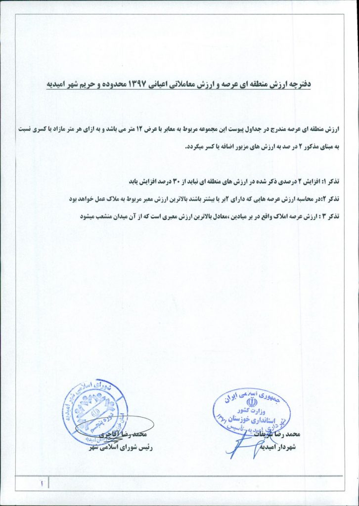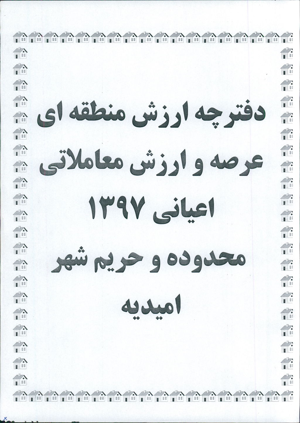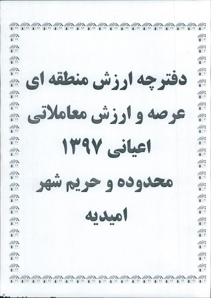 نامه شماره فوق شهرداری در خصوص یک جلد دفترچه ارزش منطقه ای عرصه وارزش معاملاتی اعیانی محدوده وحریم شهر امیدیه مربوط به سال ۱۳۹۷ در جلسه مطرح و پس از بحث و بررسی با مجموع آراء ذیل مصوب گردید%