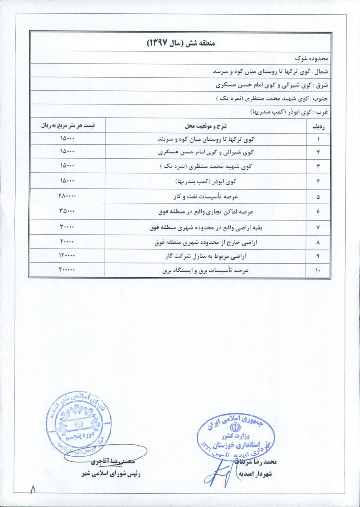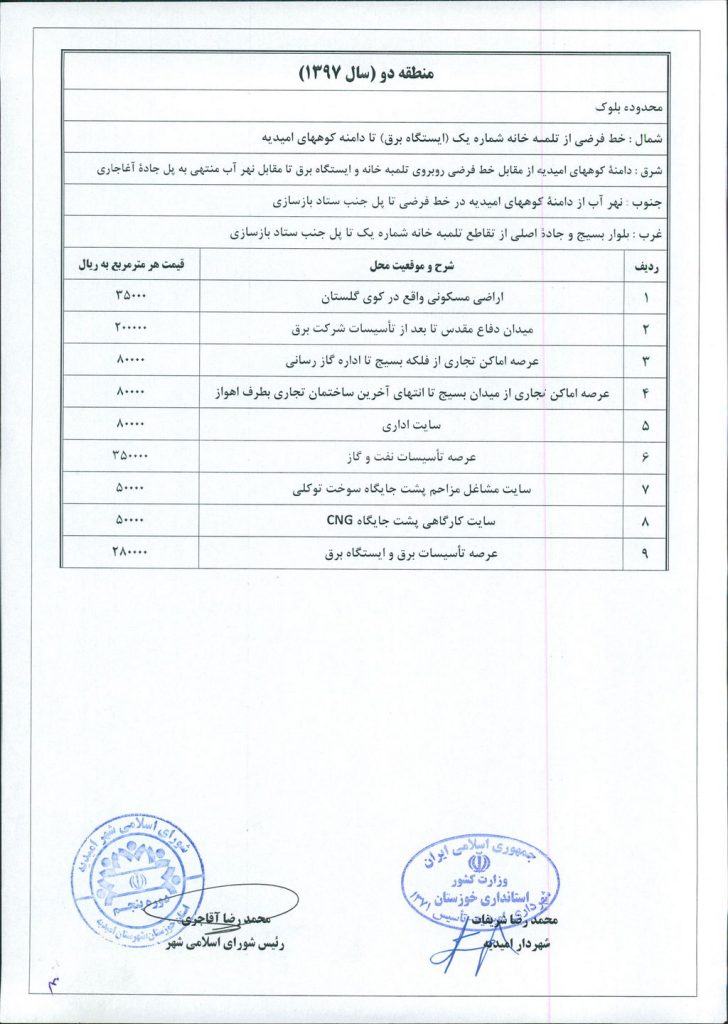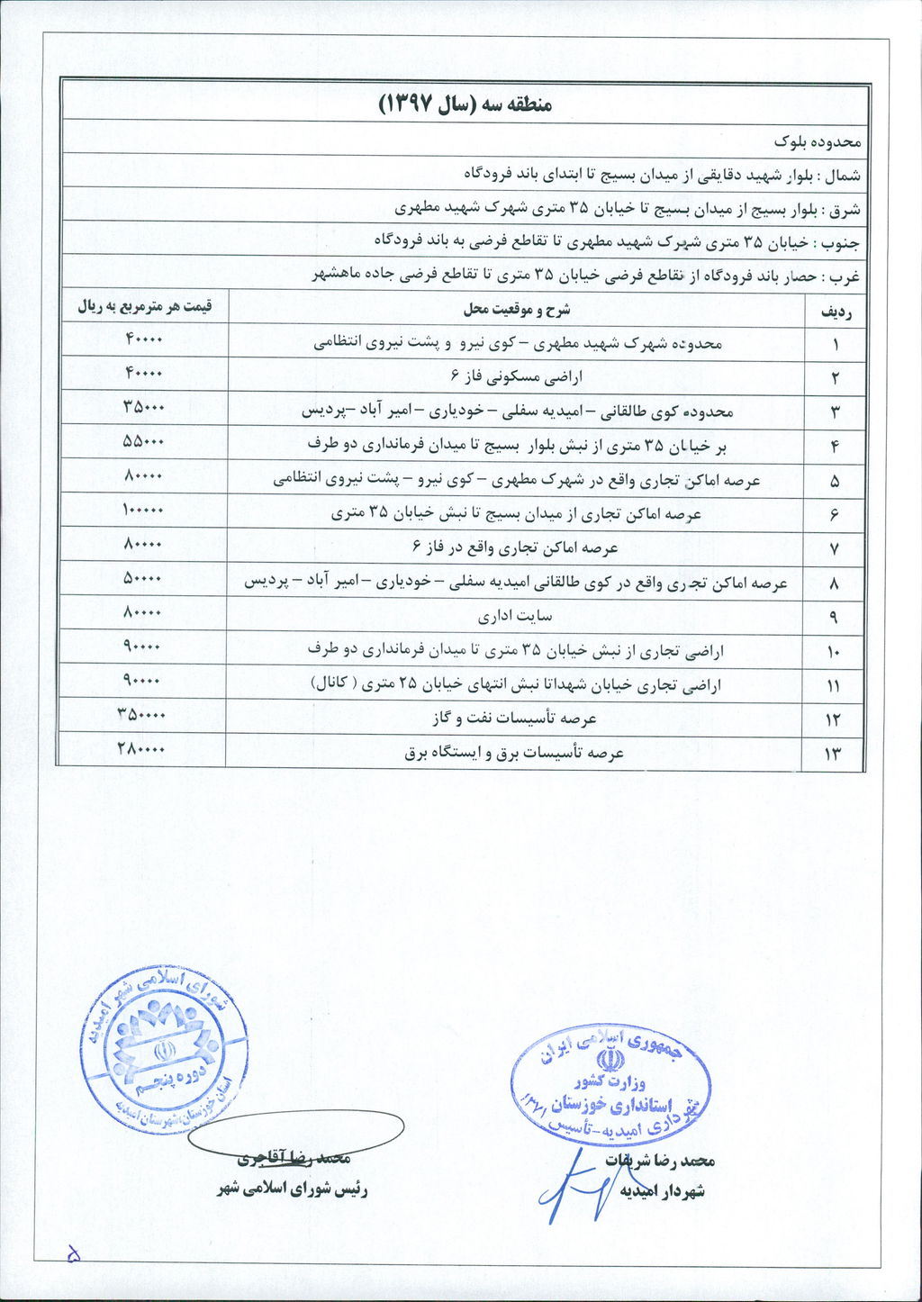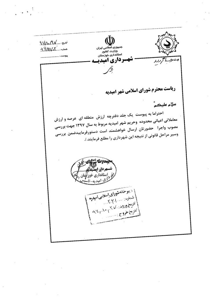 مصوبه شماره ۱ جلسه شماره ۲۰ شورای اسلامی شهر امیدیه
