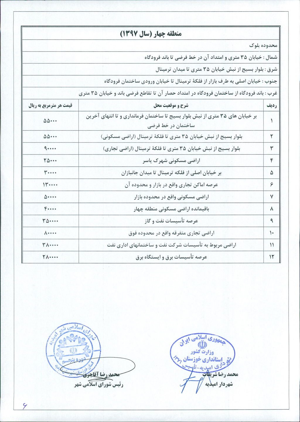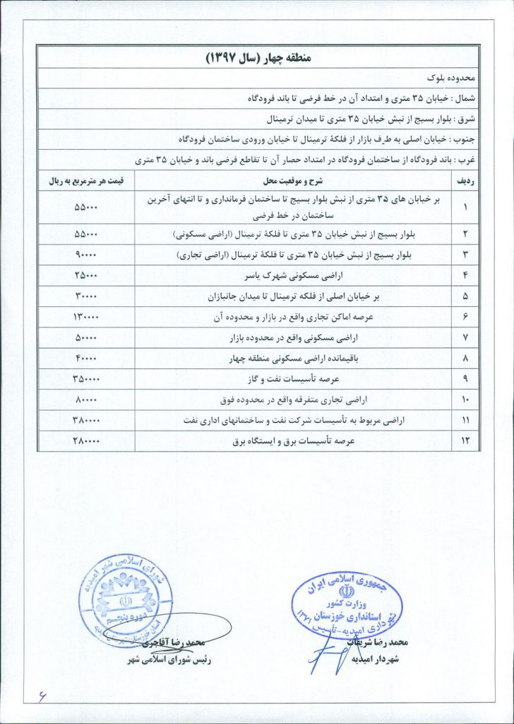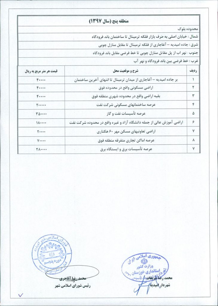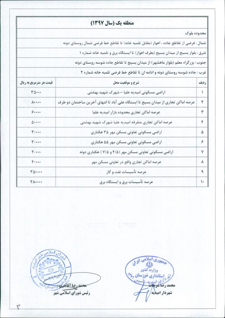 مصوبه شماره ۱ جلسه شماره ۲۰ شورای اسلامی شهر امیدیه