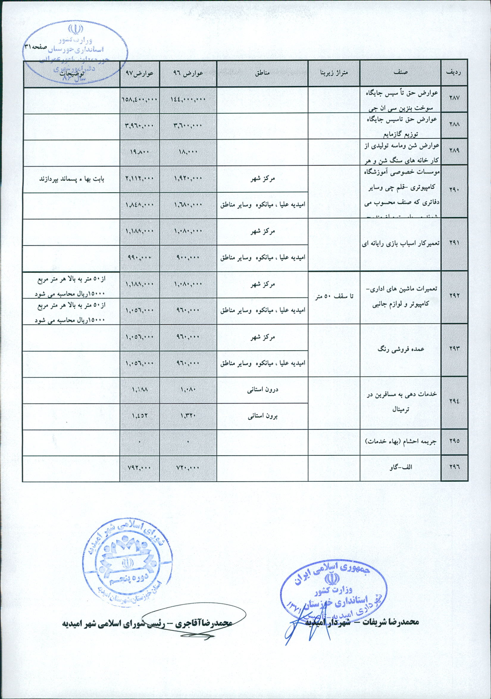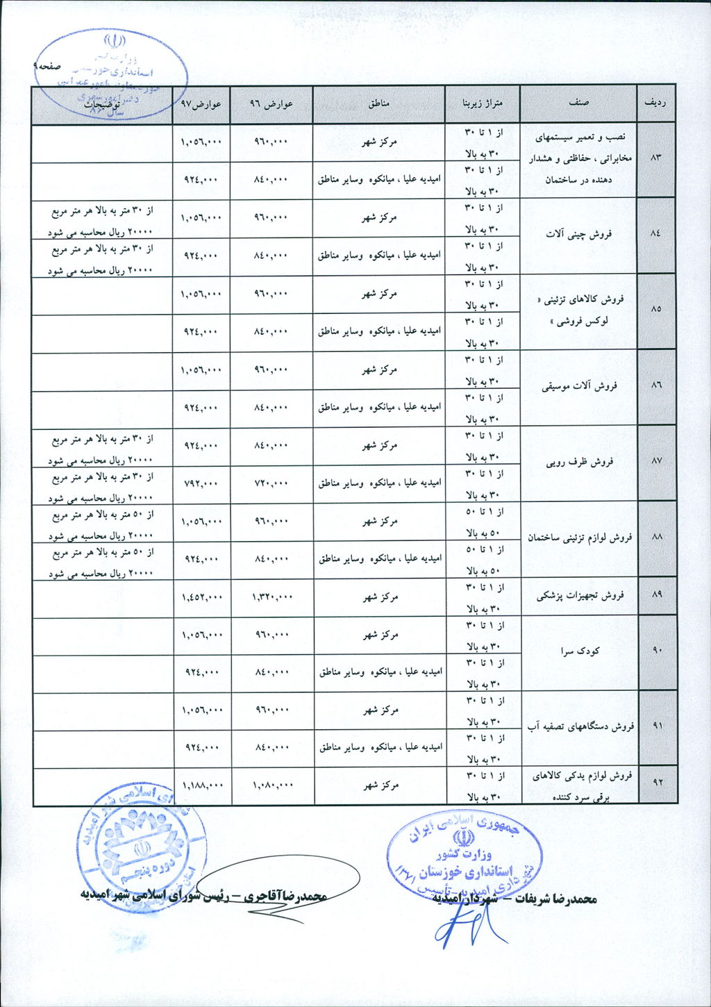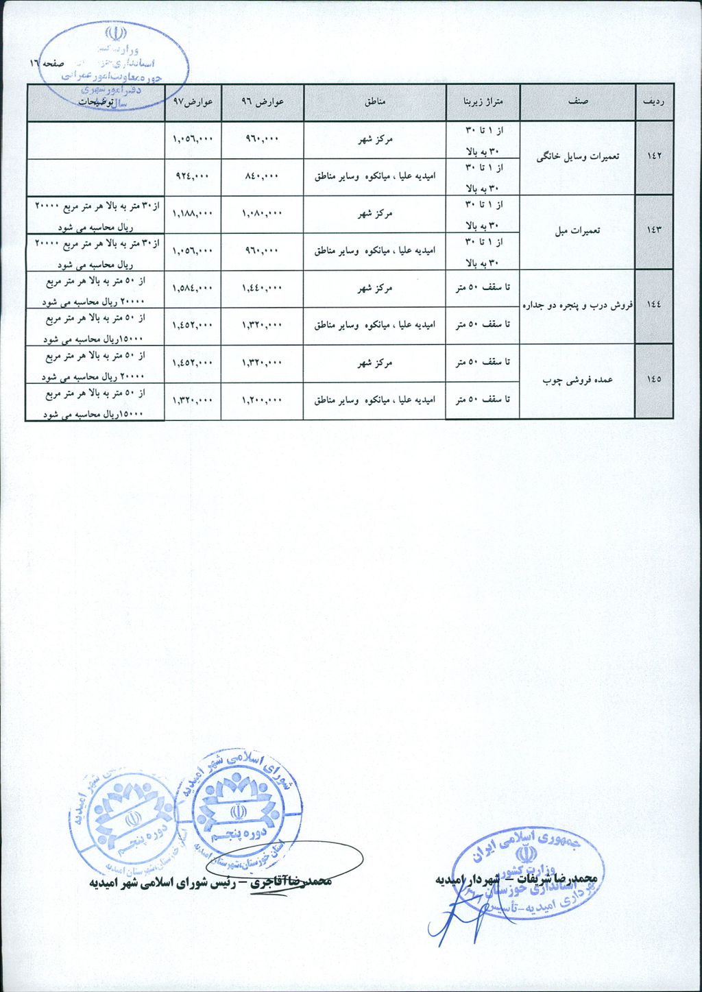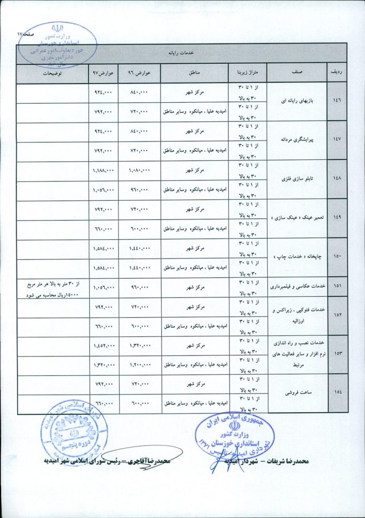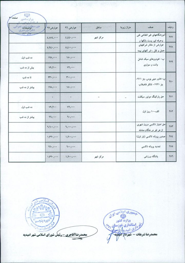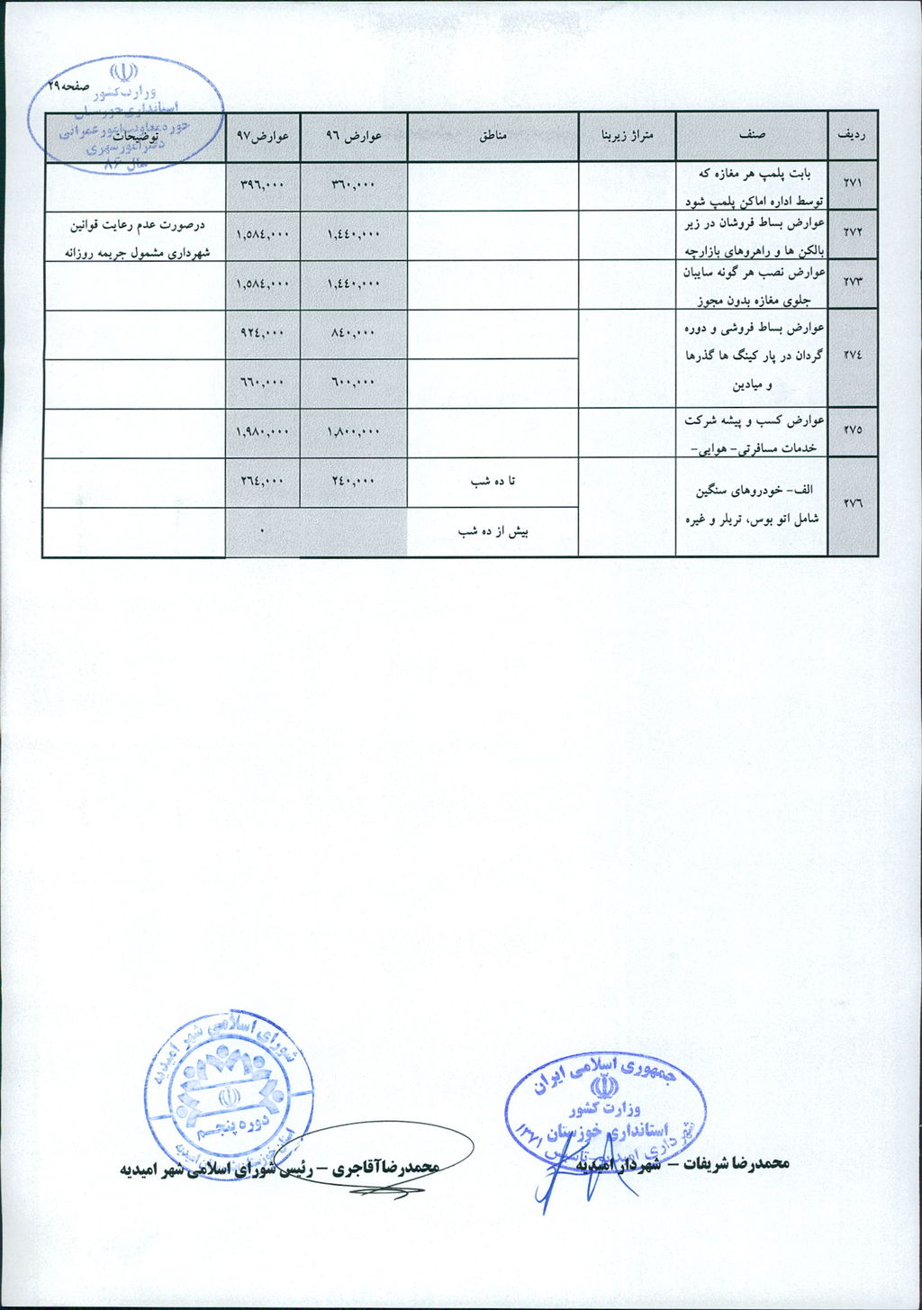 مصوبه شماره ۱ جلسه شماره ۲۱ مورخ ۹۶/۱۱/۲ شورای اسلامی شهر امیدیه