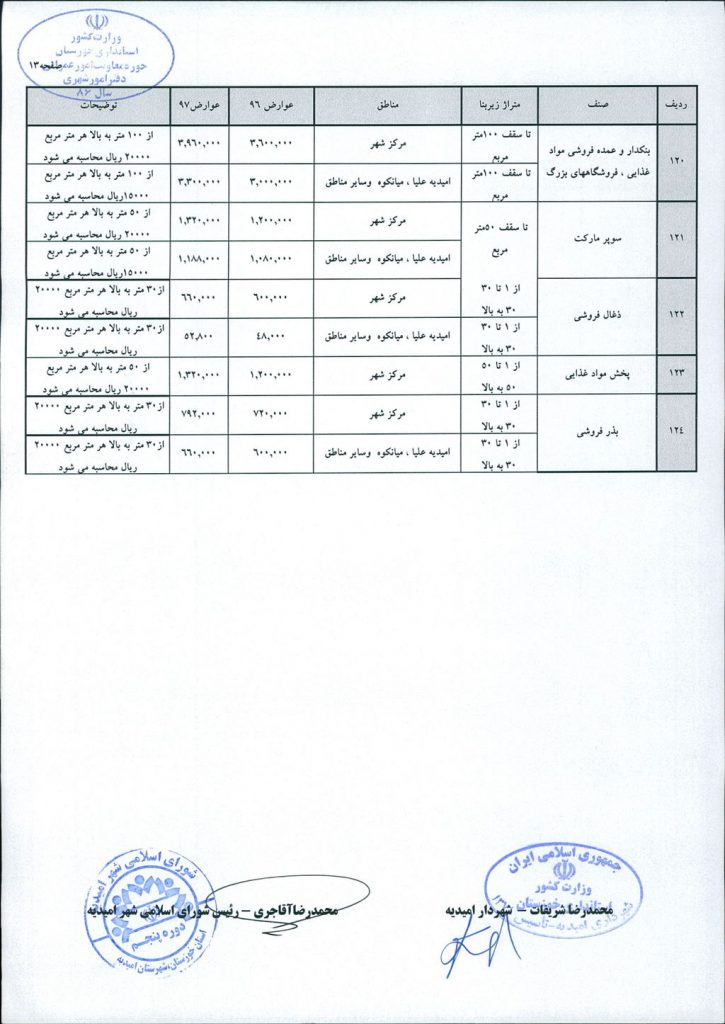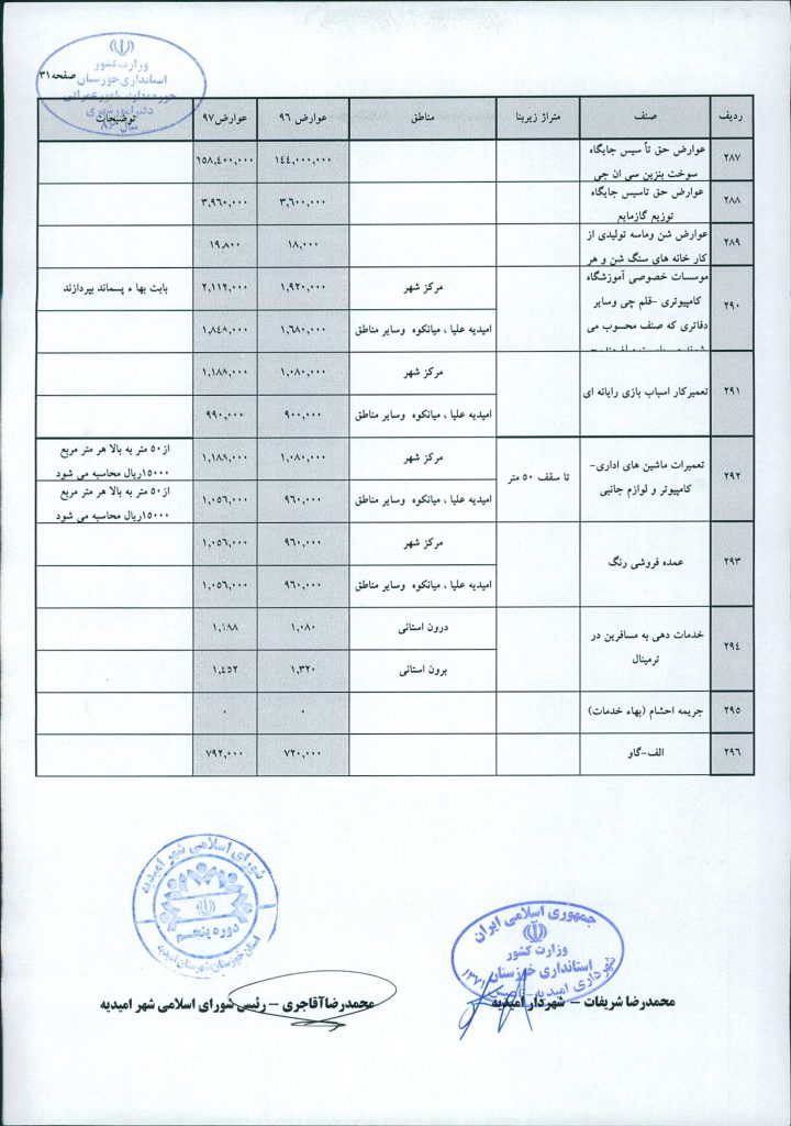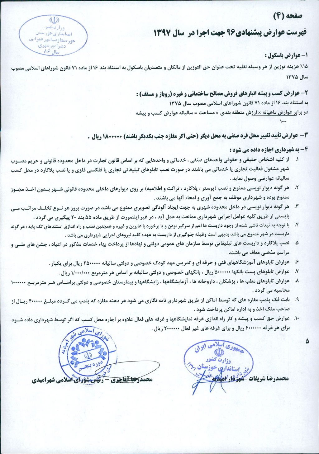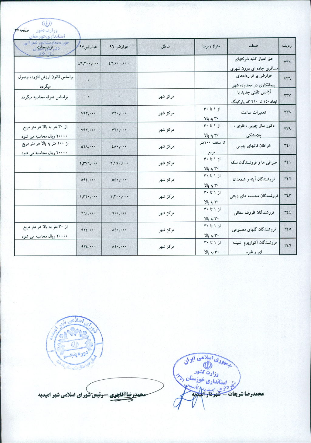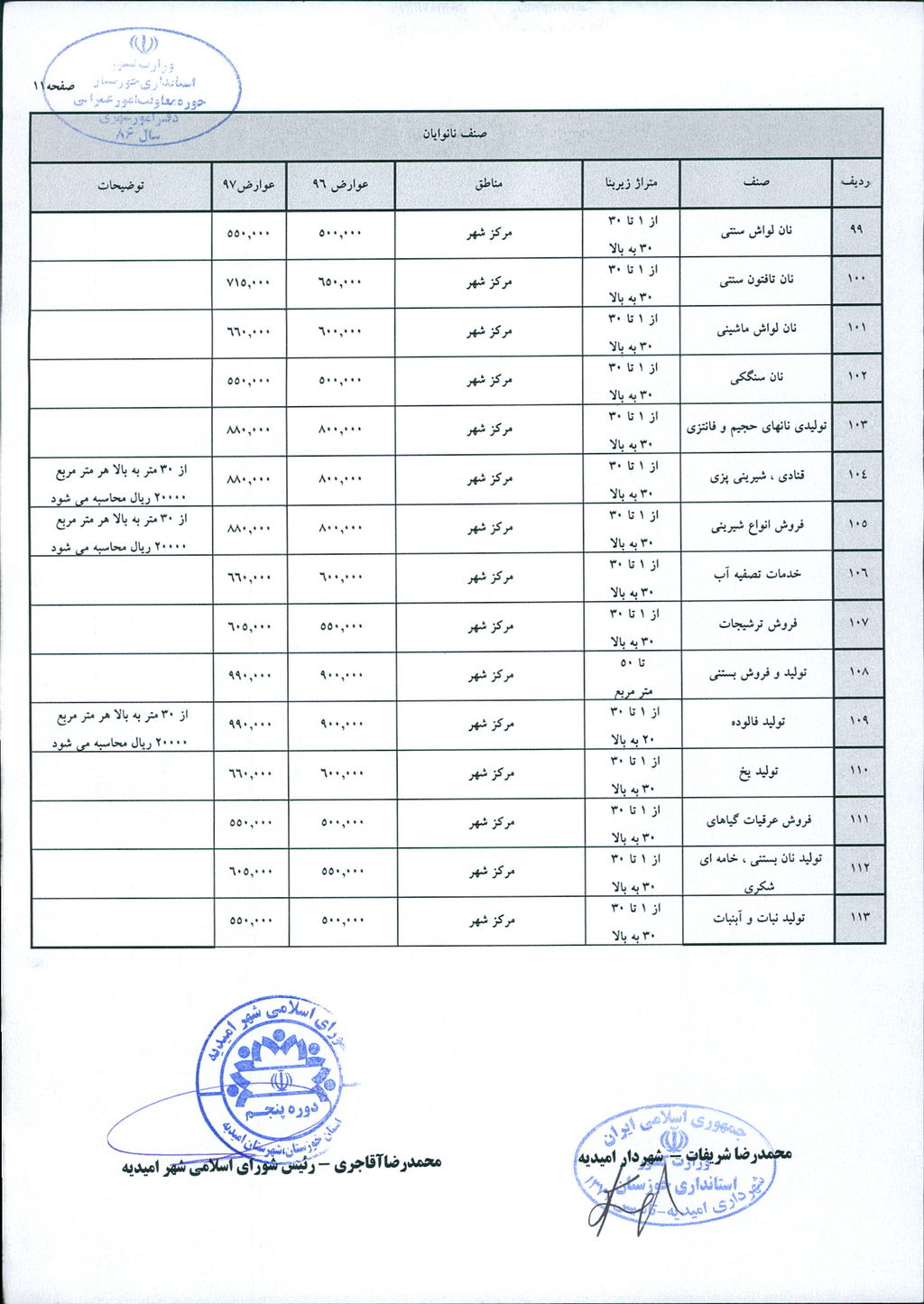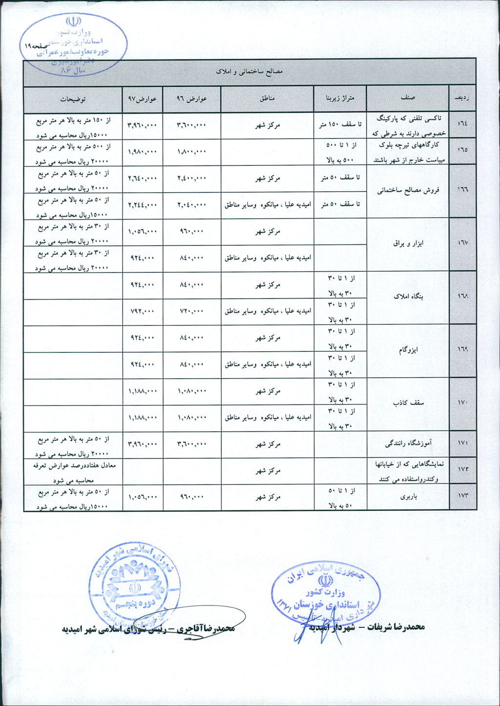 مصوبه شماره ۱ جلسه شماره ۲۱ مورخ ۹۶/۱۱/۲ شورای اسلامی شهر امیدیه