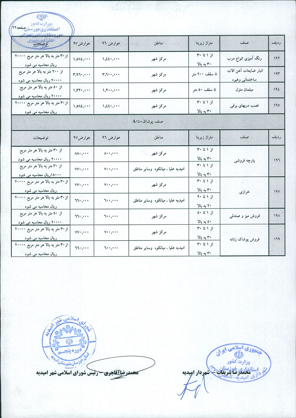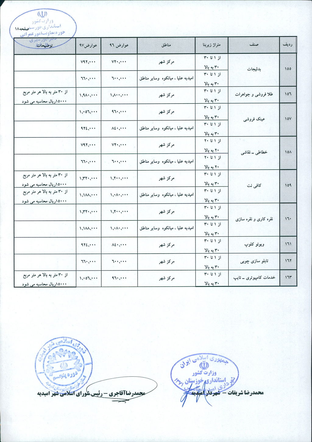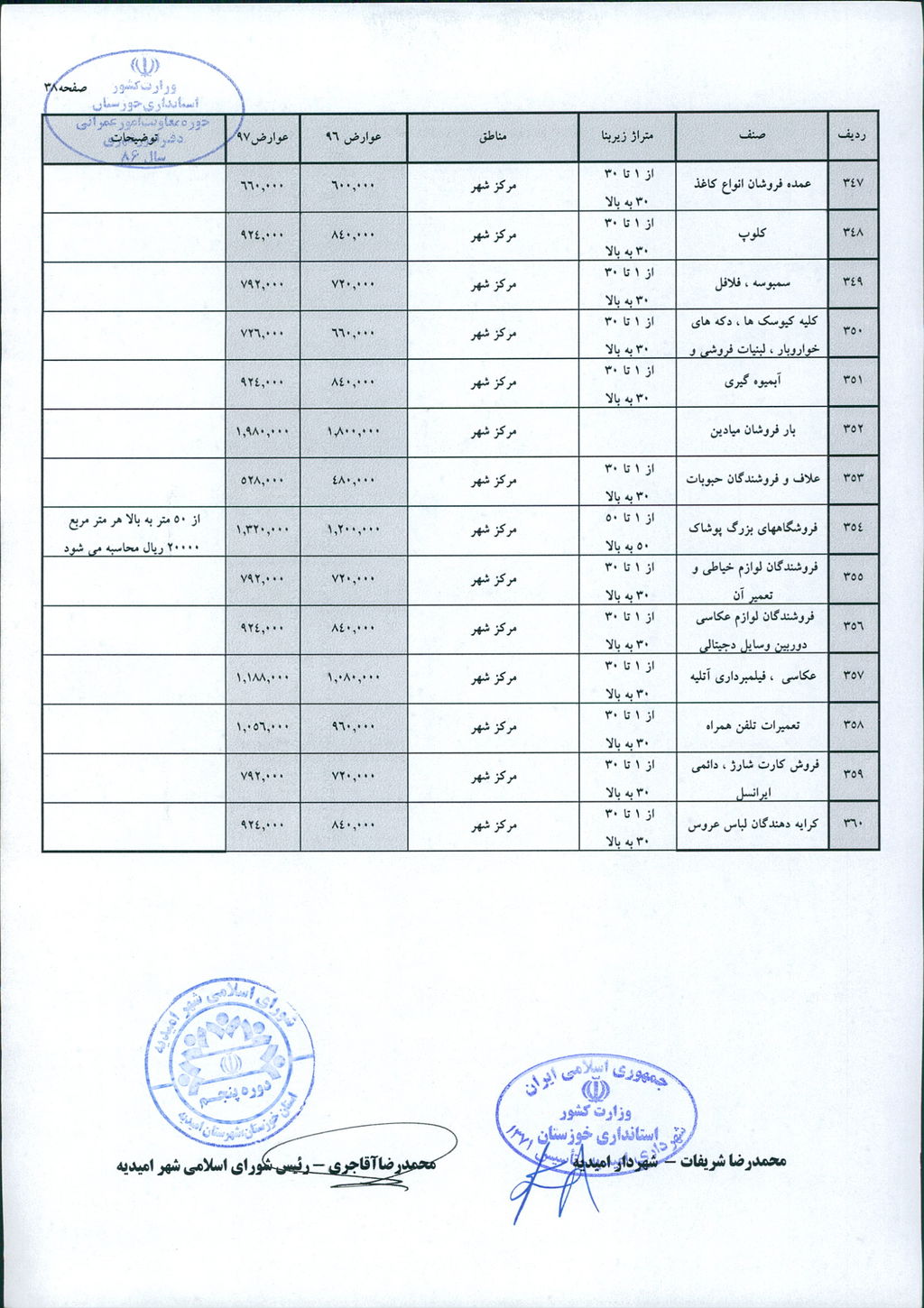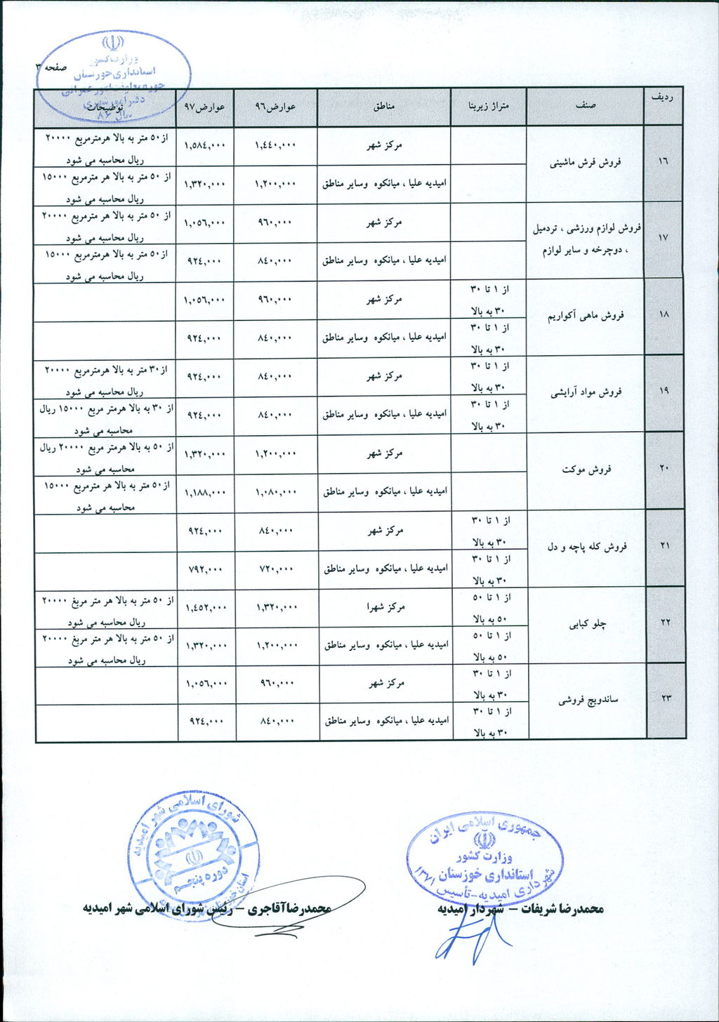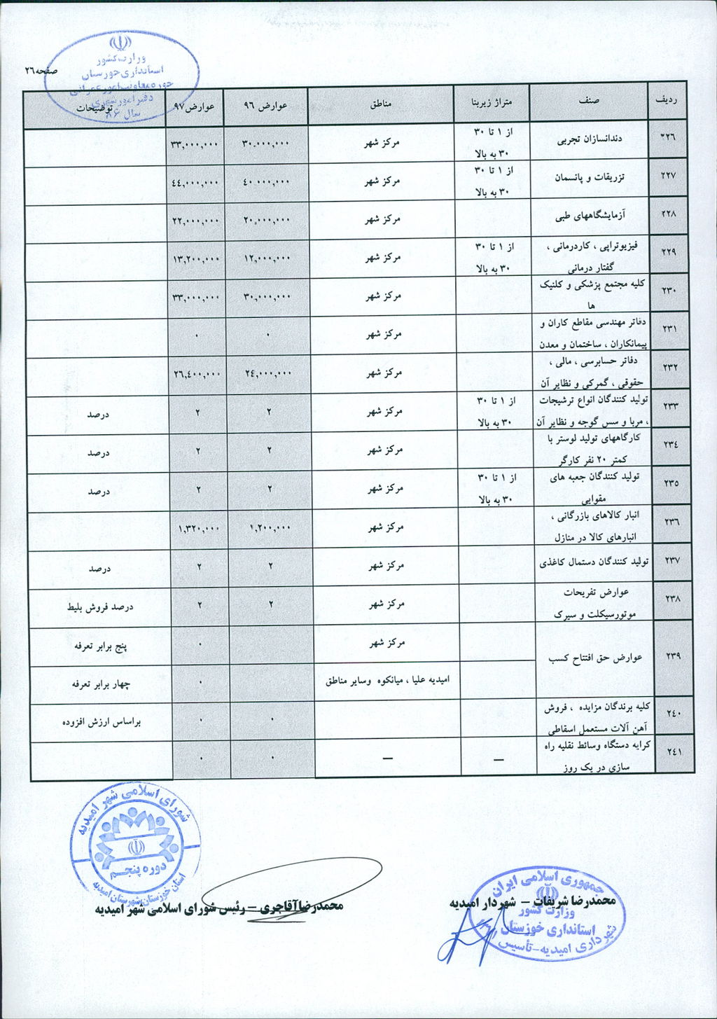 مصوبه شماره ۱ جلسه شماره ۲۱ مورخ ۹۶/۱۱/۲ شورای اسلامی شهر امیدیه