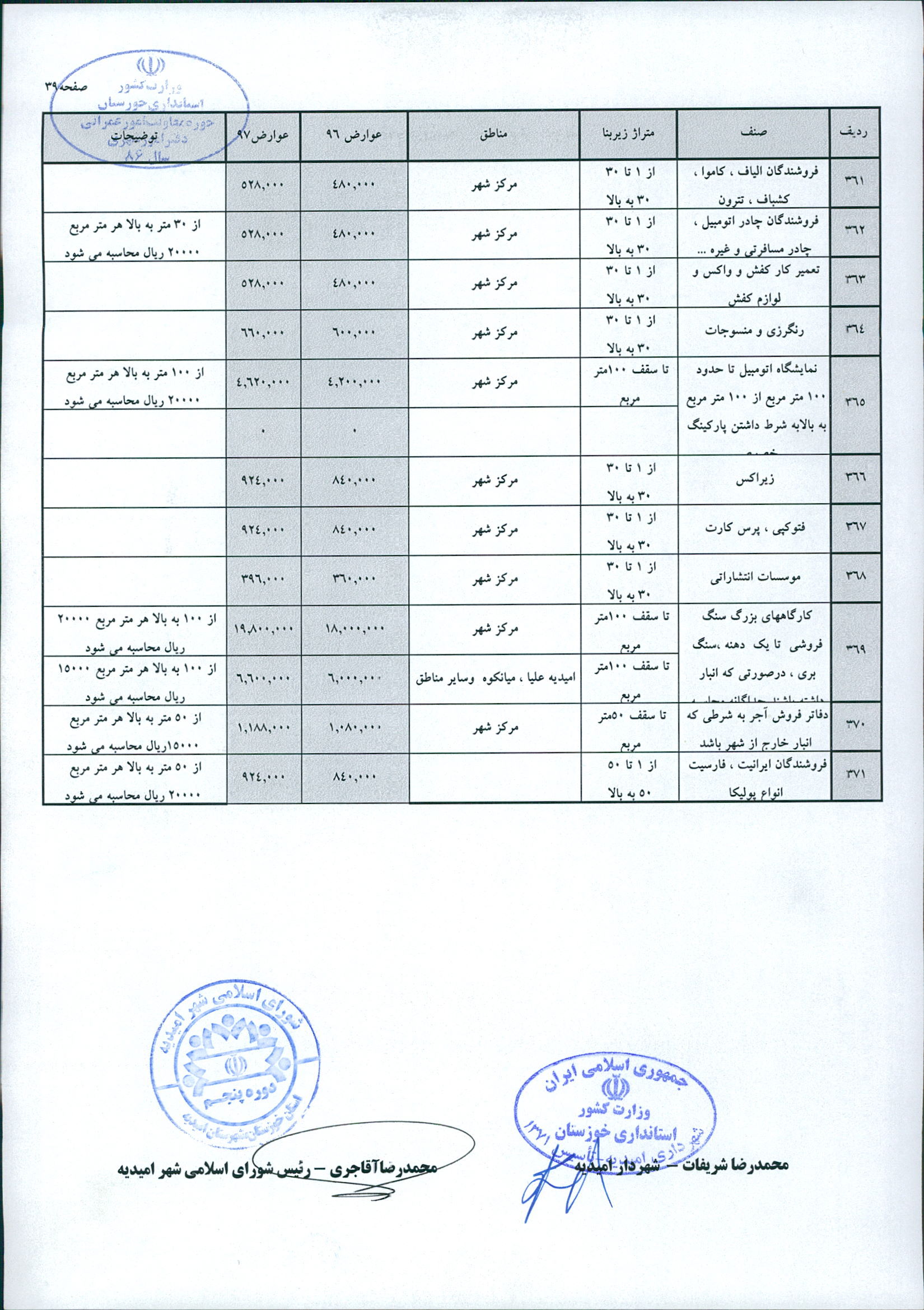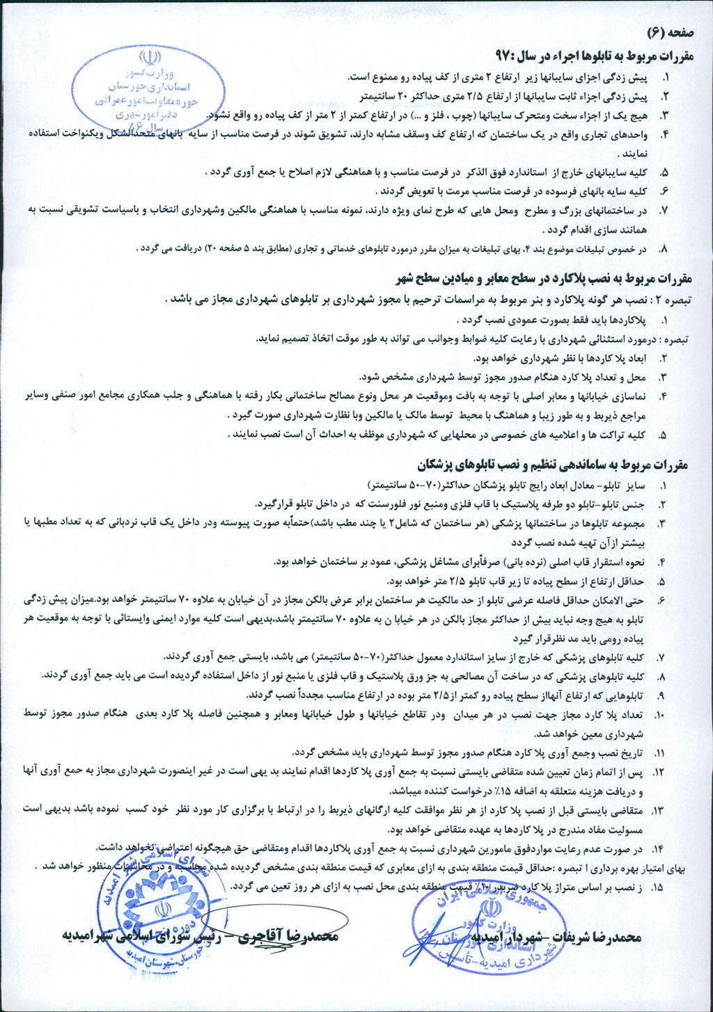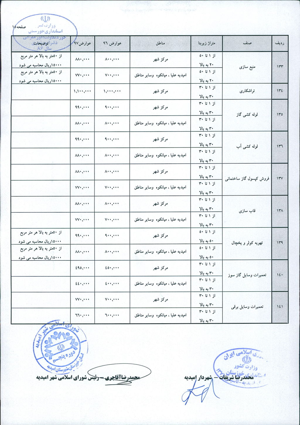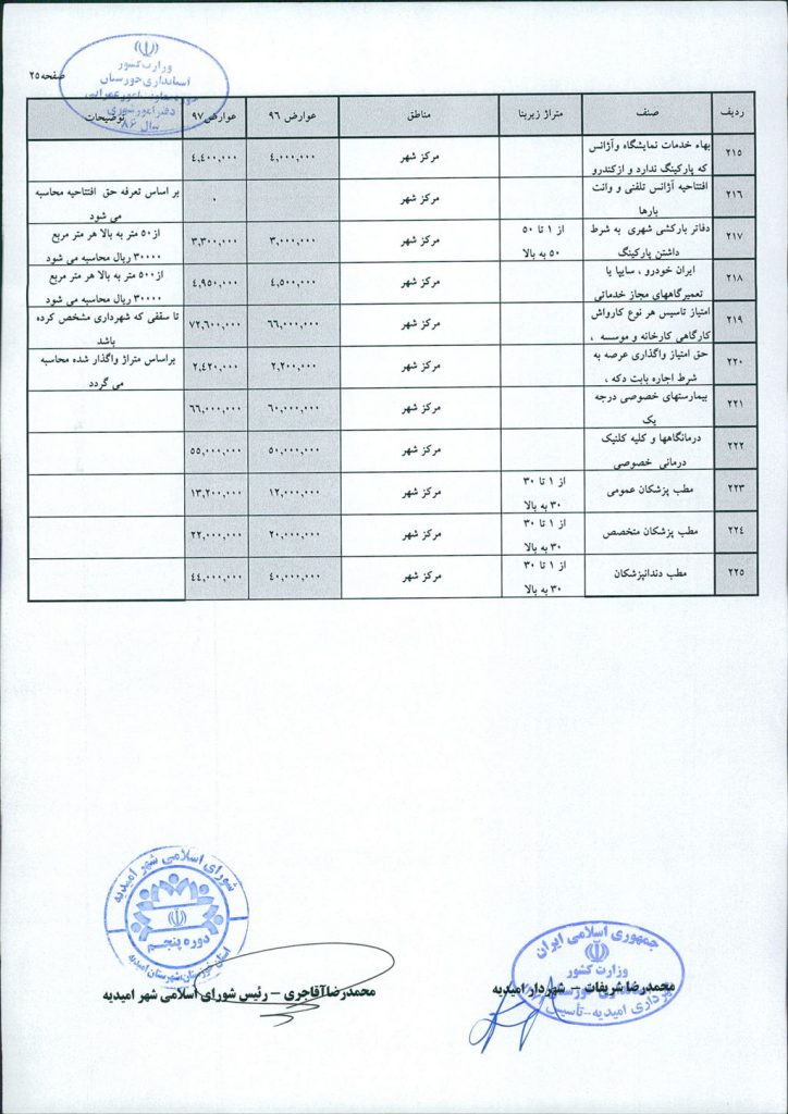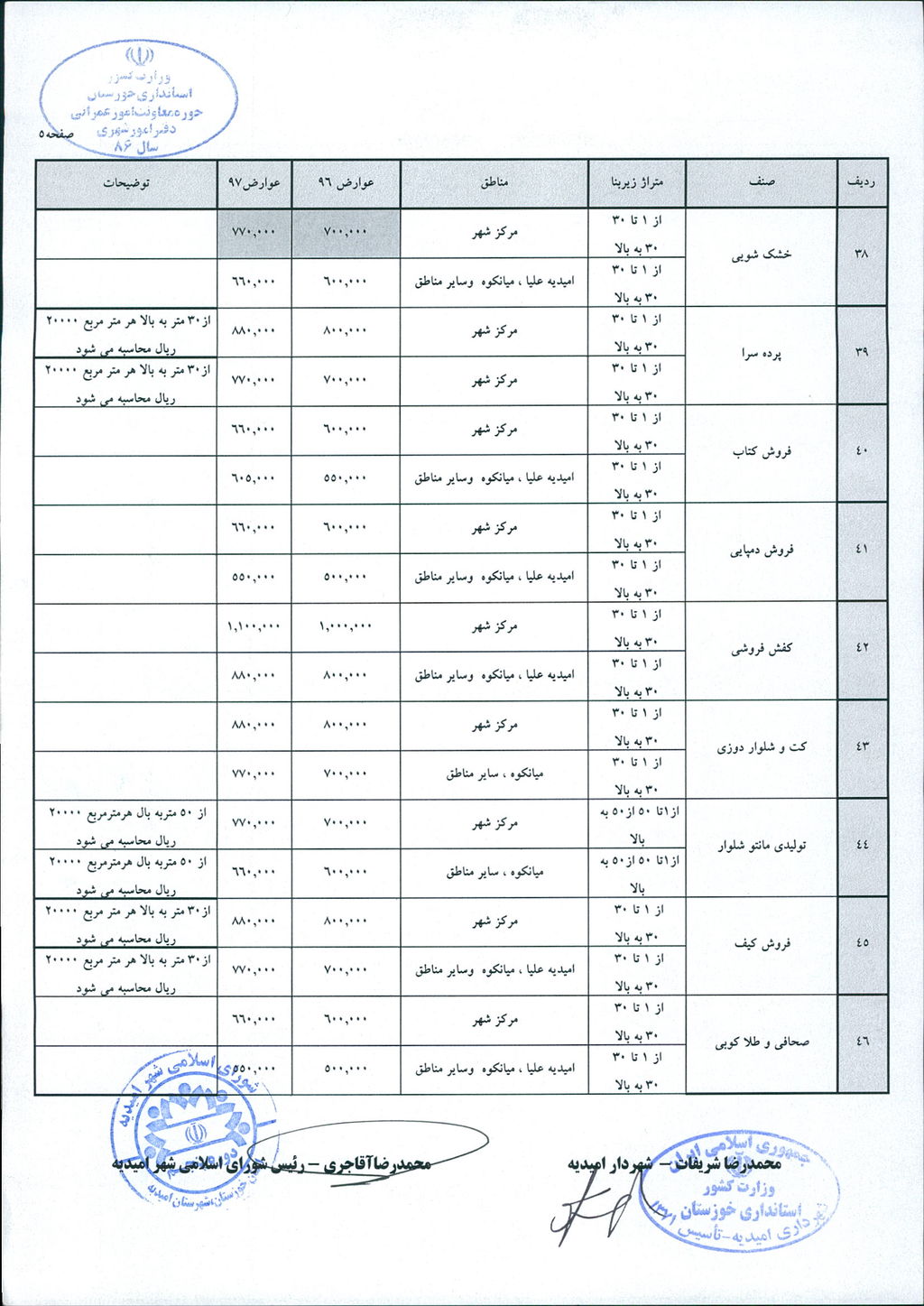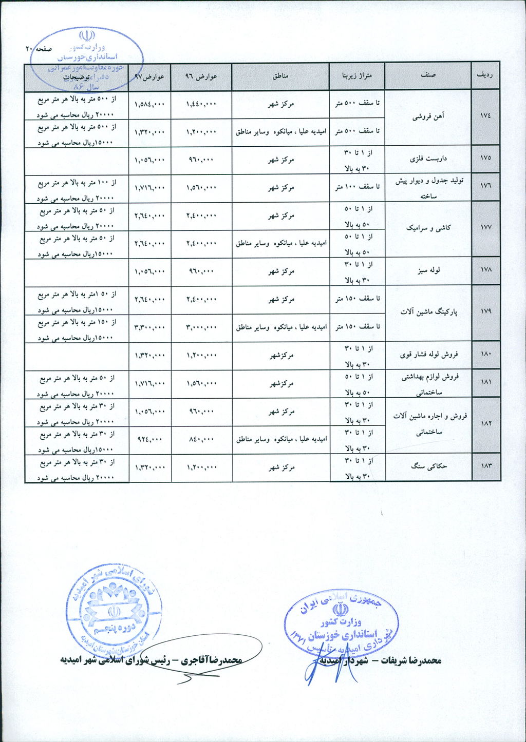مصوبه شماره ۱ جلسه شماره ۲۱ مورخ ۹۶/۱۱/۲ شورای اسلامی شهر امیدیه