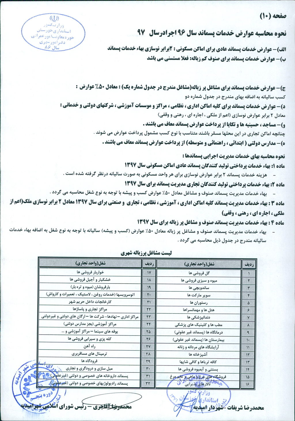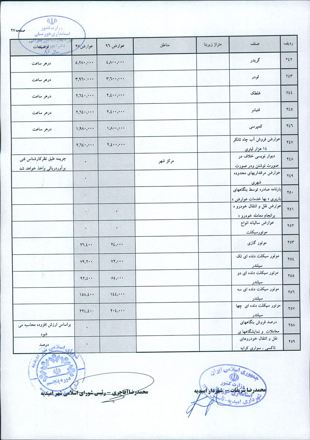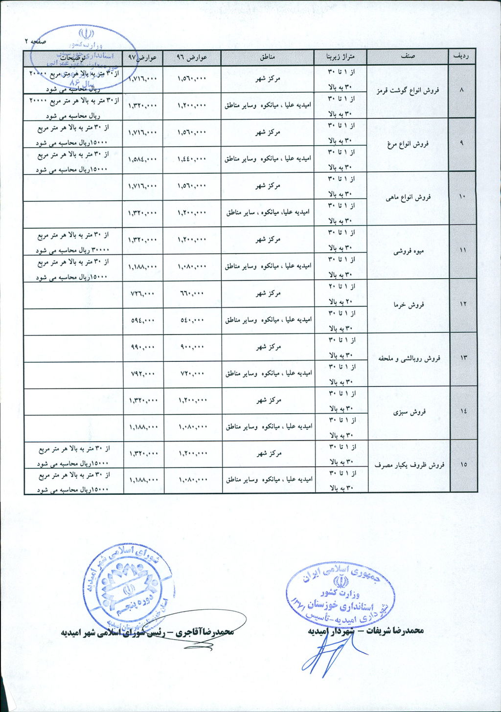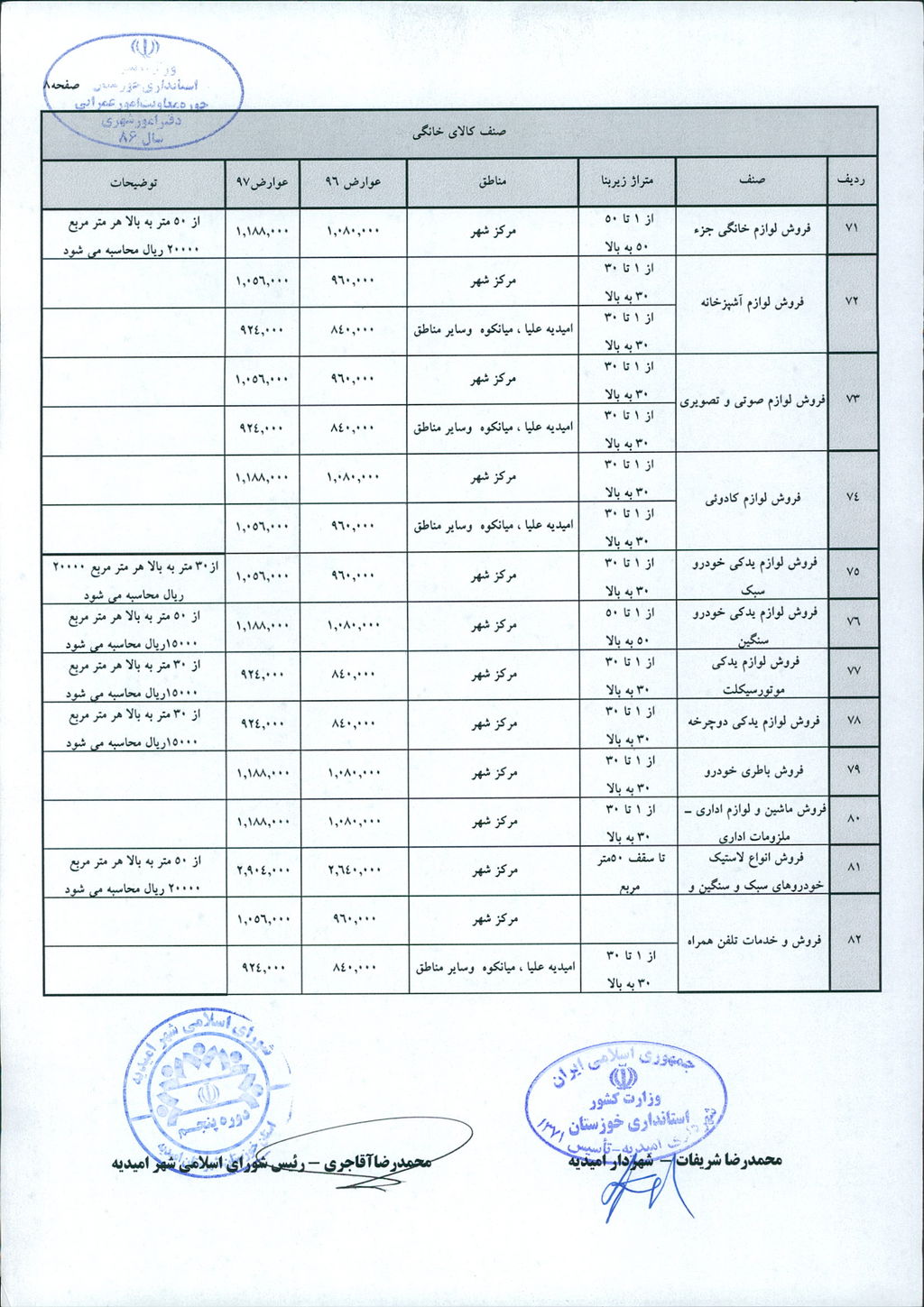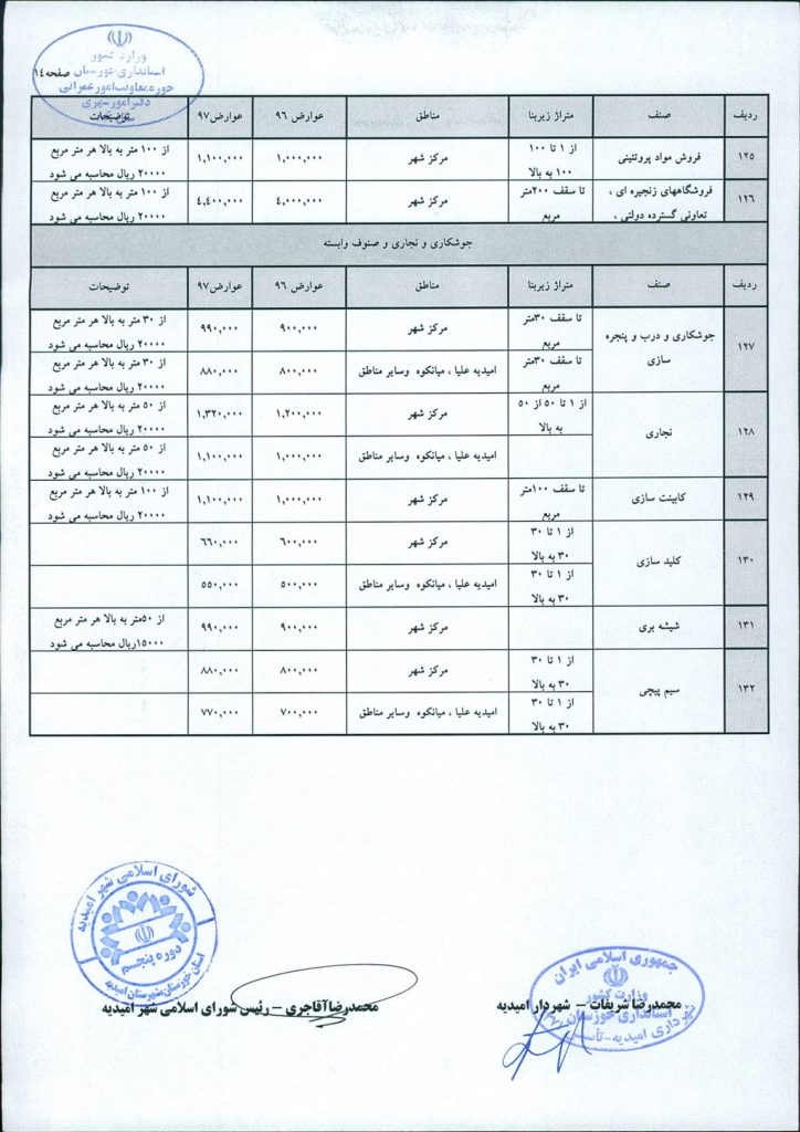 مصوبه شماره ۱ جلسه شماره ۲۱ مورخ ۹۶/۱۱/۲ شورای اسلامی شهر امیدیه