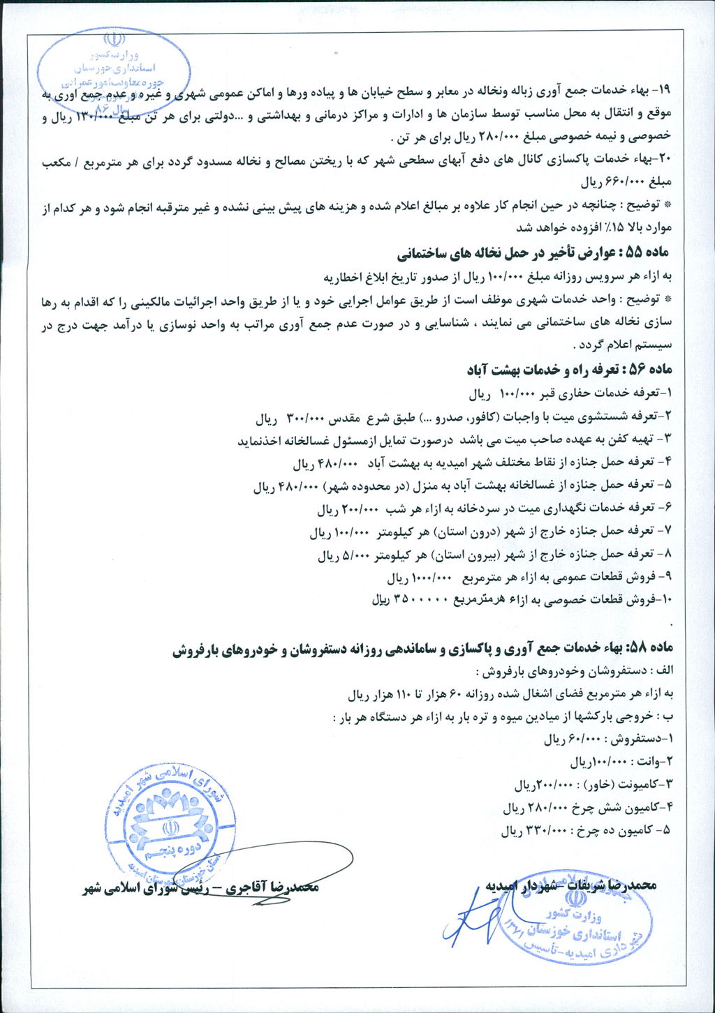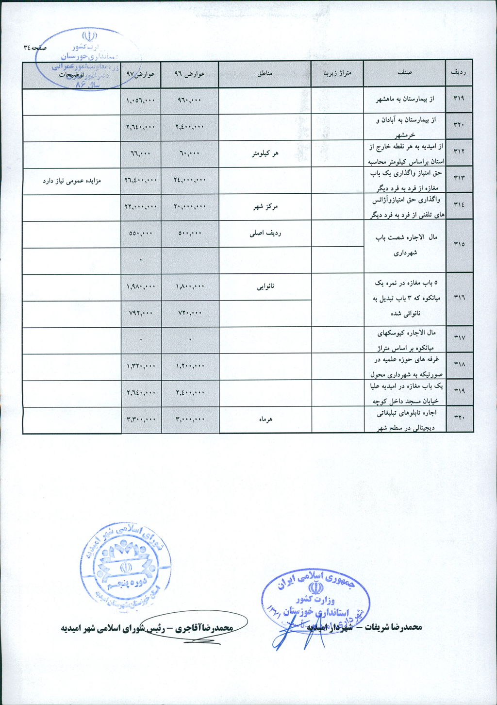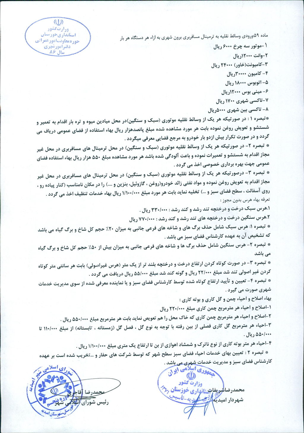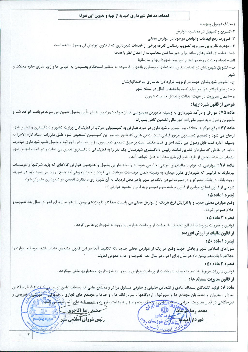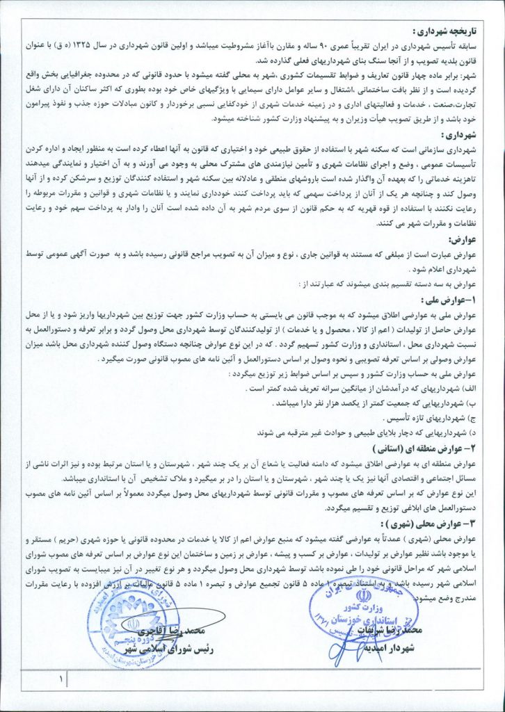 مصوبه شماره ۱ جلسه شماره ۲۱ شورای اسلامی شهر امیدیه