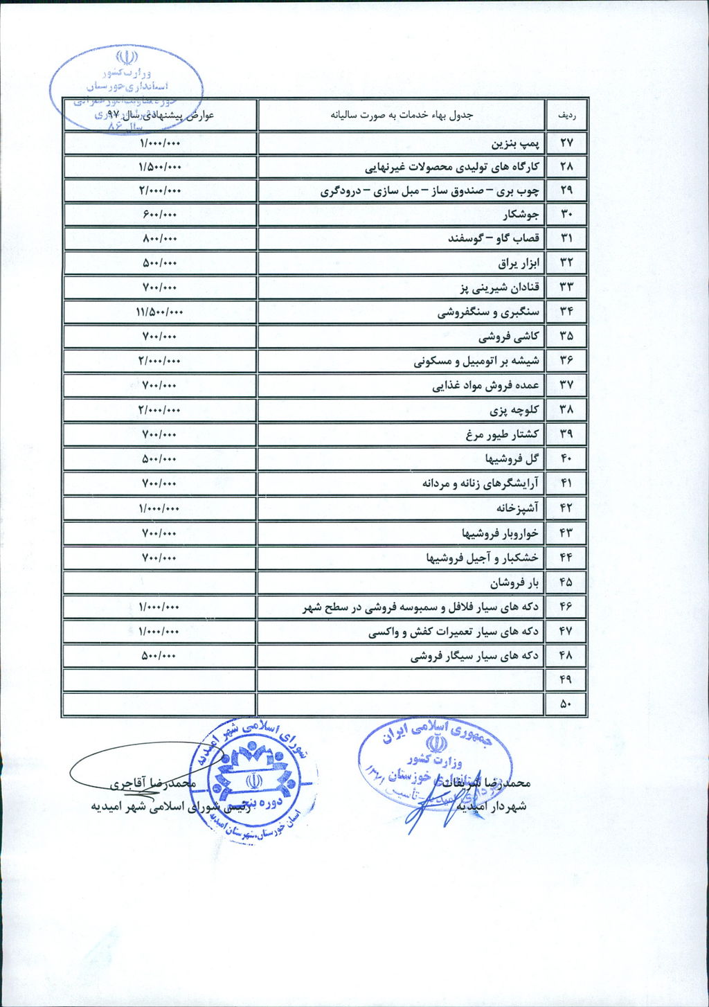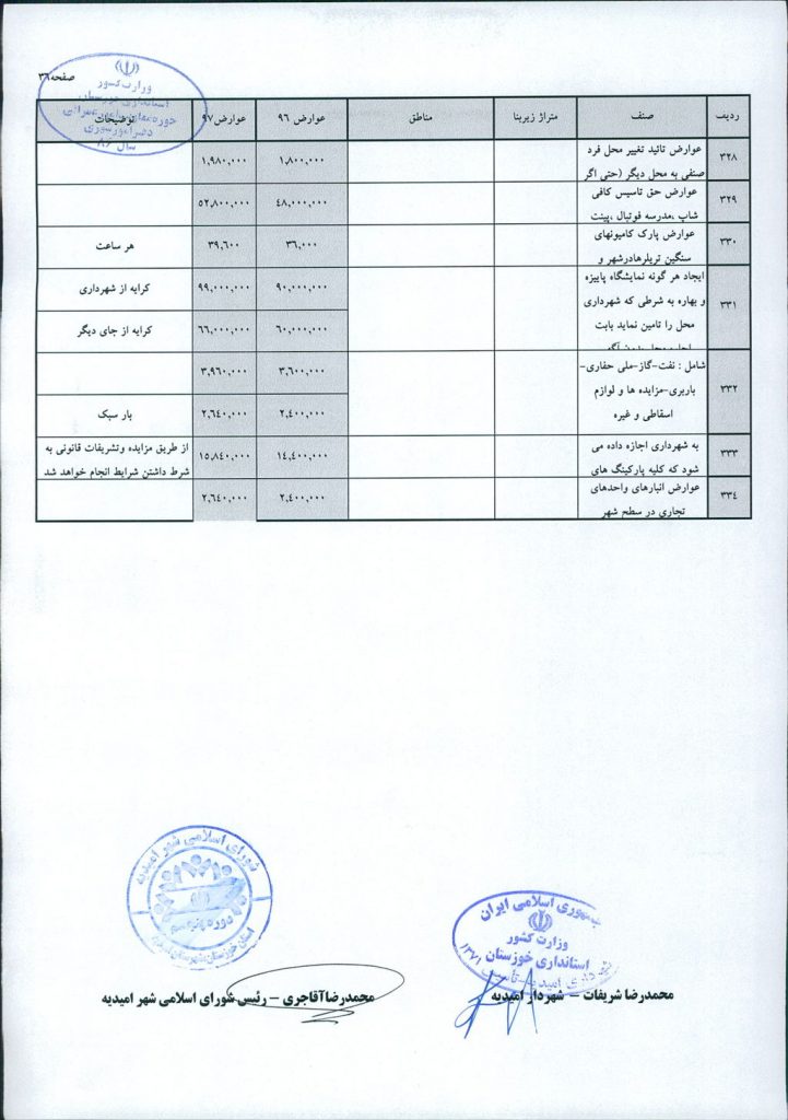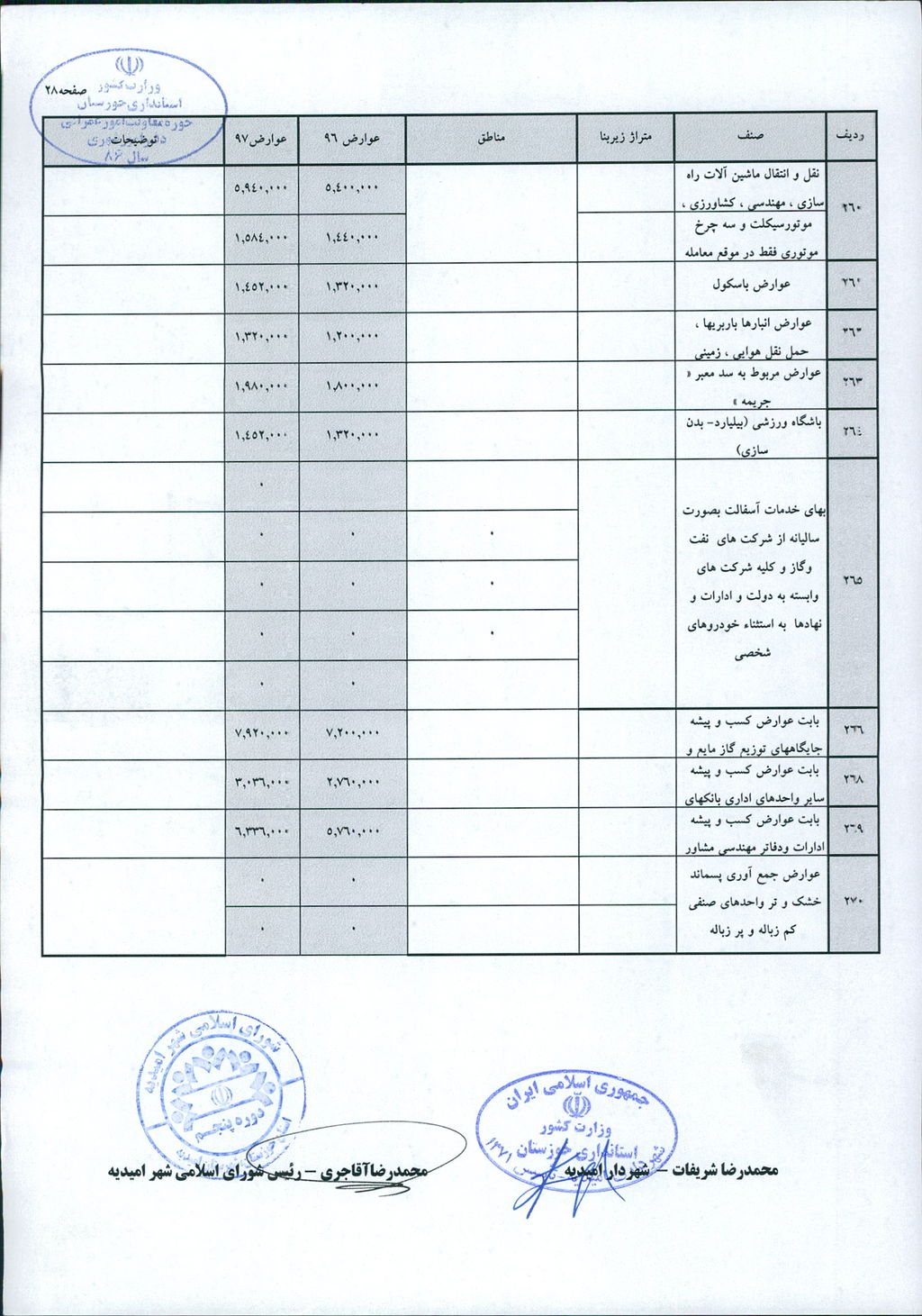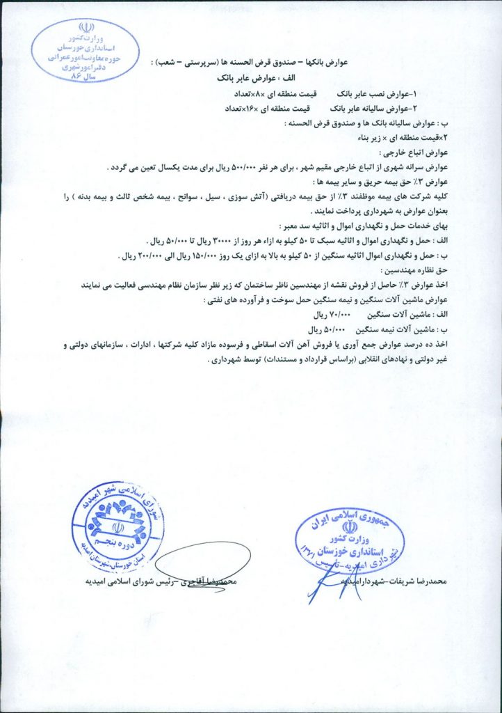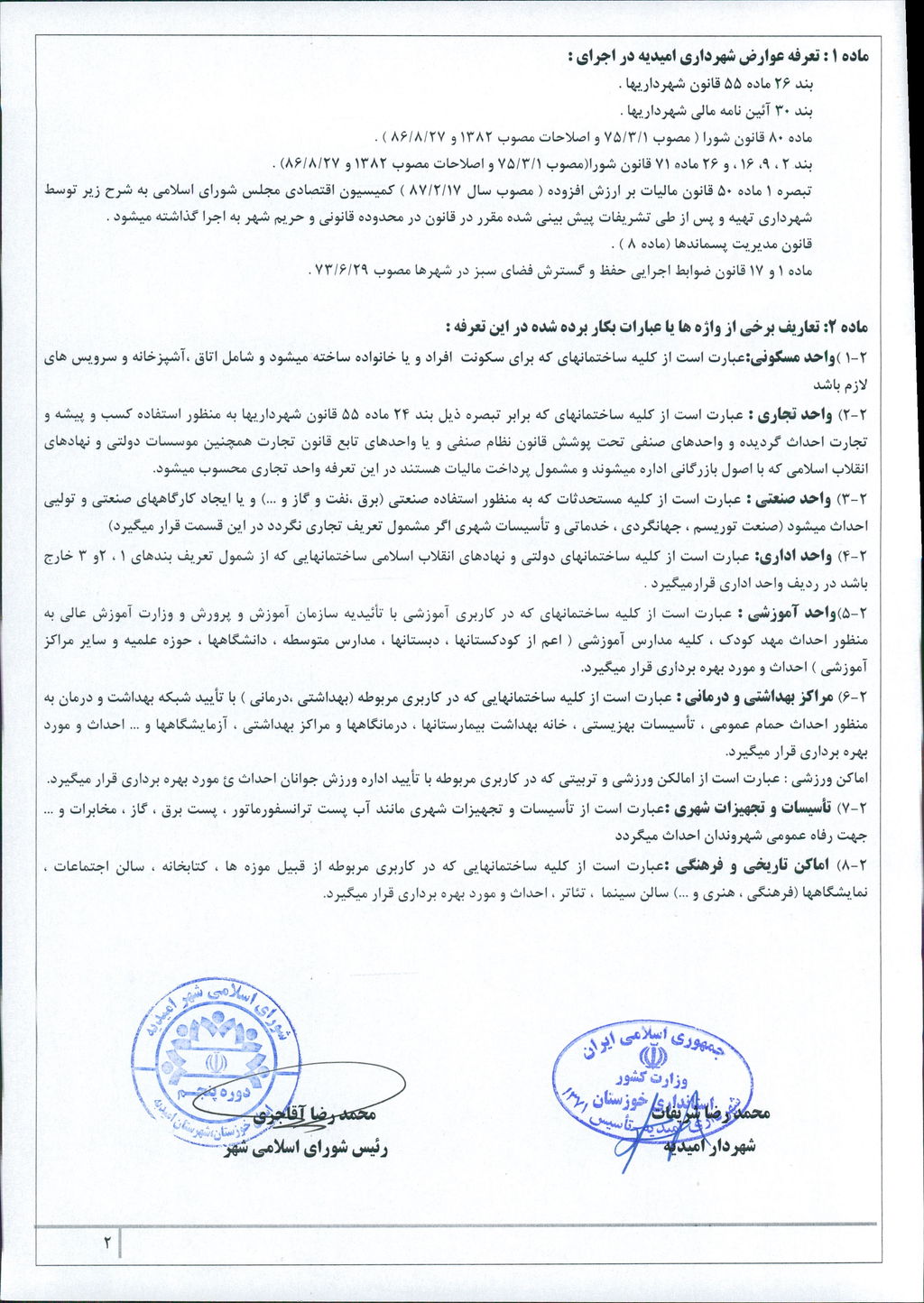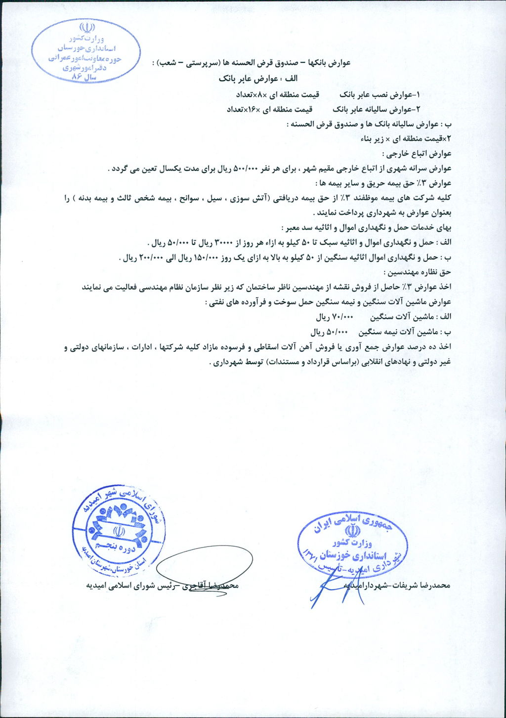 مصوبه شماره ۱ جلسه شماره ۲۱ شورای اسلامی شهر امیدیه