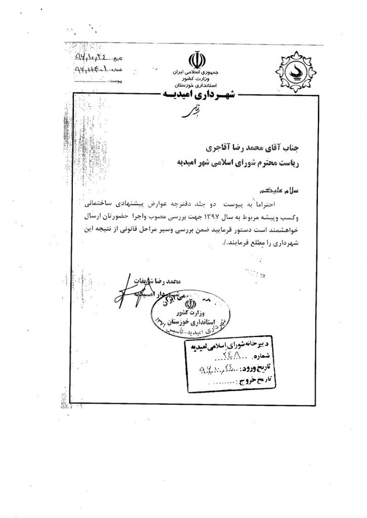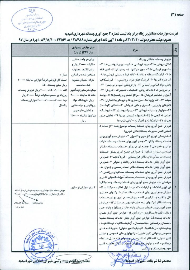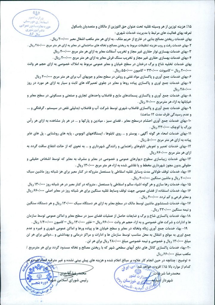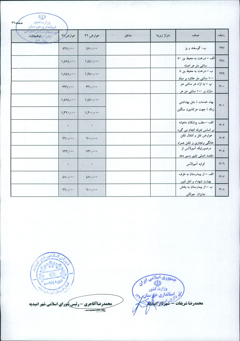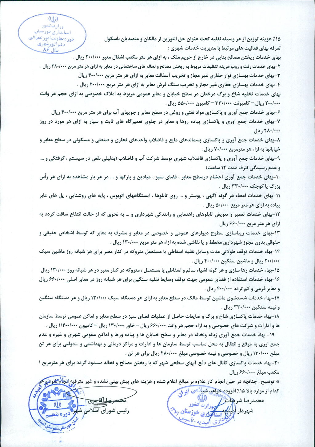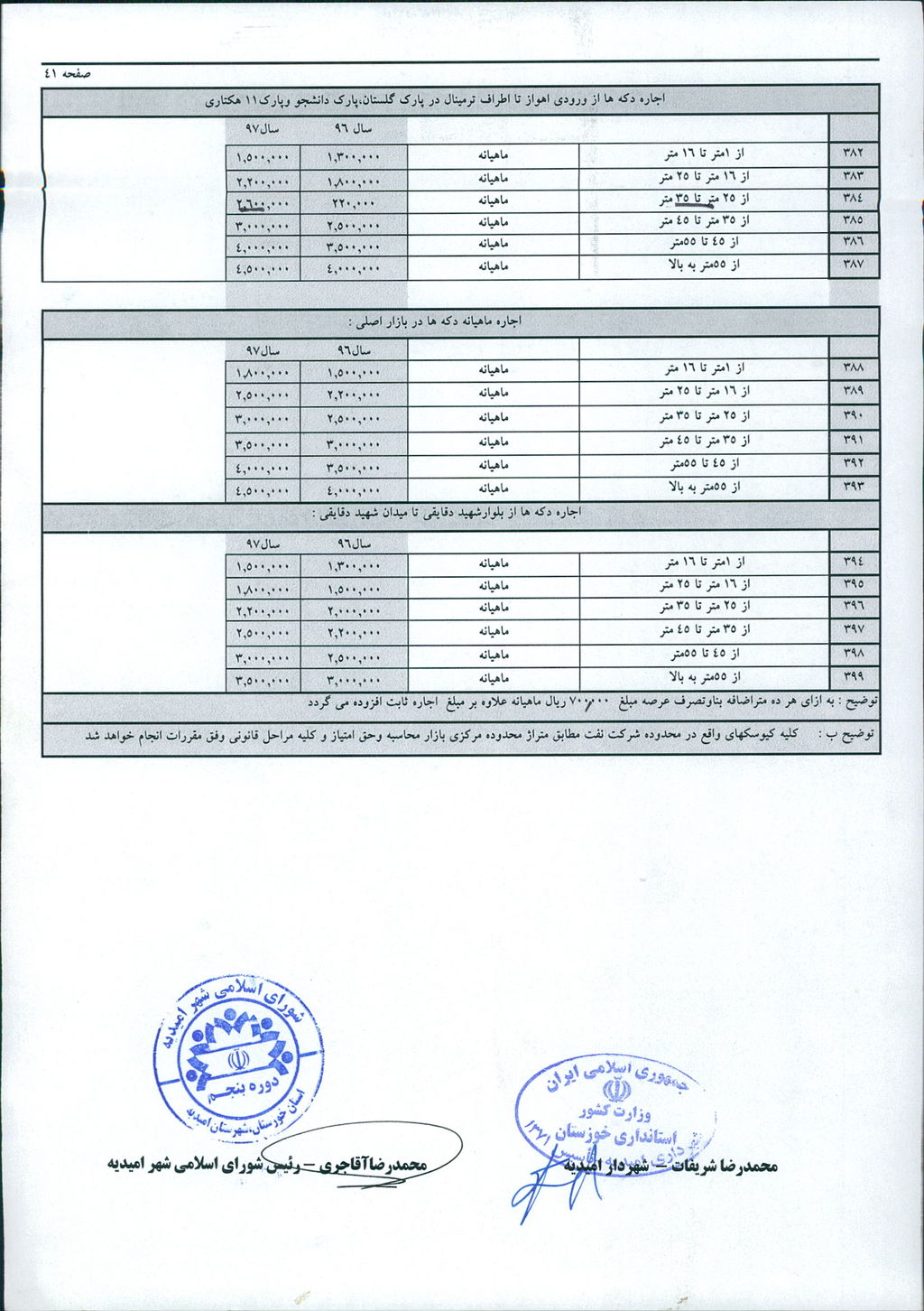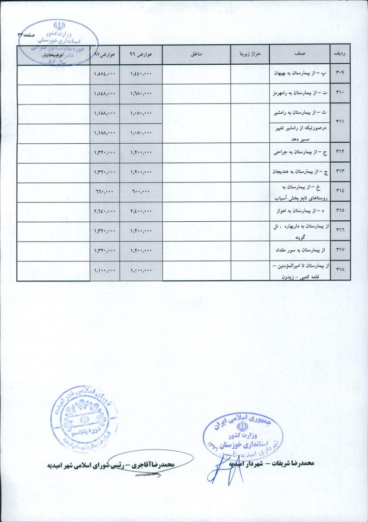 مصوبه شماره ۱ جلسه شماره ۲۱ شورای اسلامی شهر امیدیه