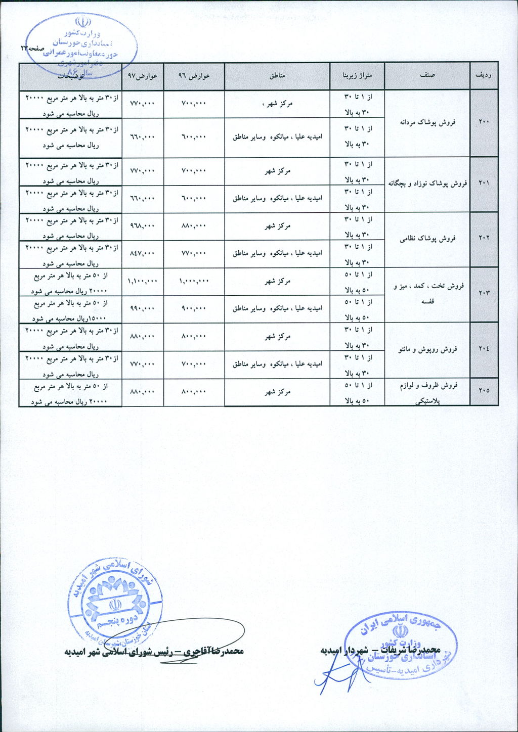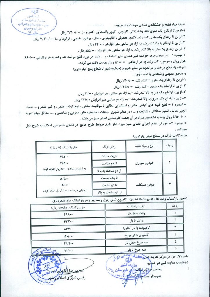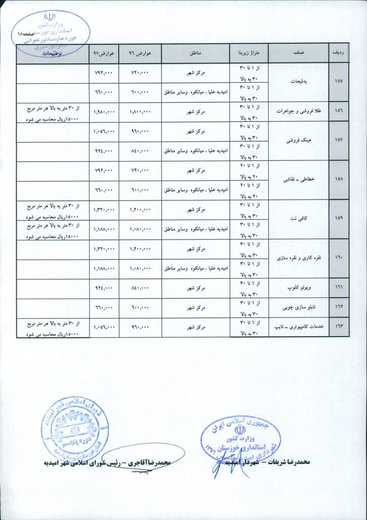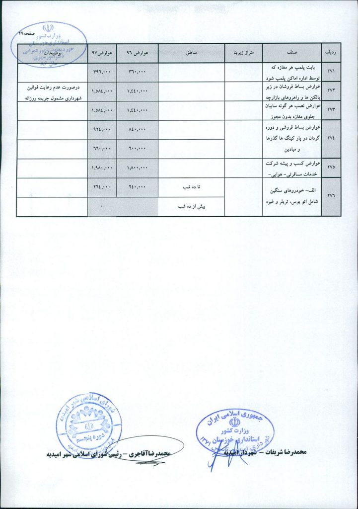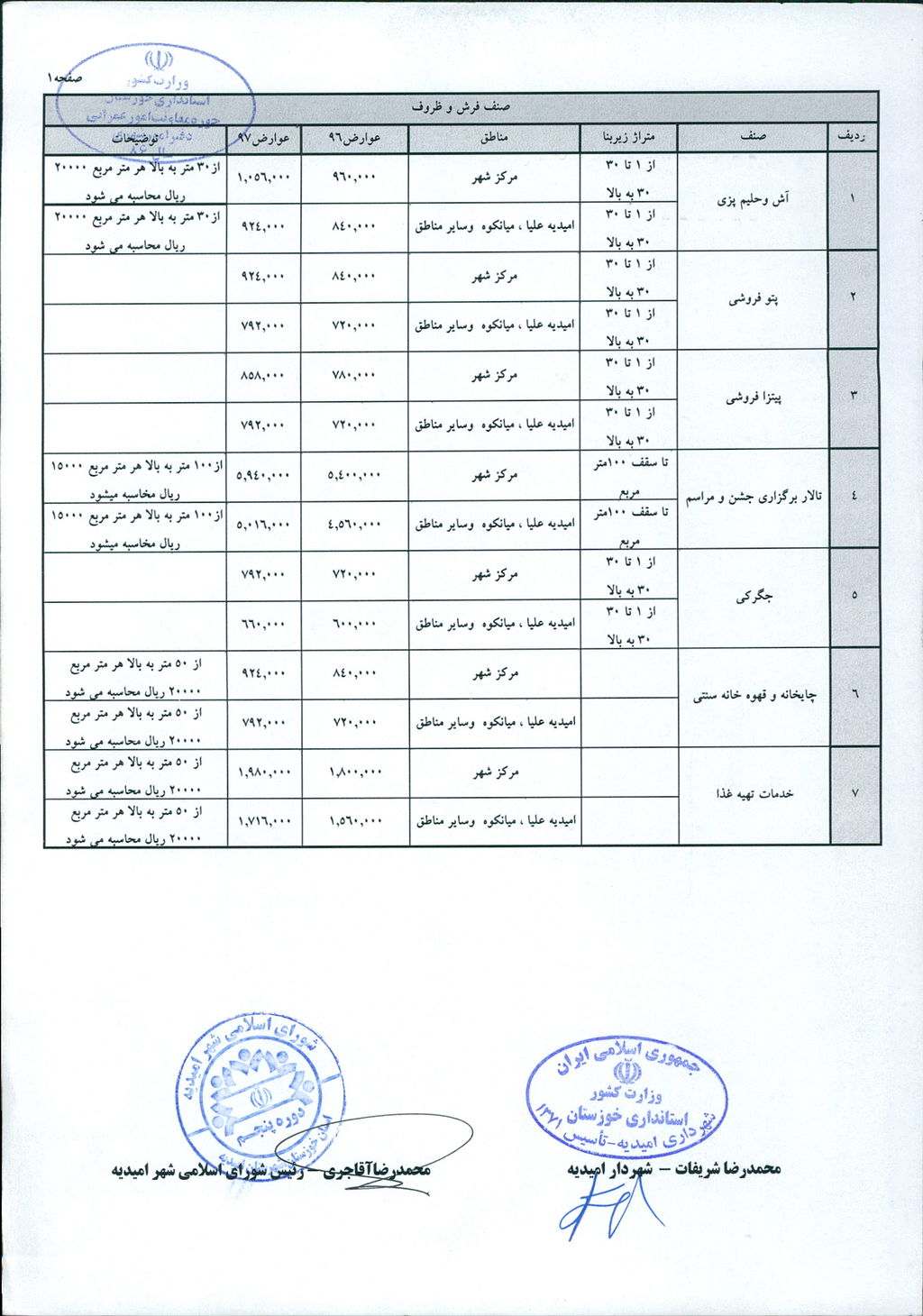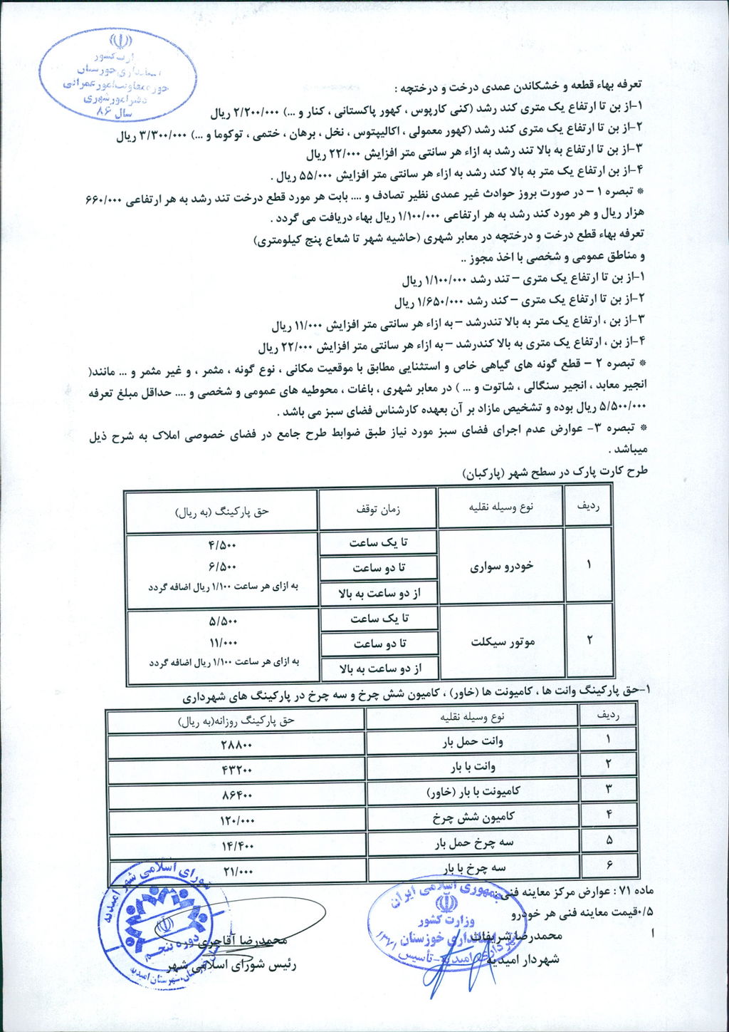 مصوبه شماره ۱ جلسه شماره ۲۱ شورای اسلامی شهر امیدیه