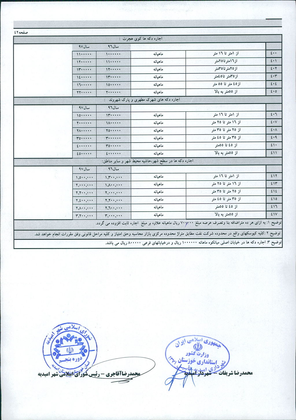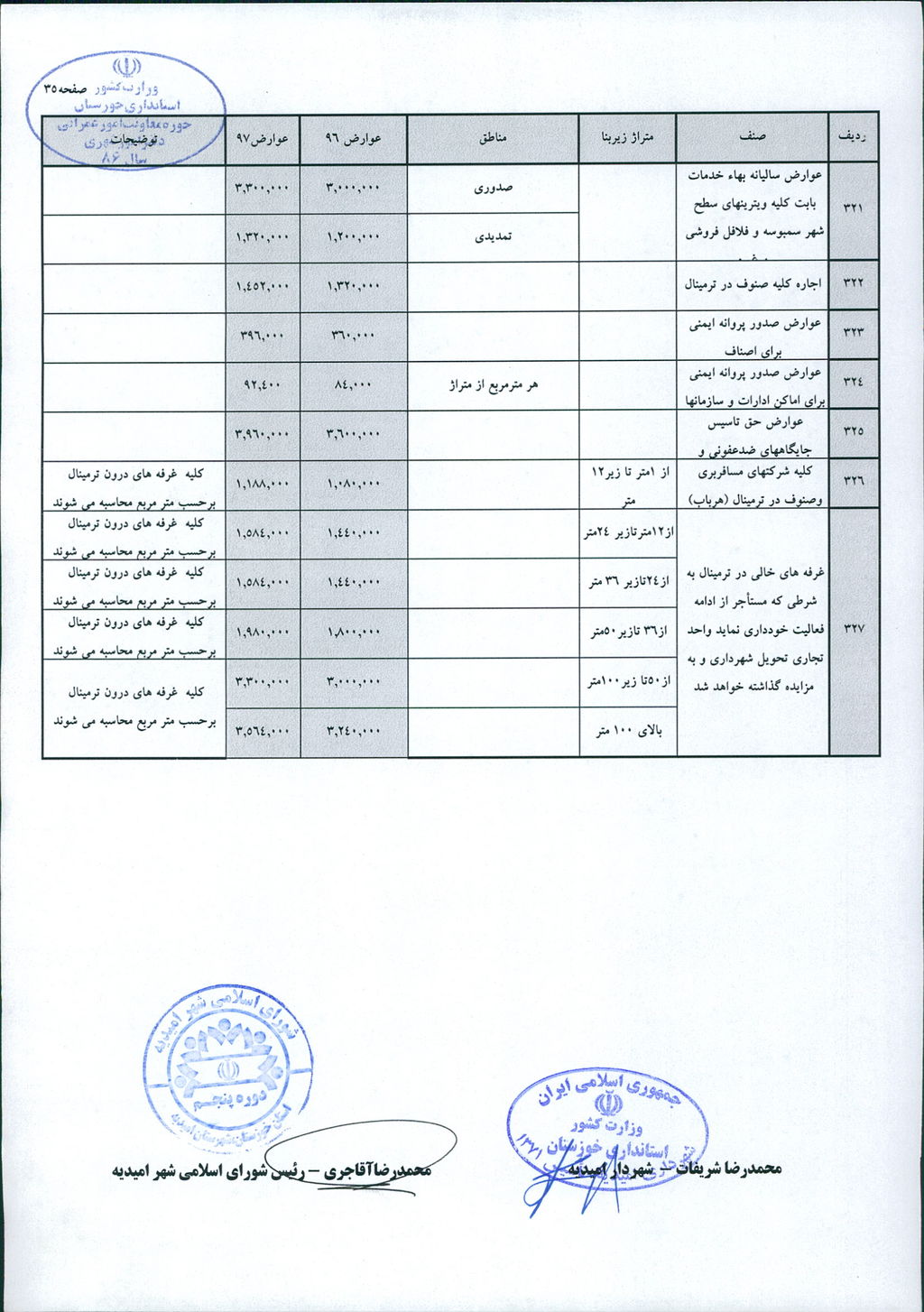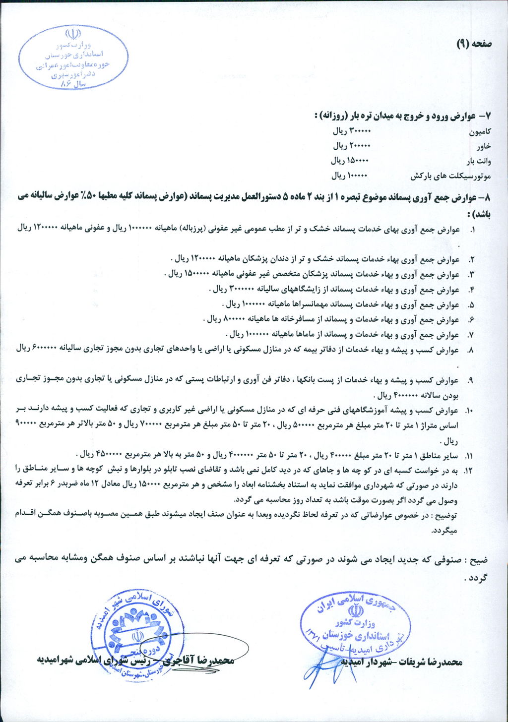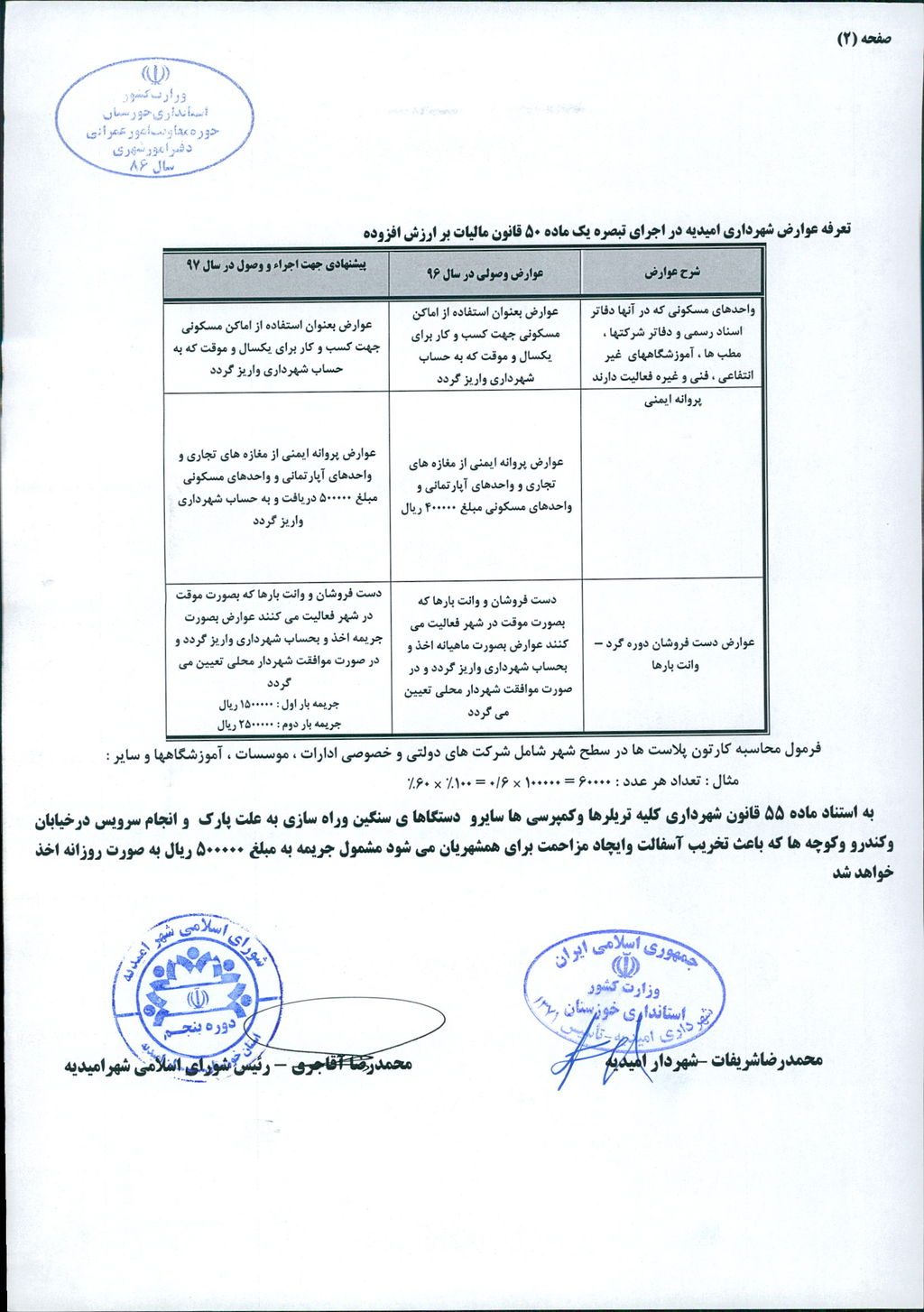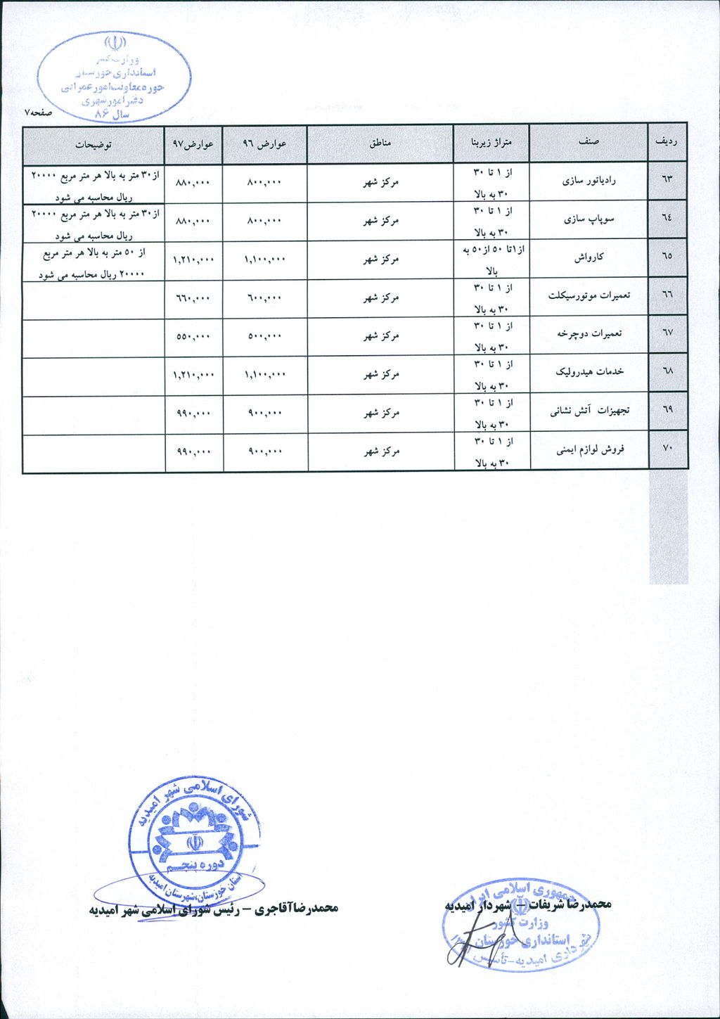 مصوبه شماره ۱ جلسه شماره ۲۱ شورای اسلامی شهر امیدیه
