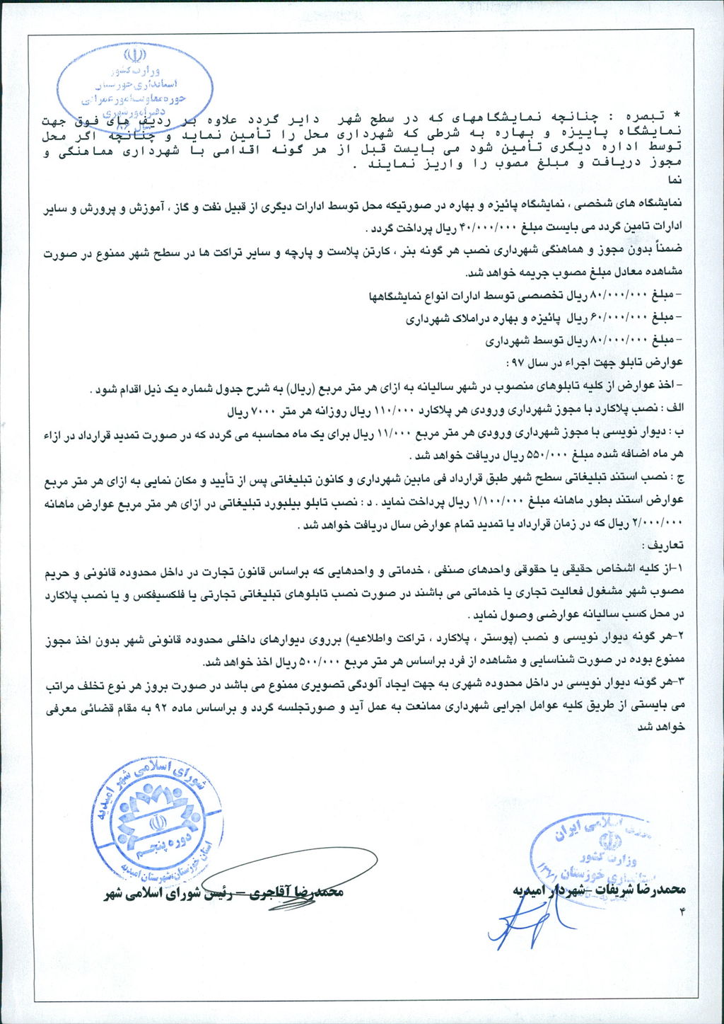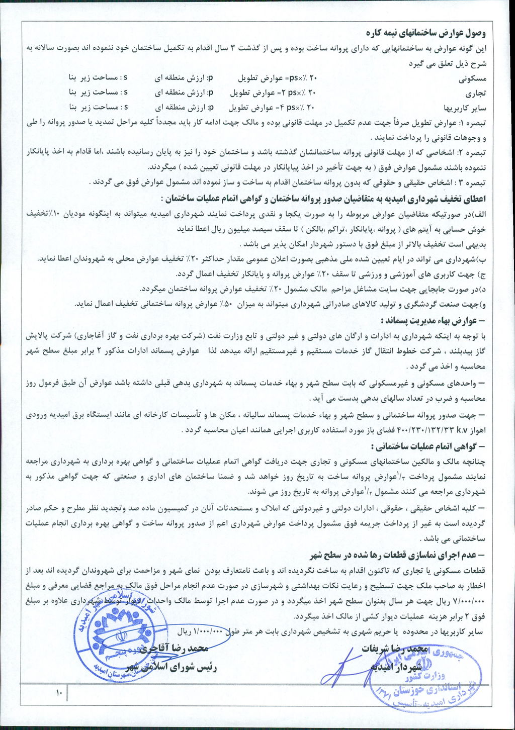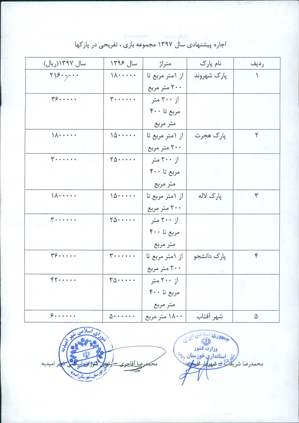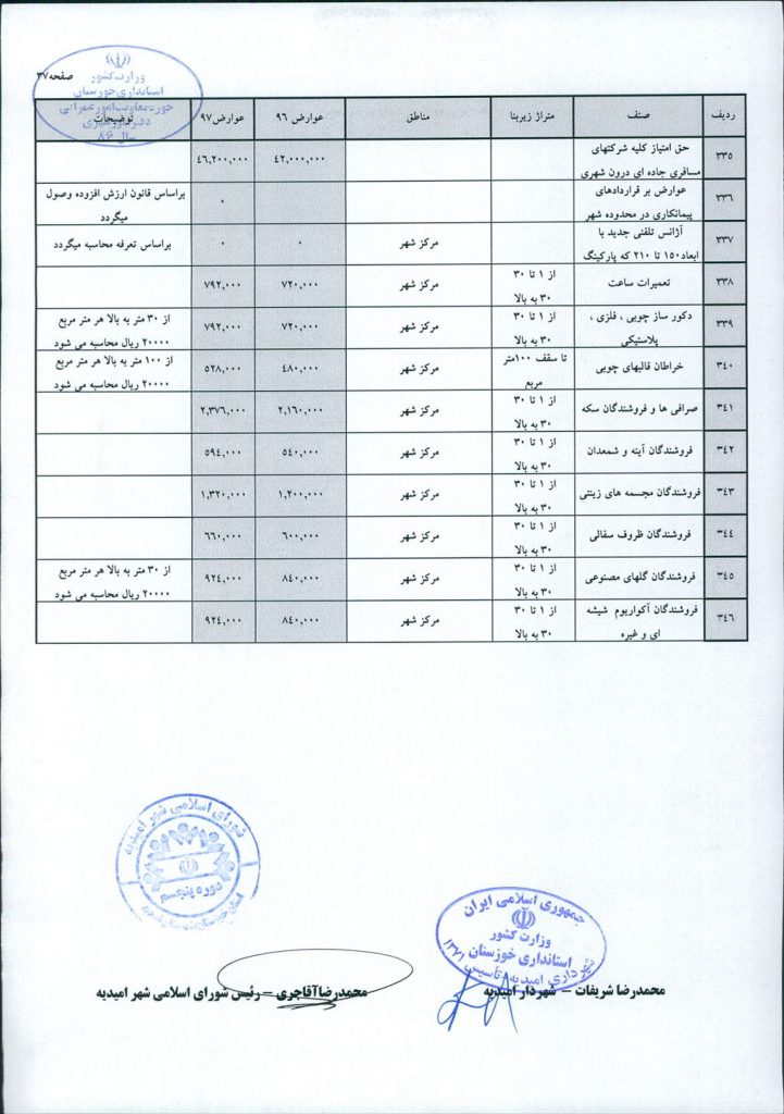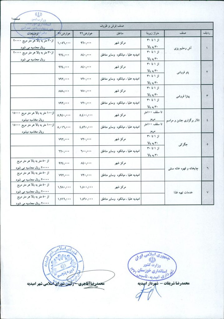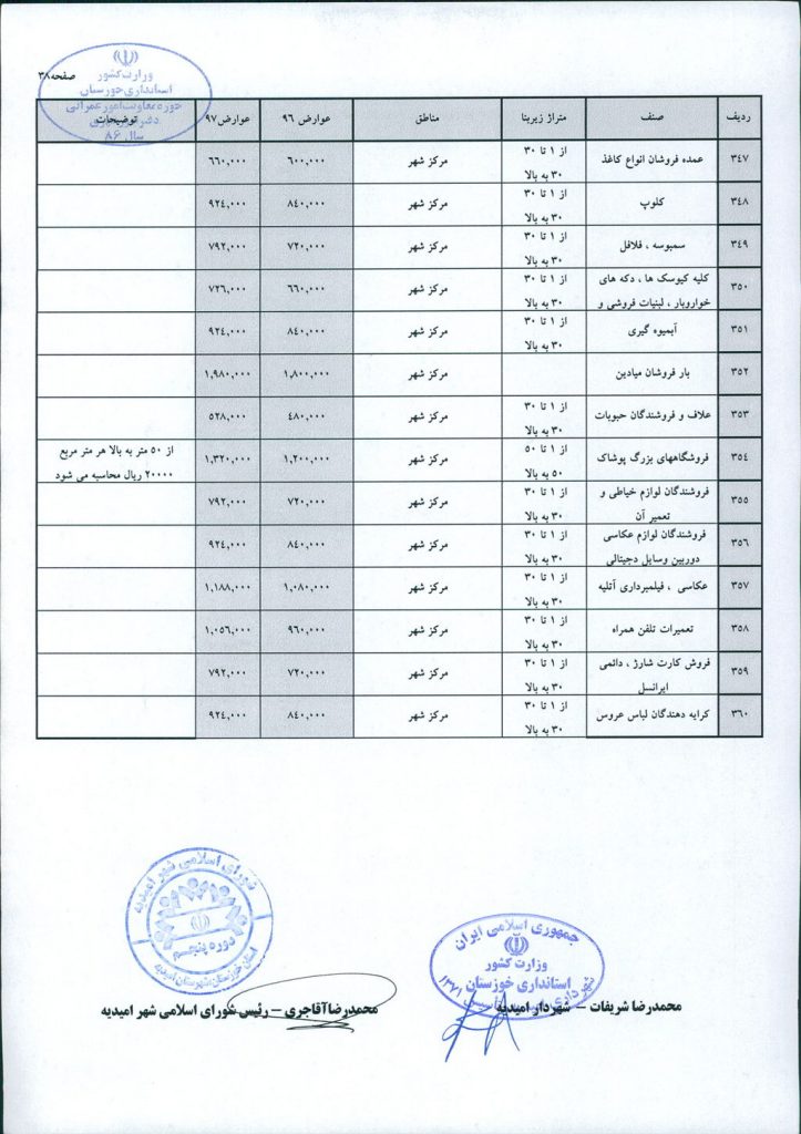 مصوبه شماره ۱ جلسه شماره ۲۱ شورای اسلامی شهر امیدیه