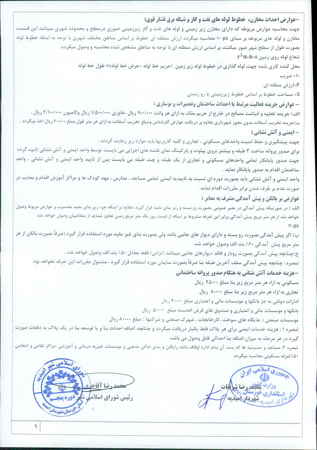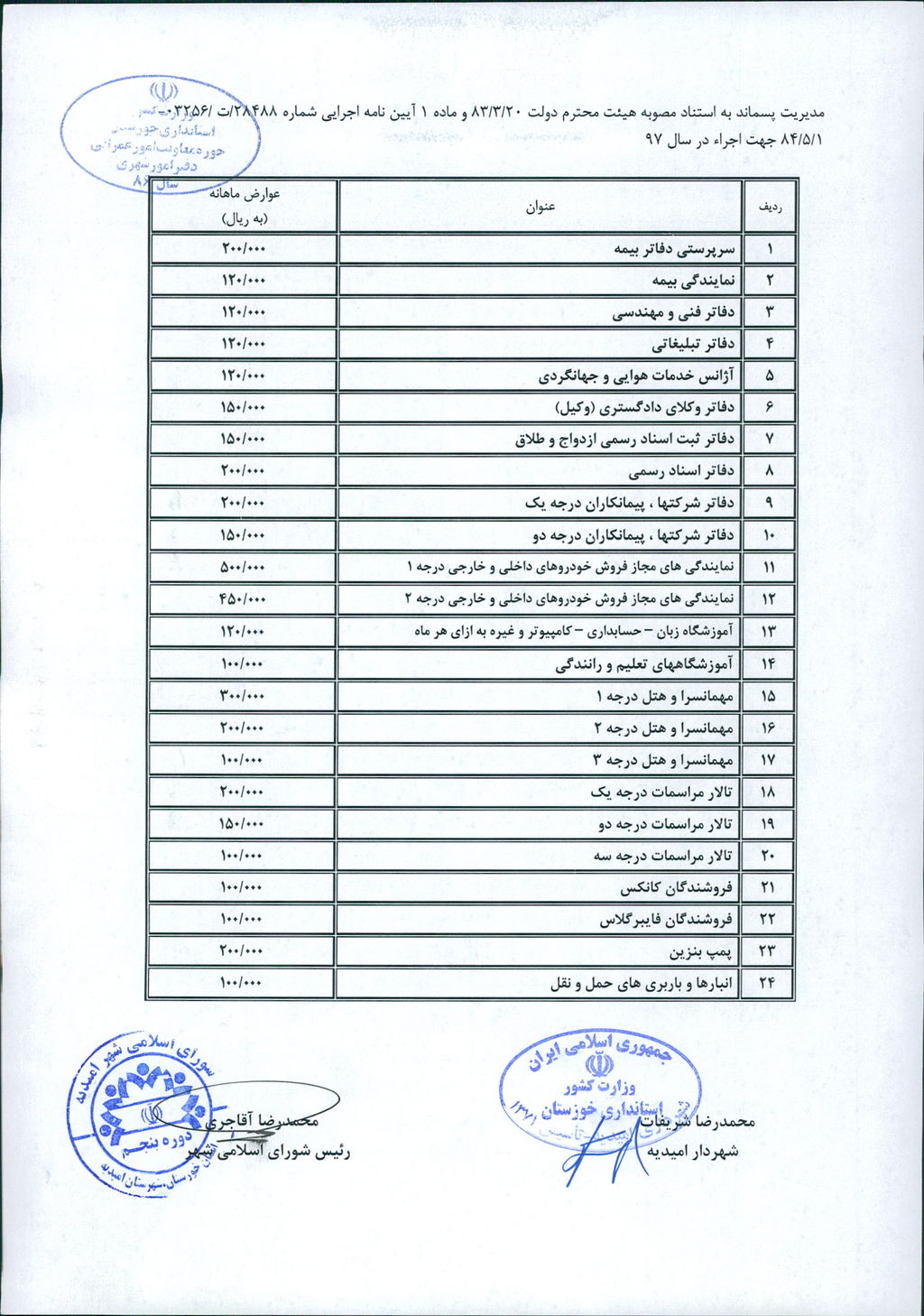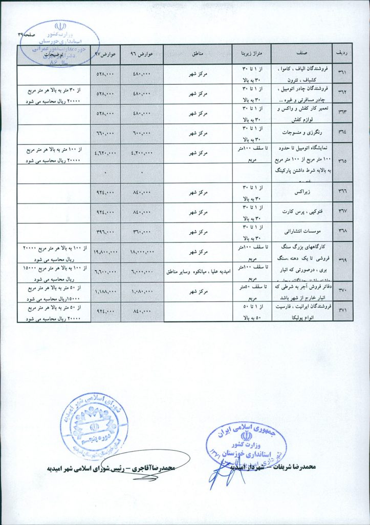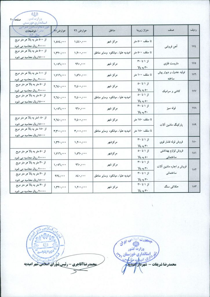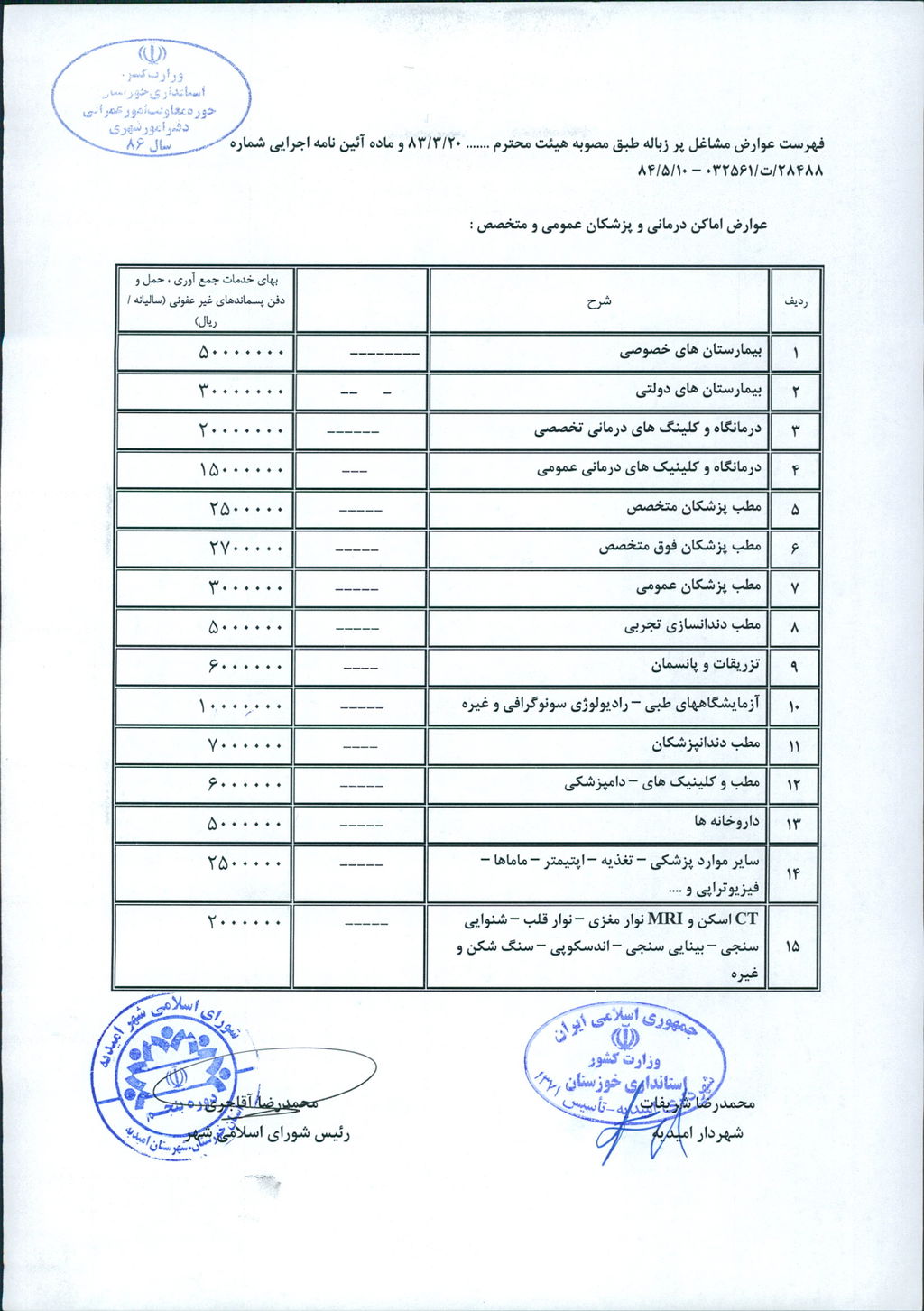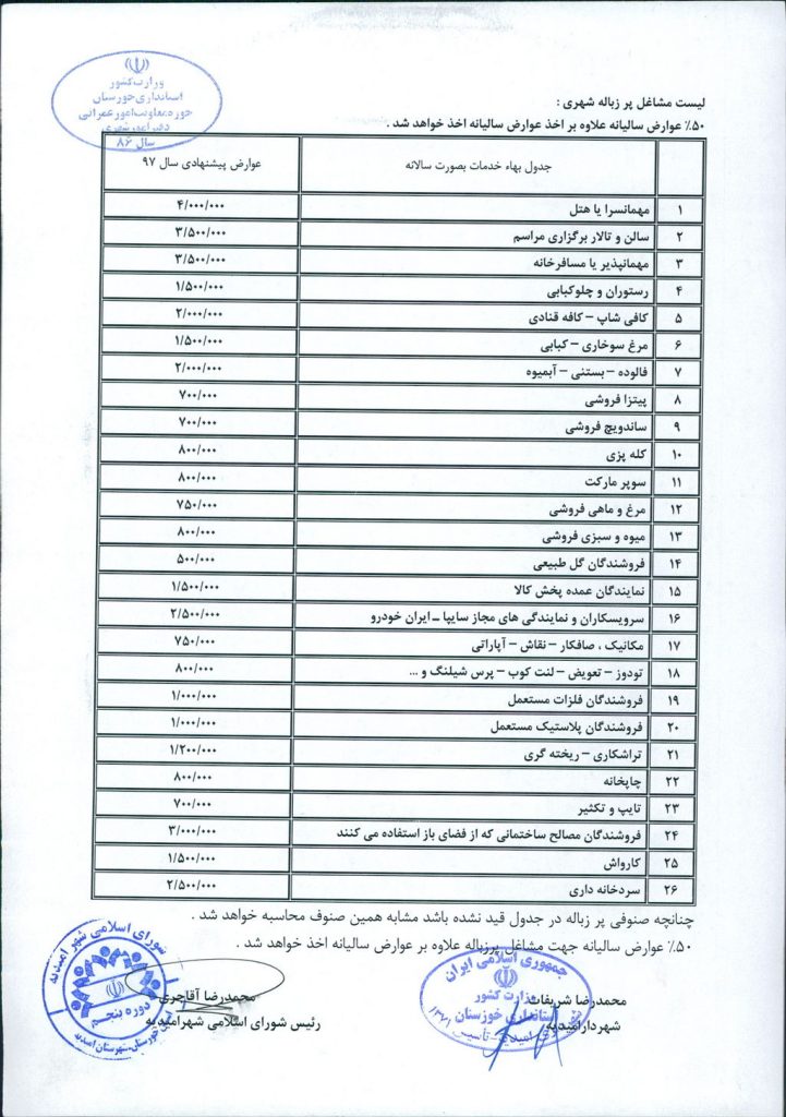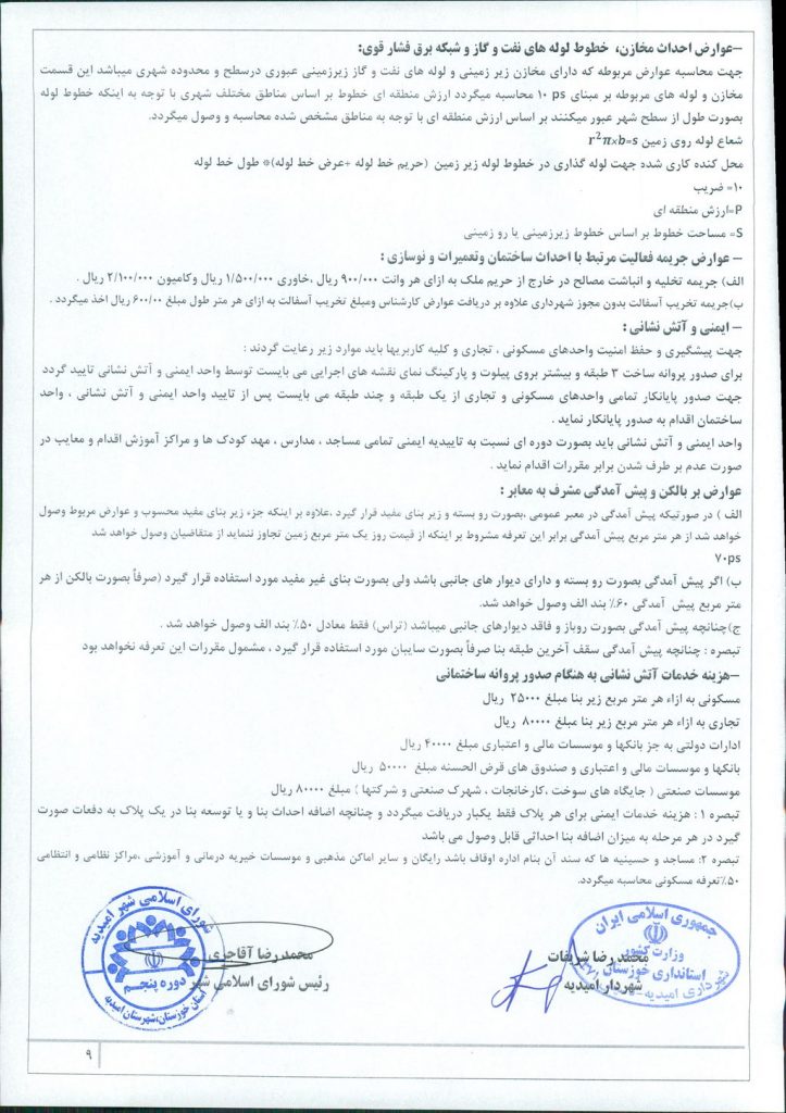 مصوبه شماره ۱ جلسه شماره ۲۱ شورای اسلامی شهر امیدیه