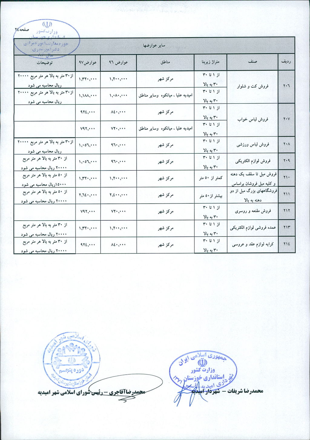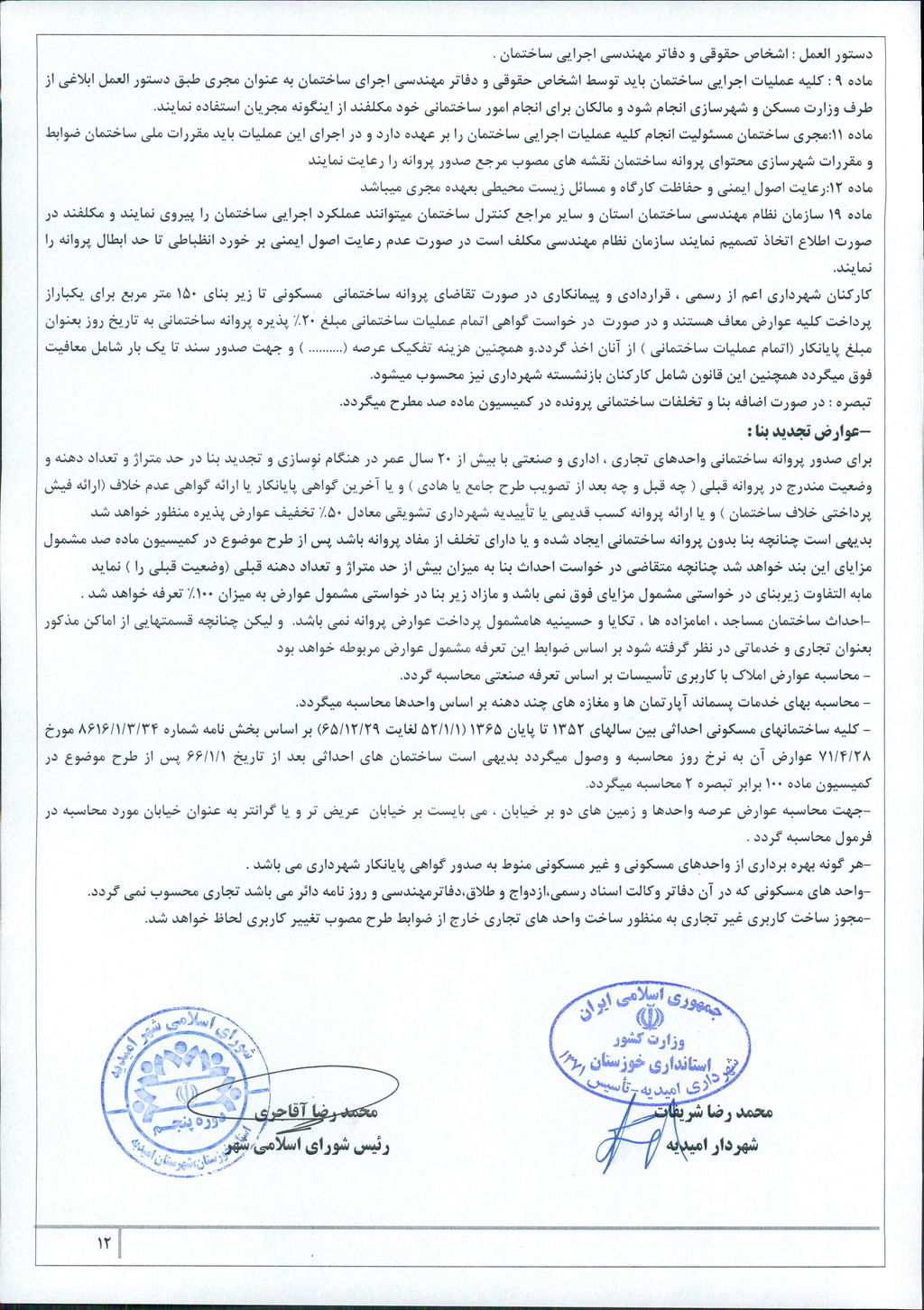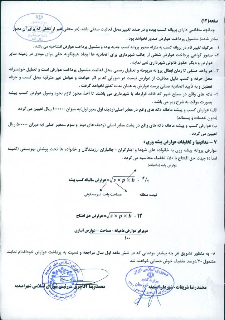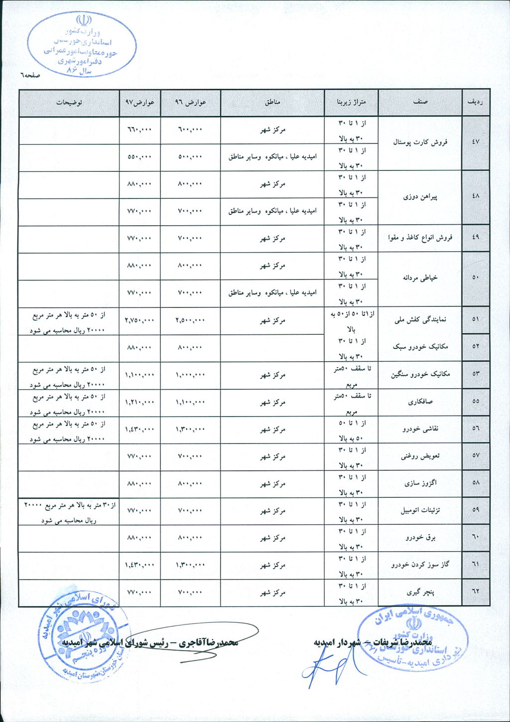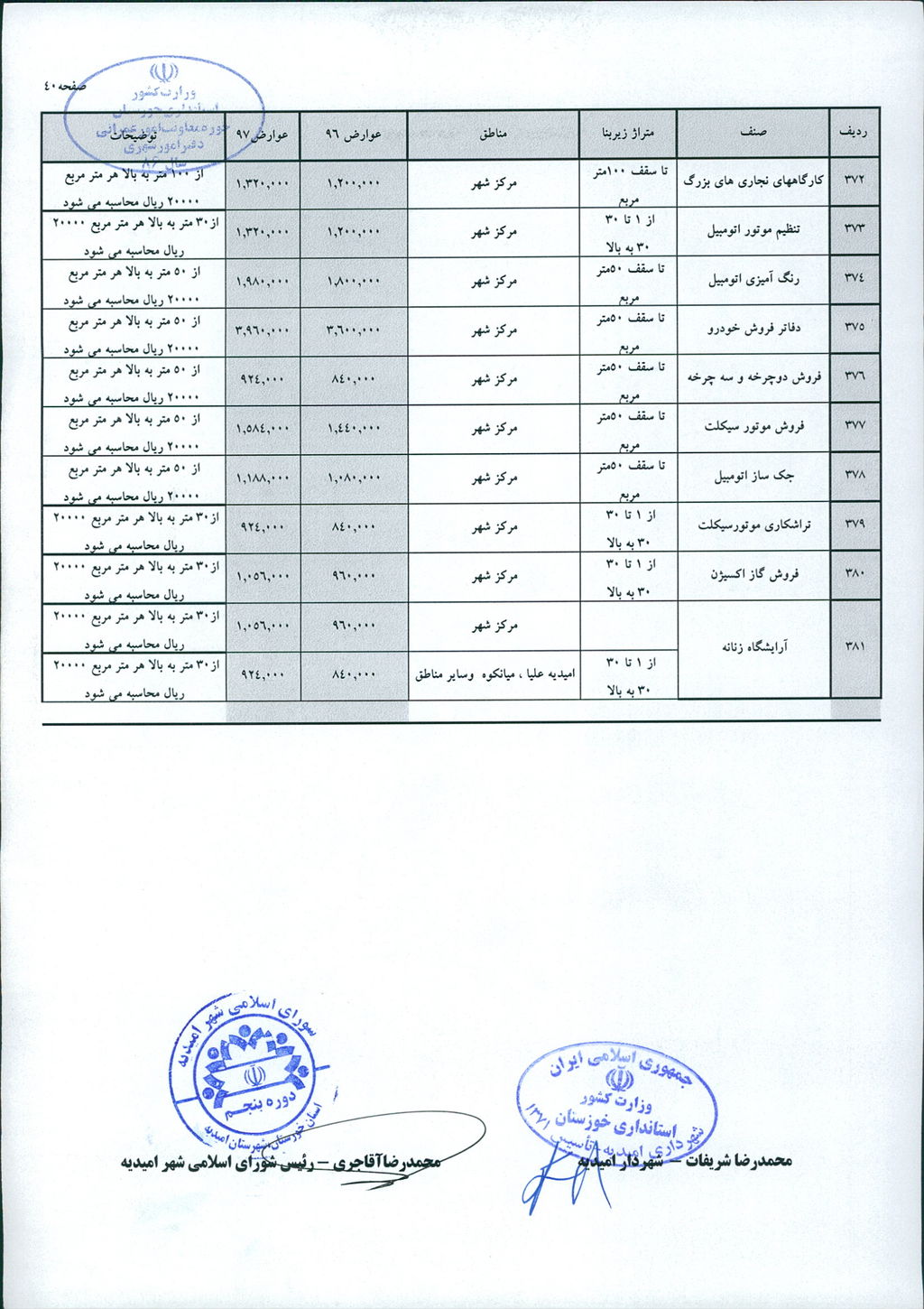مصوبه شماره ۱ جلسه شماره ۲۱ شورای اسلامی شهر امیدیه