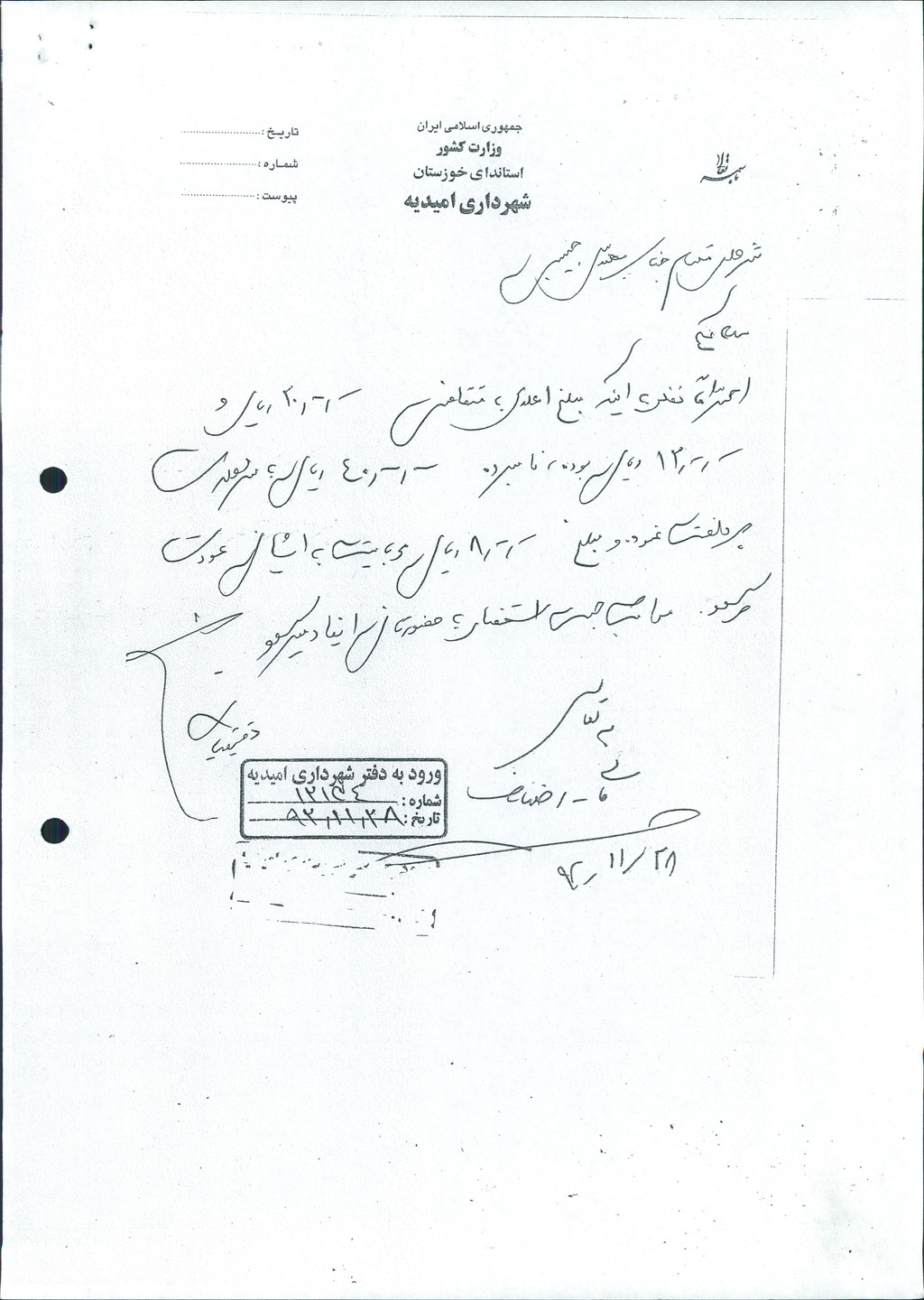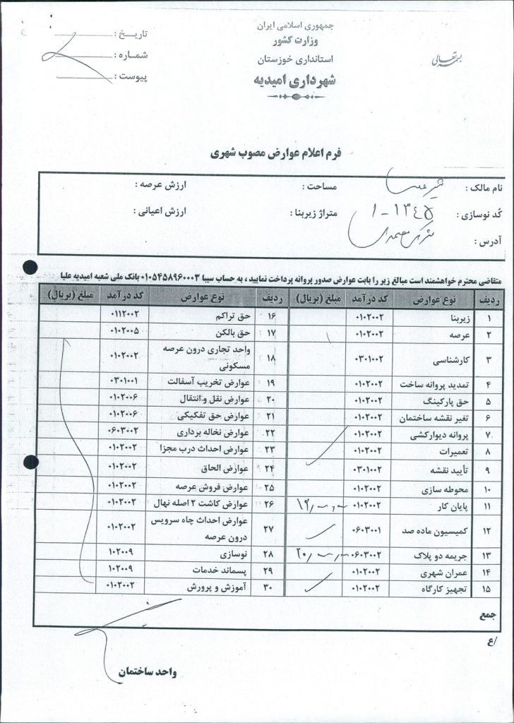 مصوبه واحده جلسه شماره ۲۳ شورای اسلامی شهر امیدیه