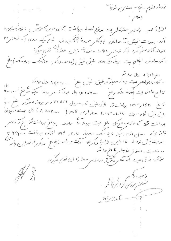 نامه شماره فوق شهرداری در خصوص استرداد اضافه پرداختی عوارض پایانکار آقای عباس آلبوغبیش به مبلغ ۳۶۲۶۰۰۰۰ ریال بانضمام برگ گزارش، درخواست و فیش پرداختی نامبرده در جلسه مطرح و پس از بحث و بررسی با مجموع آراء ذیل مصوب گردید%