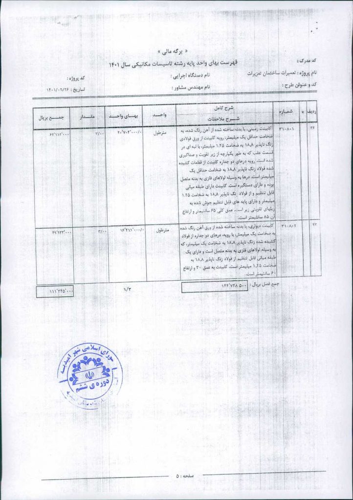 نامه شماره فوق شهرداری در خصوص تعمیر منزل مسکونی قاضی تعزیرات واقع در کوی گلستان خیابان بهزادی در جلسه مطرح و پس از بحث و بررسی با مجموع آراء ذیل با هزینه تعمیرات تا سقف مبلغ سیصد میلیون ریال موافقت گردید.