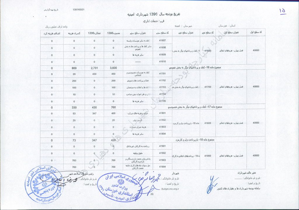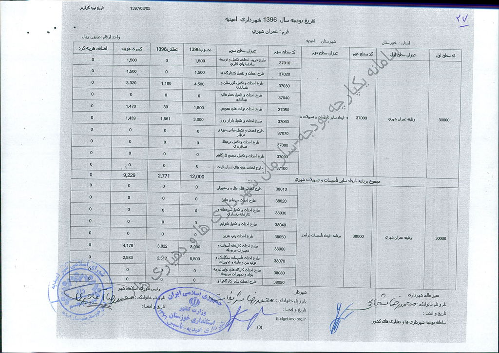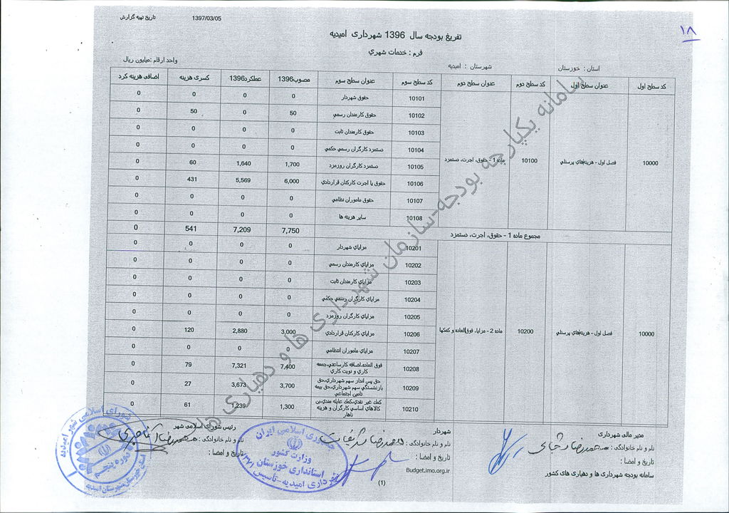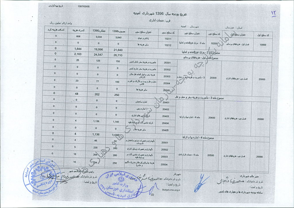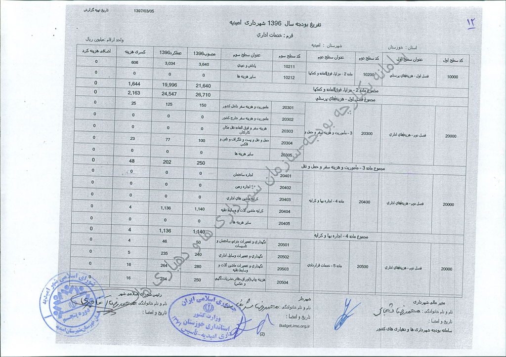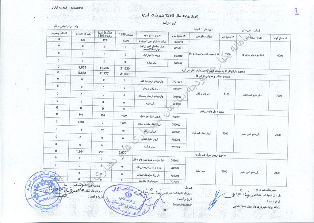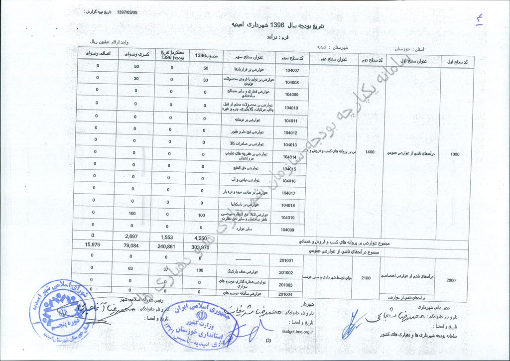 نامه شماره فوق شهرداری در خصوص تفریغ بودجه سال ۱۳۹۶ شهرداری امیدیه به مبلغ ۲۶۳۰۲۲۰۰۰۰۰۰ ريال، طبق ماده ۷۶ وظایف و اختیارات شورای اسلامی شهر در جلسه مطرح و پس از بحث و بررسی با مجموع آراء ذیل مصوب گردید%