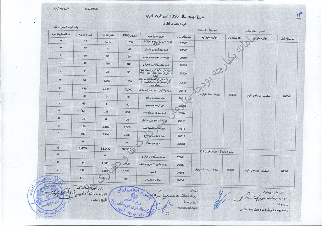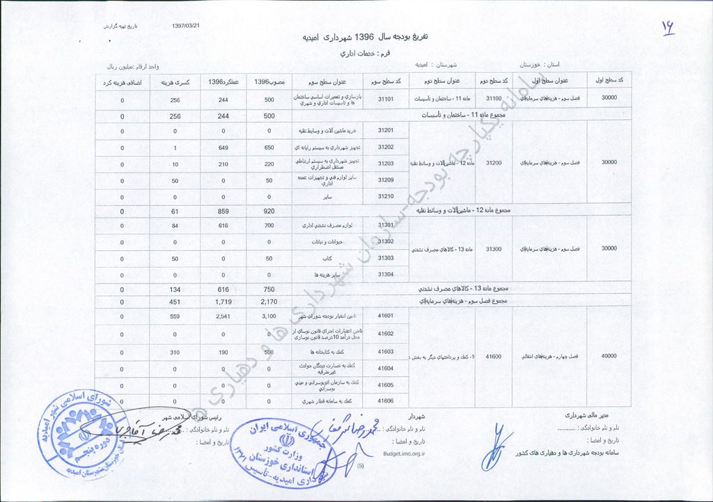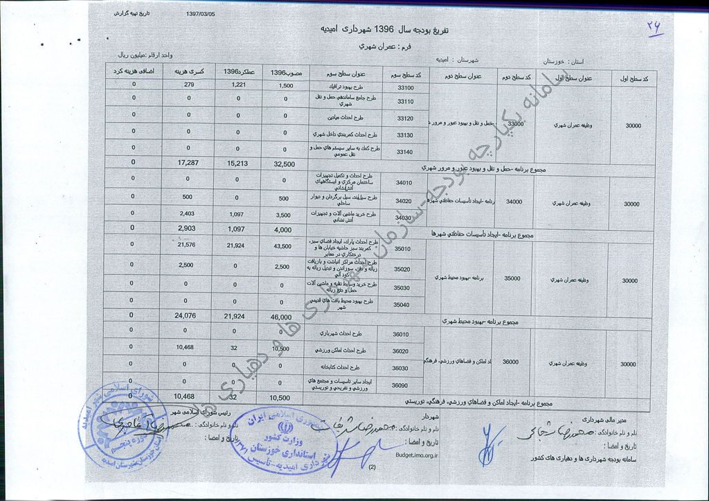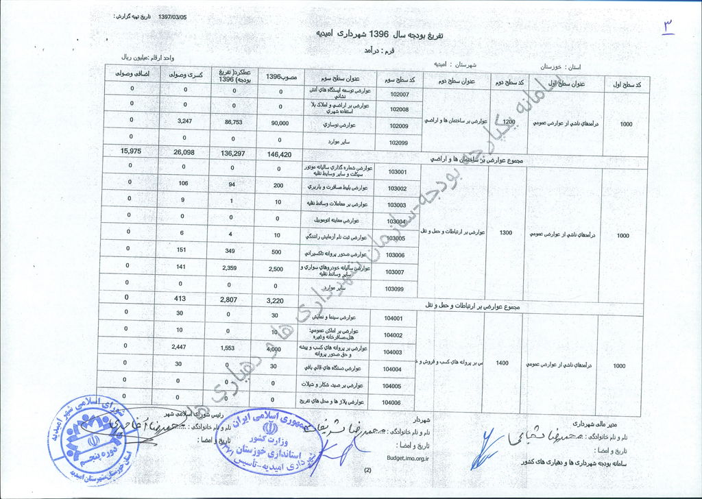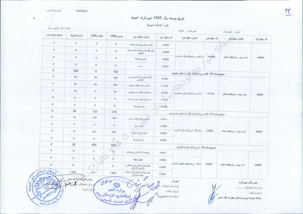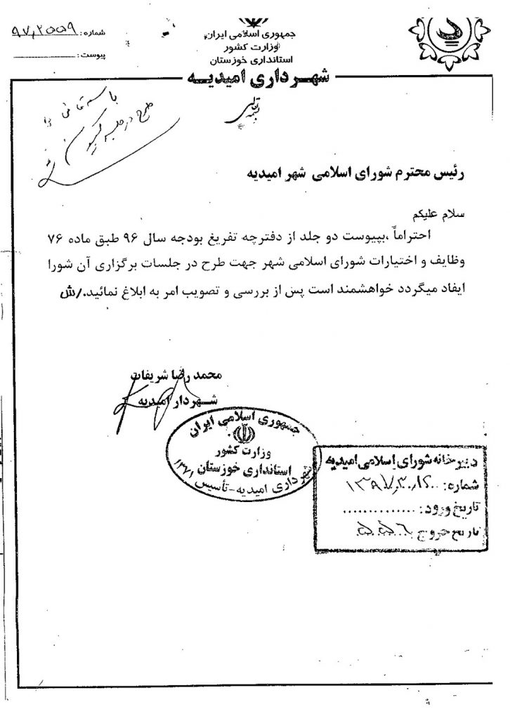 مصوبه شماره ۱ جلسه شماره ۳۲ شورای اسلامی شهر امیدیه