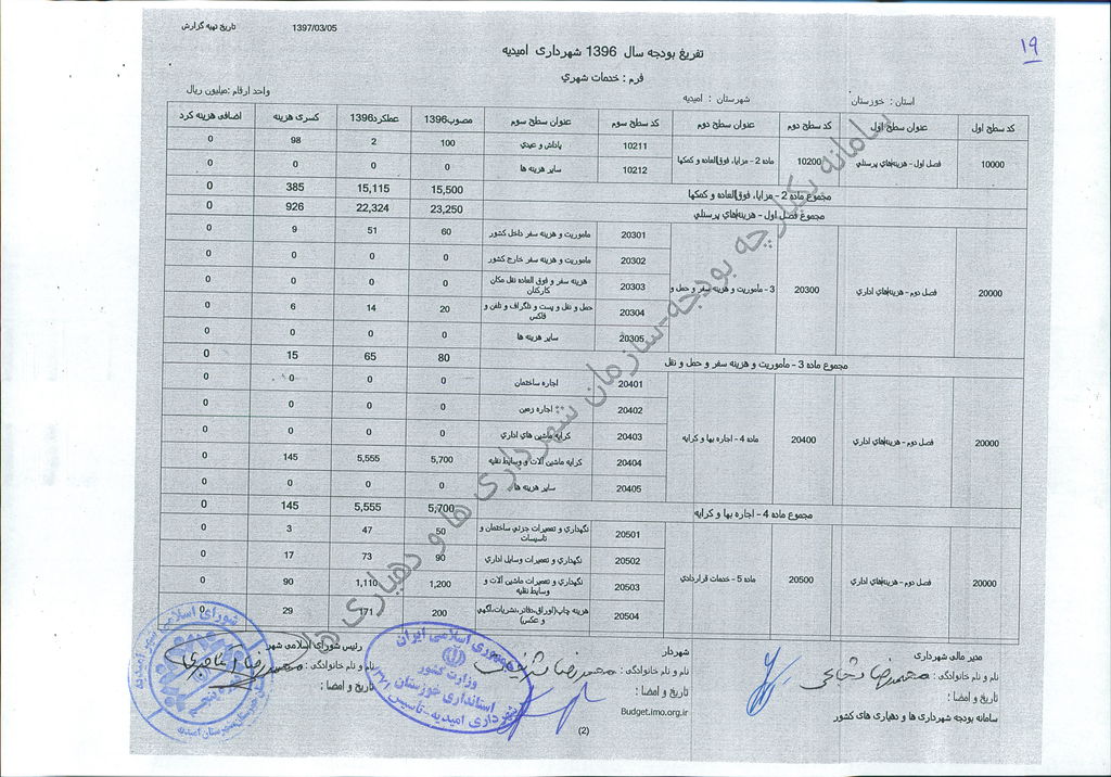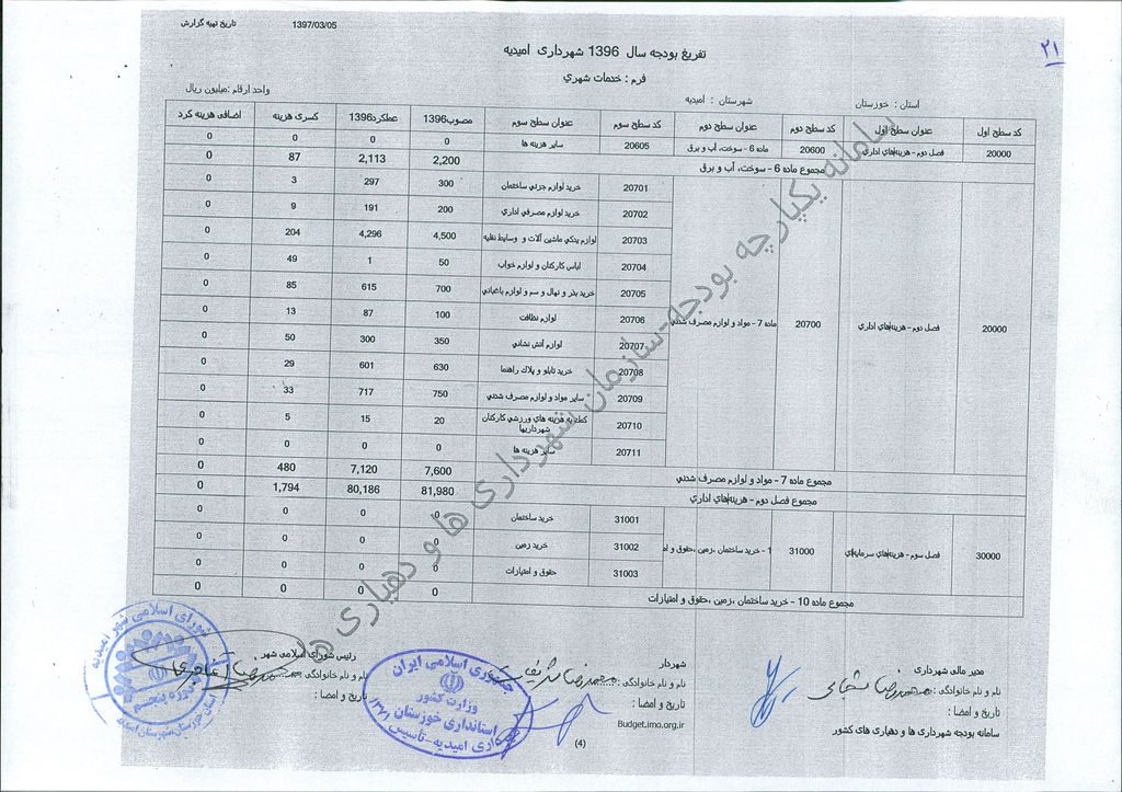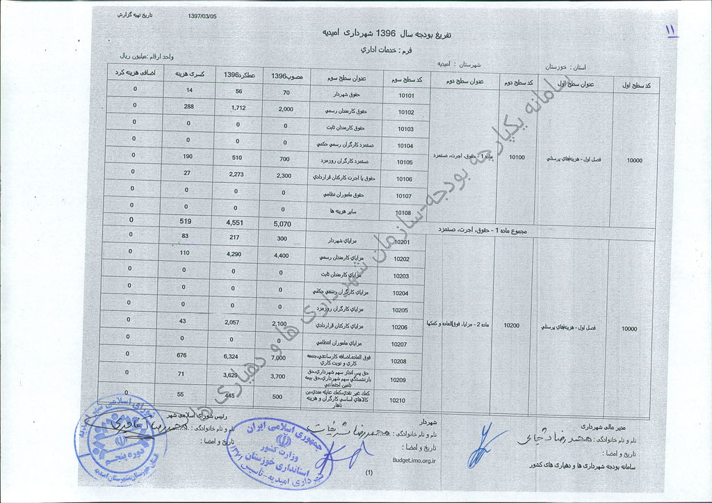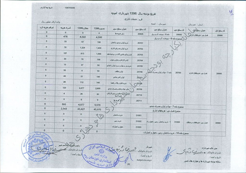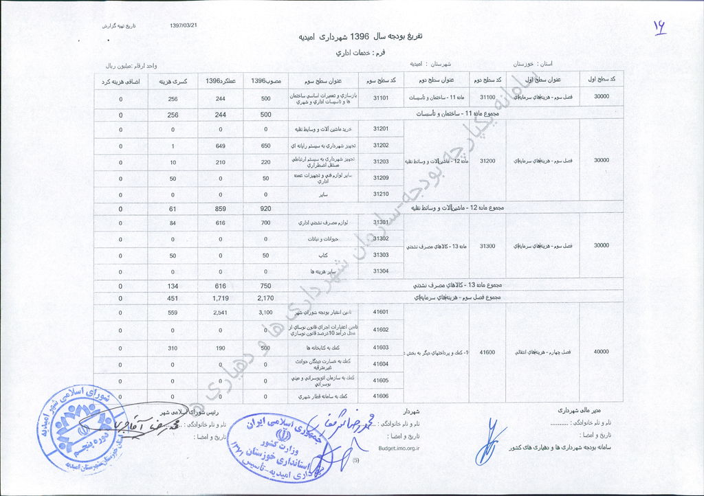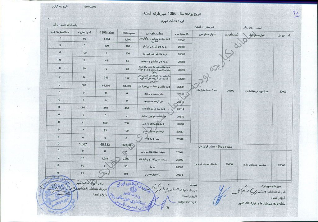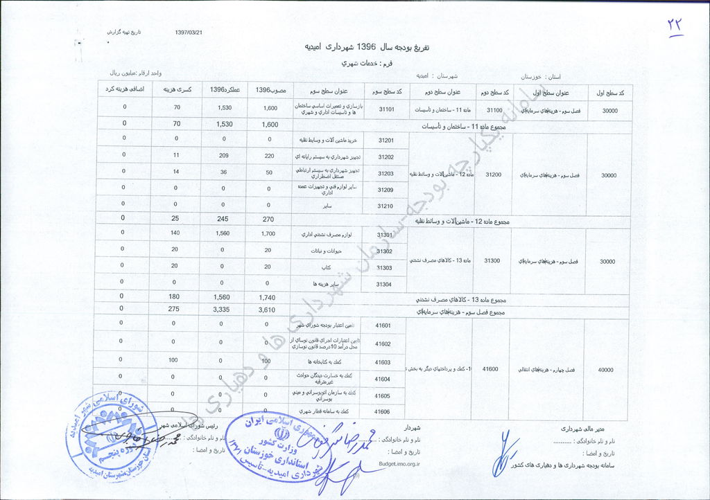 مصوبه شماره ۱ جلسه شماره ۳۲ شورای اسلامی شهر امیدیه