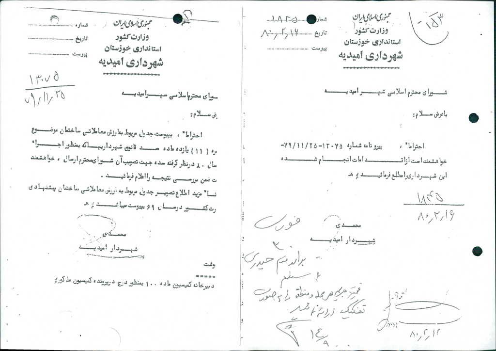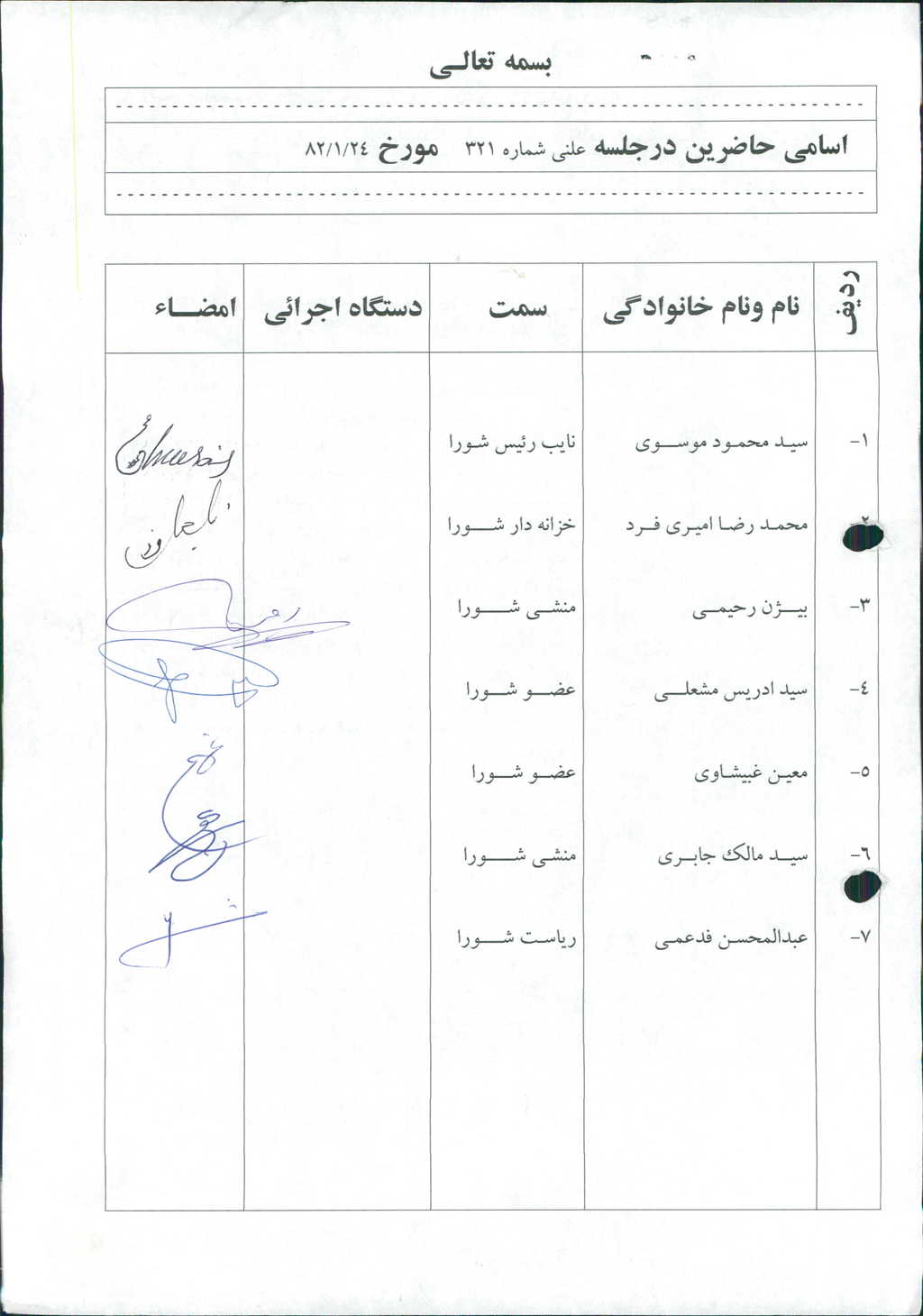 مصوبه شماره ۱ جلسه شماره ۳۲۱ شورای اسلامی شهر امیدیه
