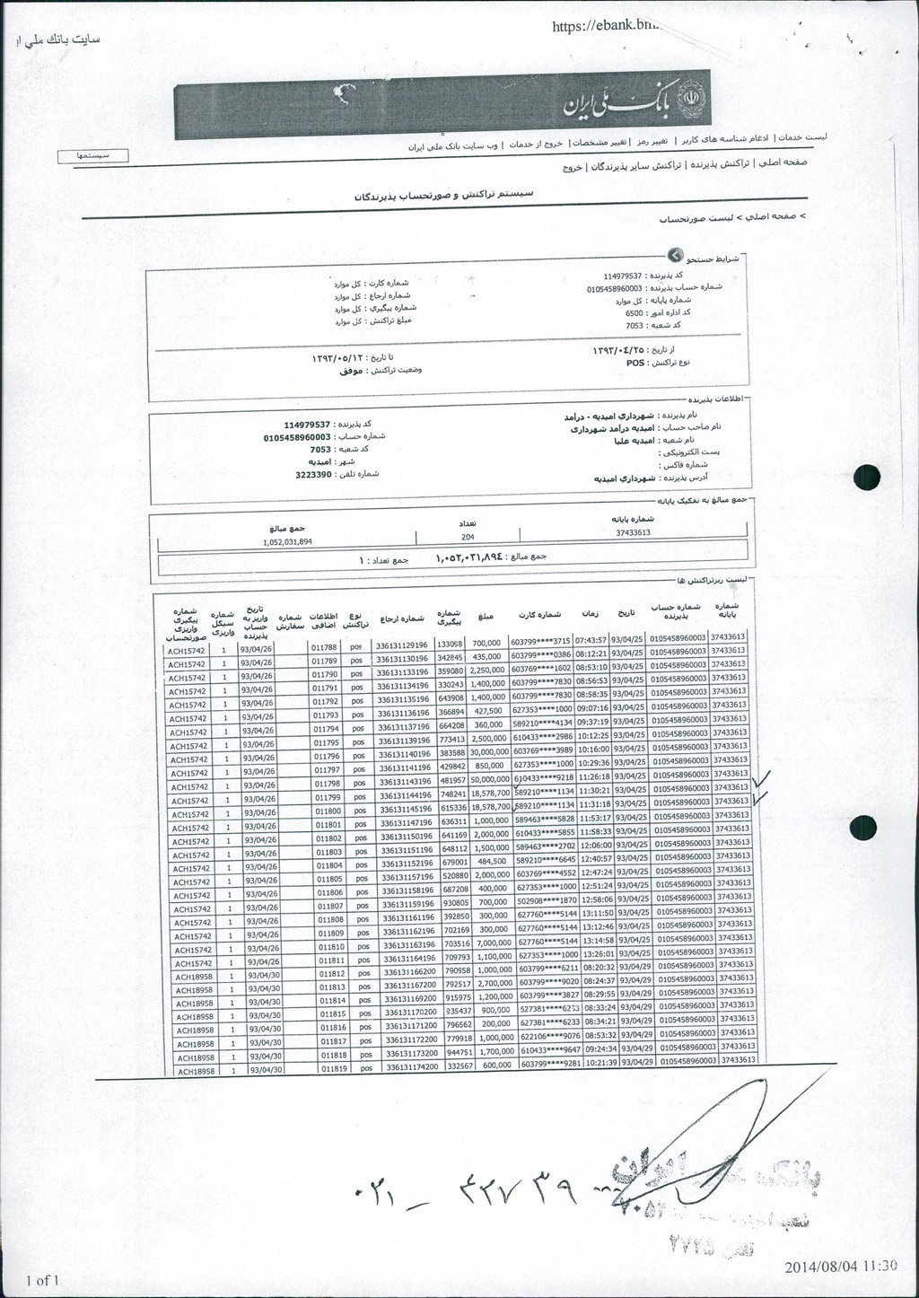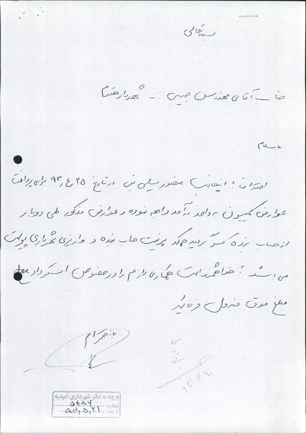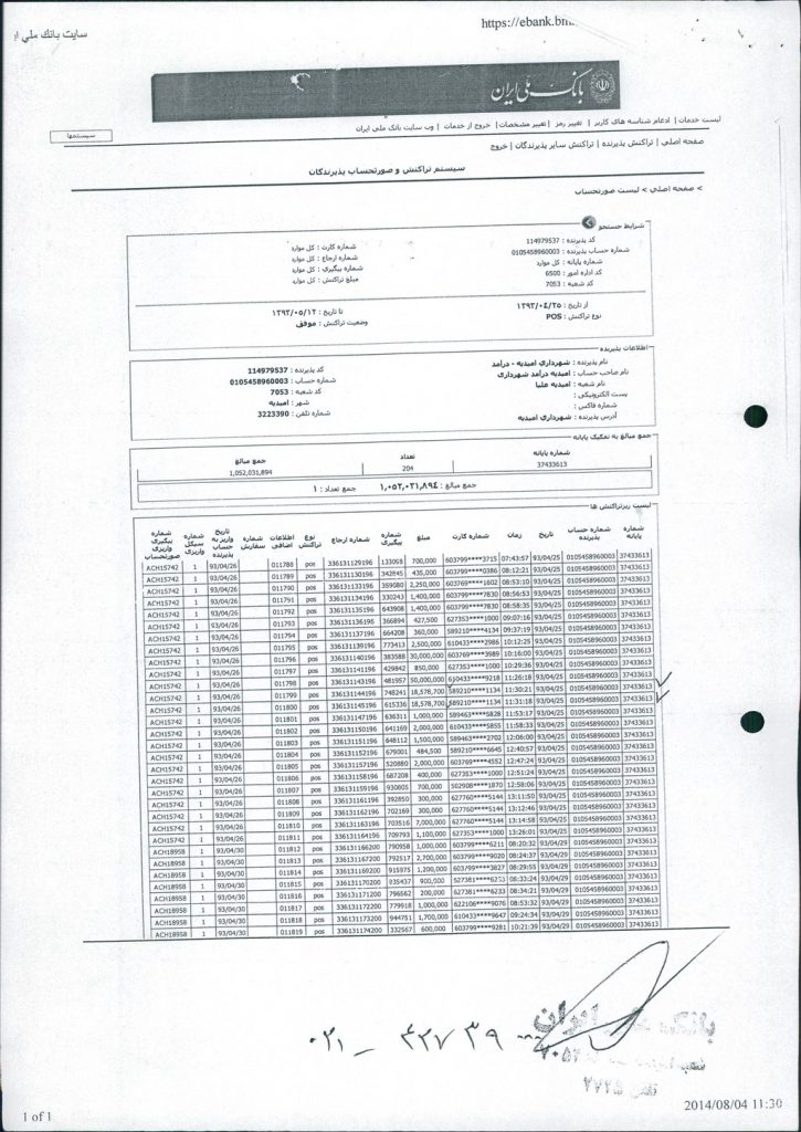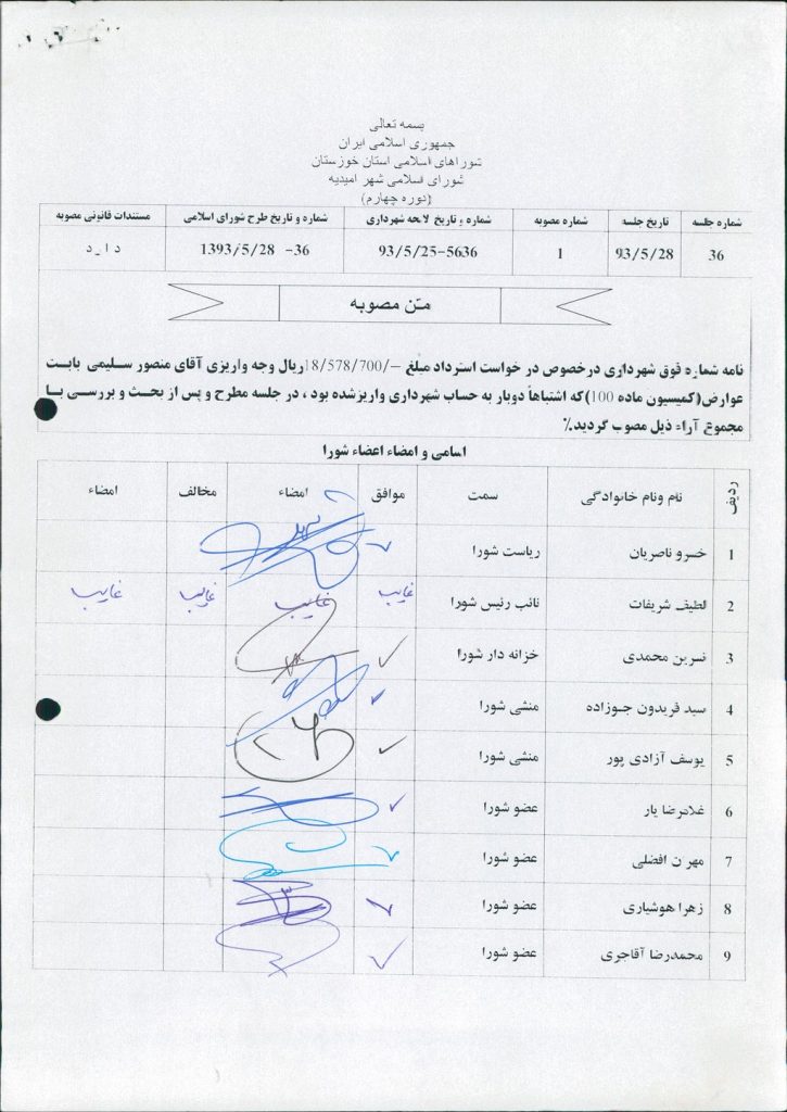 مصوبه شماره ۱ جلسه شماره ۳۶ مورخ ۹۳/۵/۲۸ شورای اسلامی شهر امیدیه