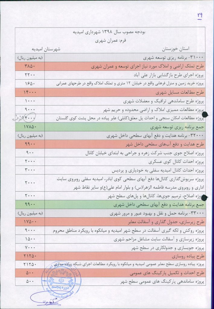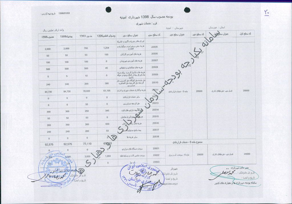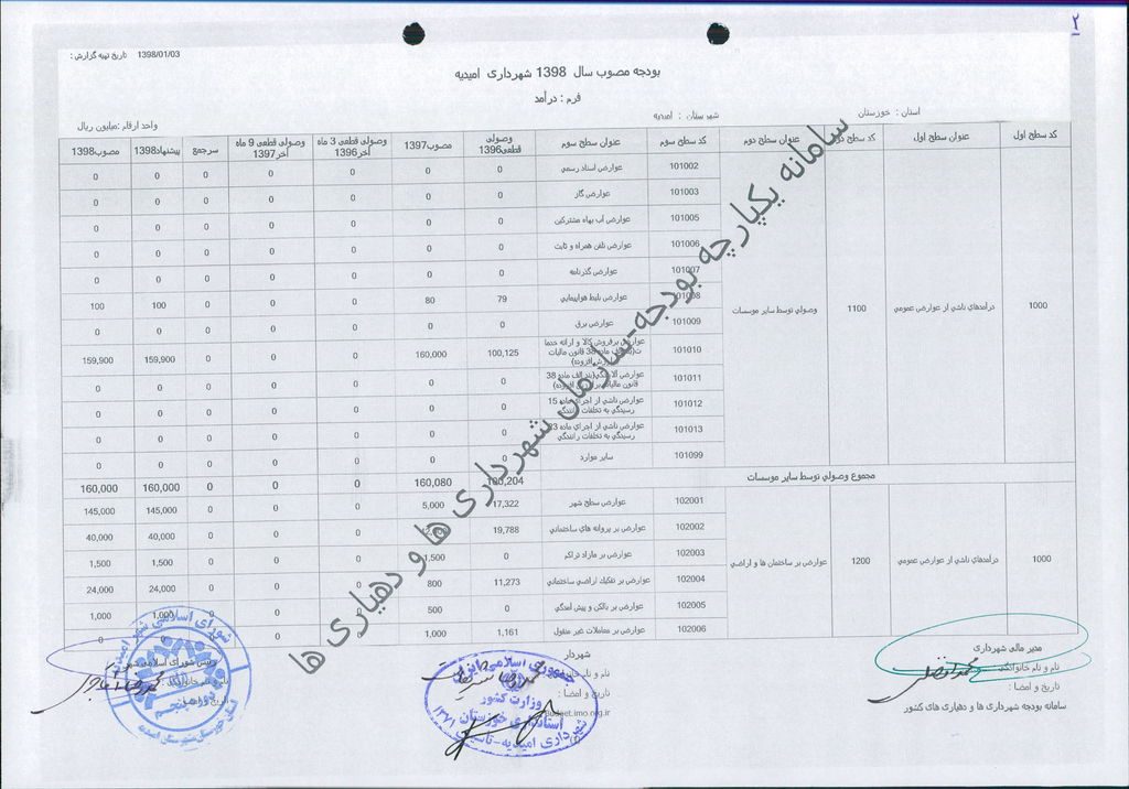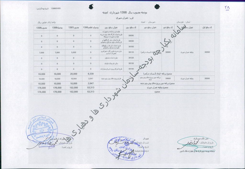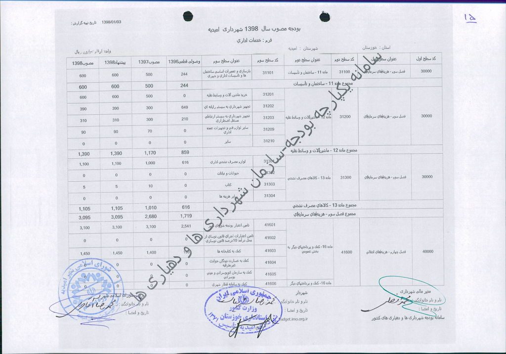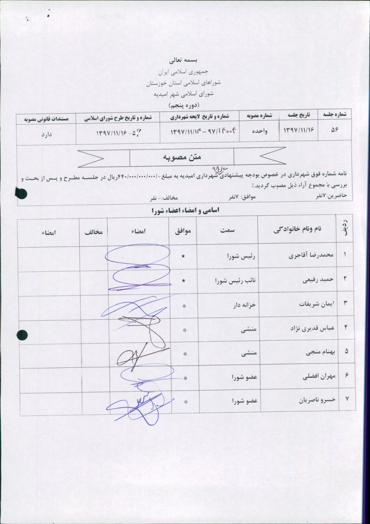 مصوبه شماره ۱ جلسه شماره۵۶ شورای اسلامی شهر امیدیه
