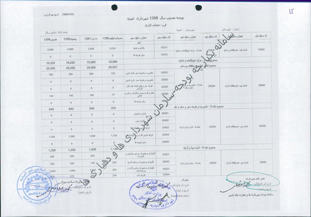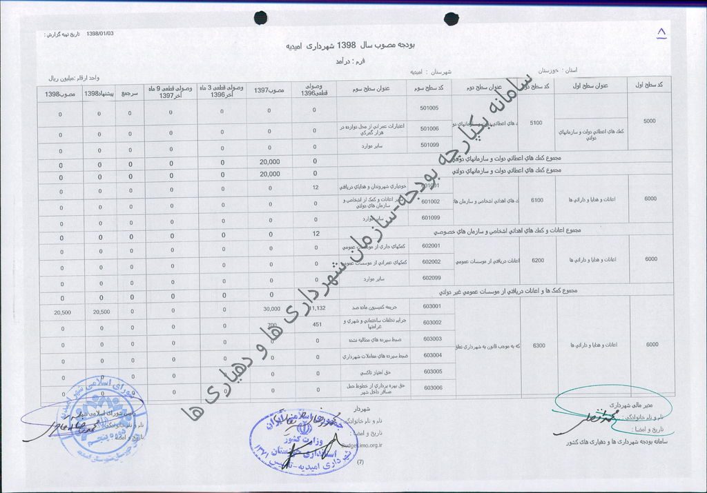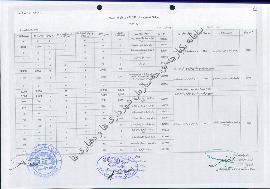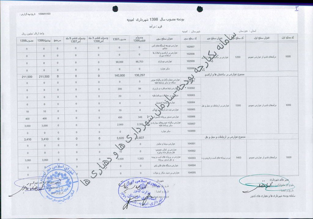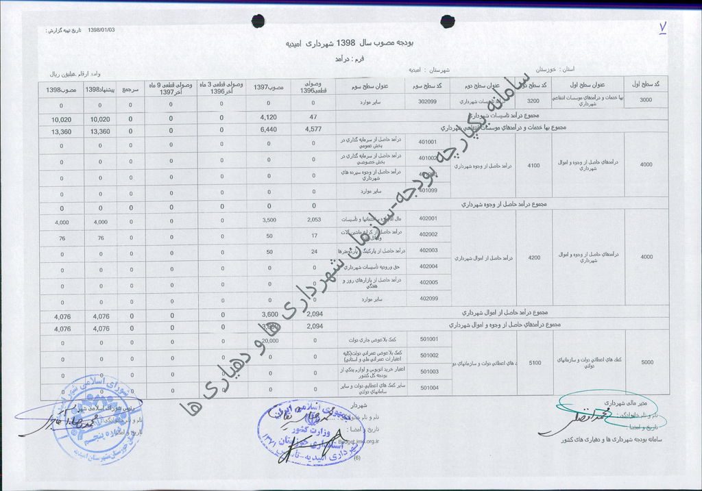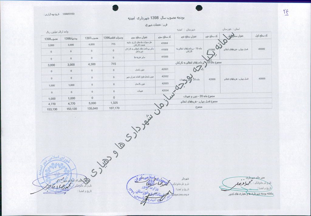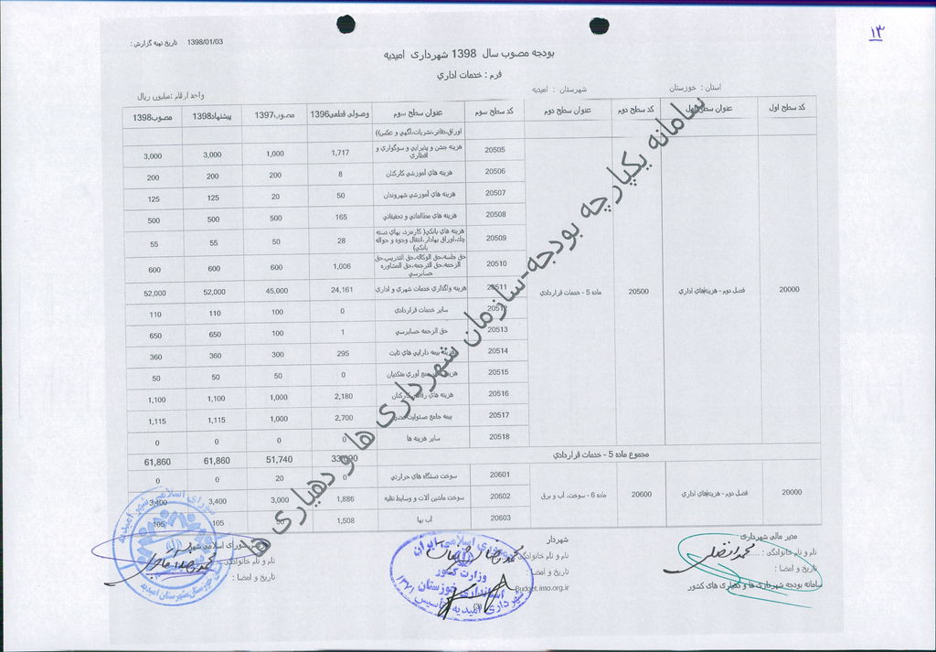 مصوبه شماره ۱ جلسه شماره۵۶ شورای اسلامی شهر امیدیه