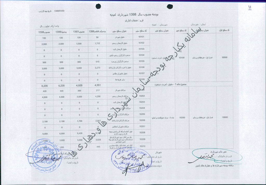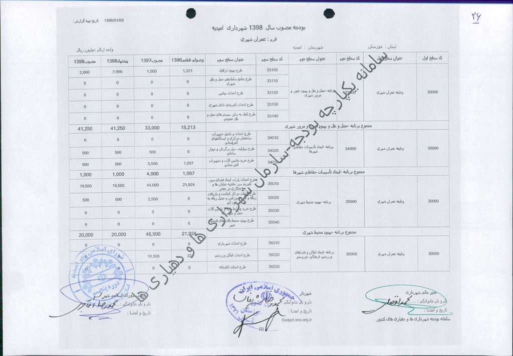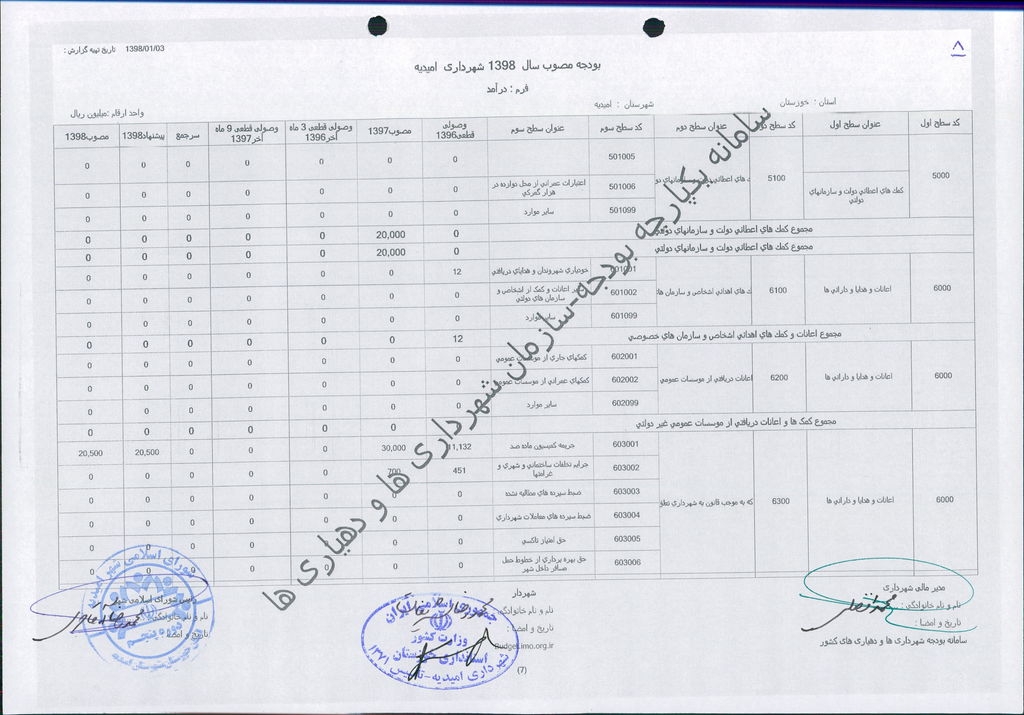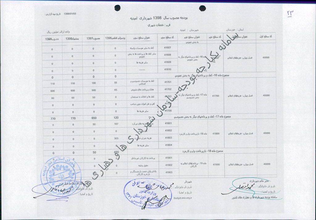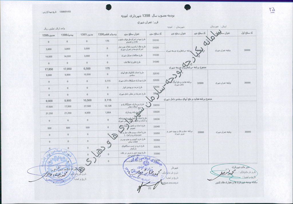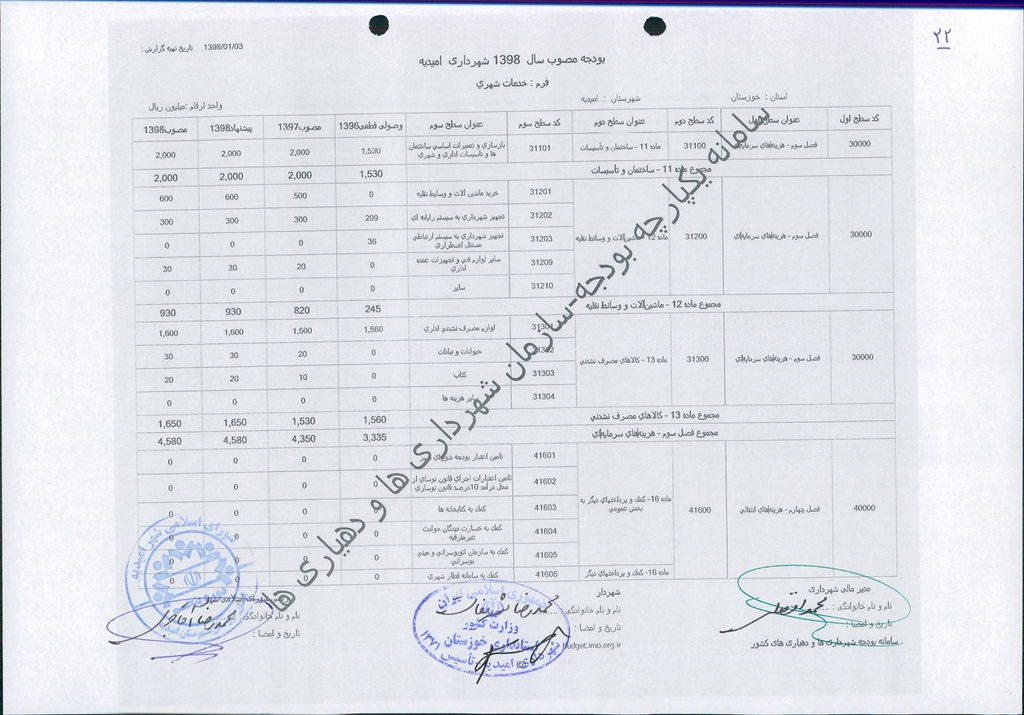مصوبه شماره ۱ جلسه شماره۵۶ شورای اسلامی شهر امیدیه
