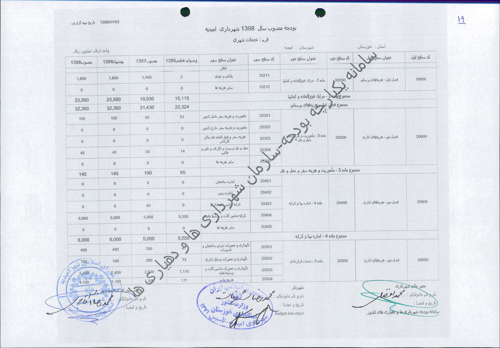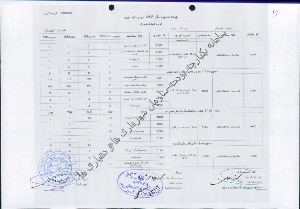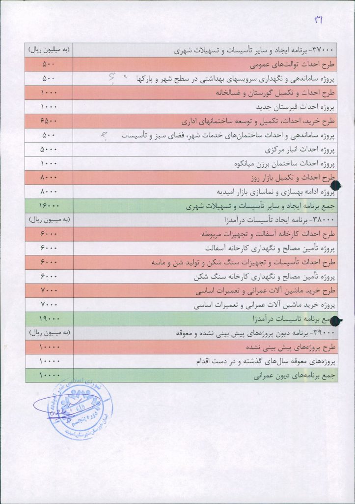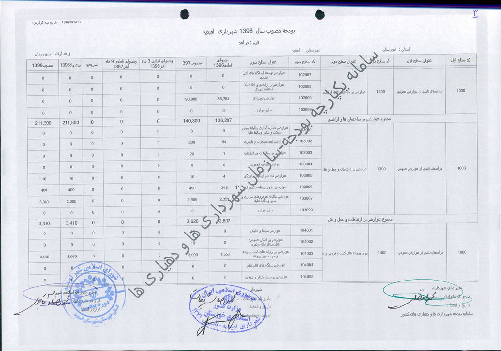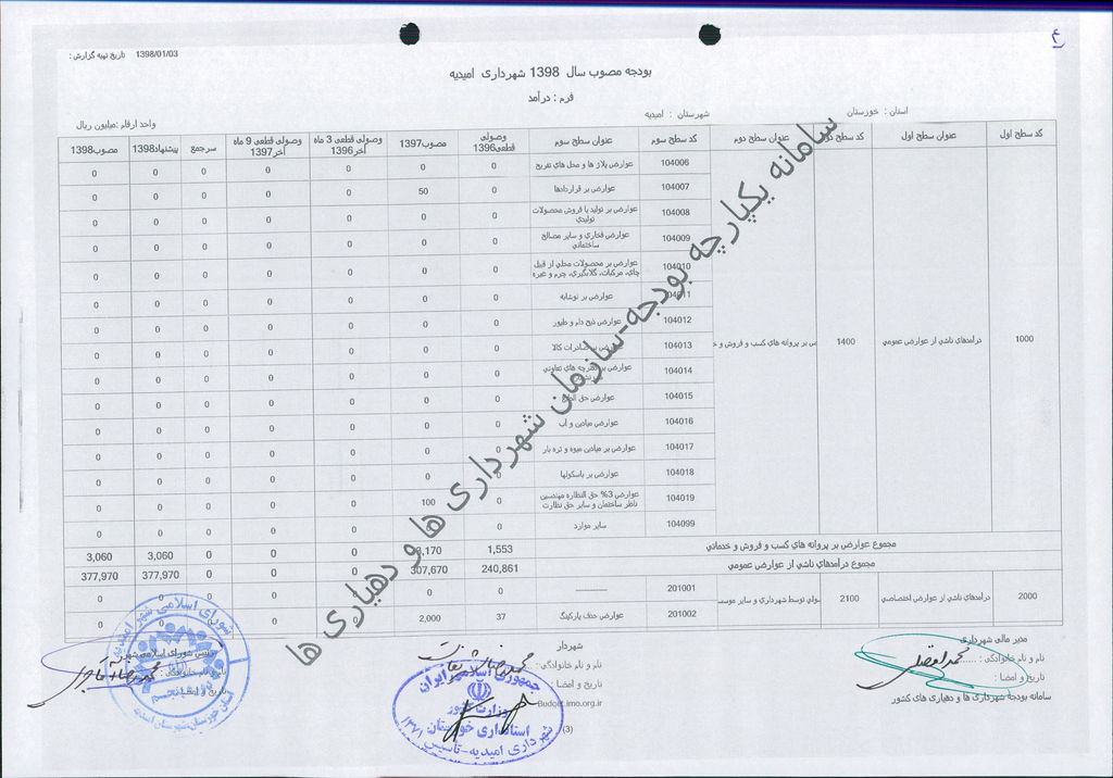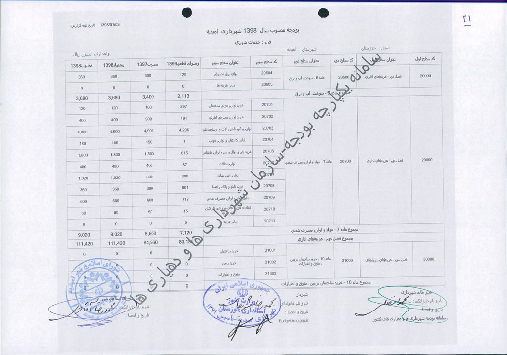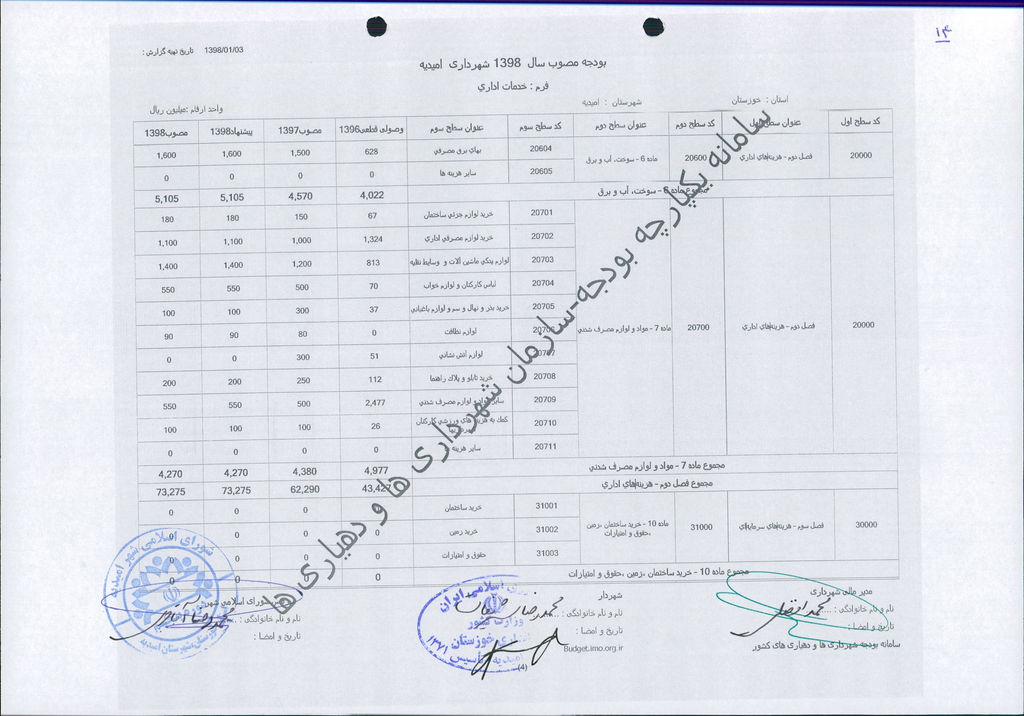 مصوبه شماره ۱ جلسه شماره۵۶ شورای اسلامی شهر امیدیه