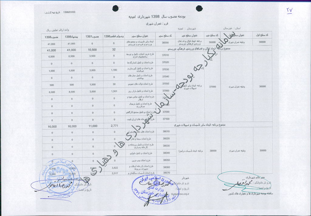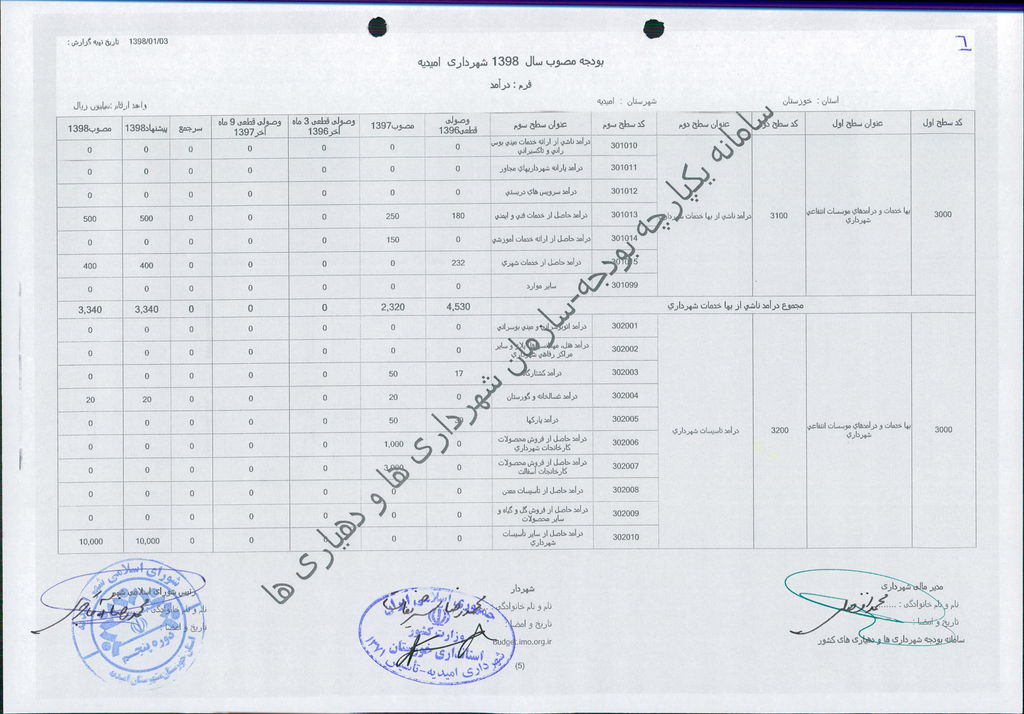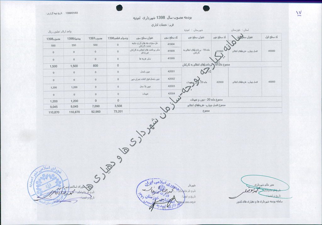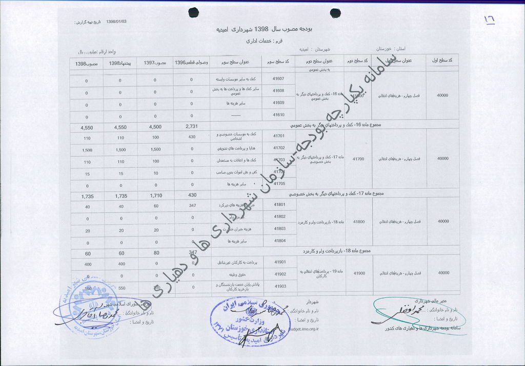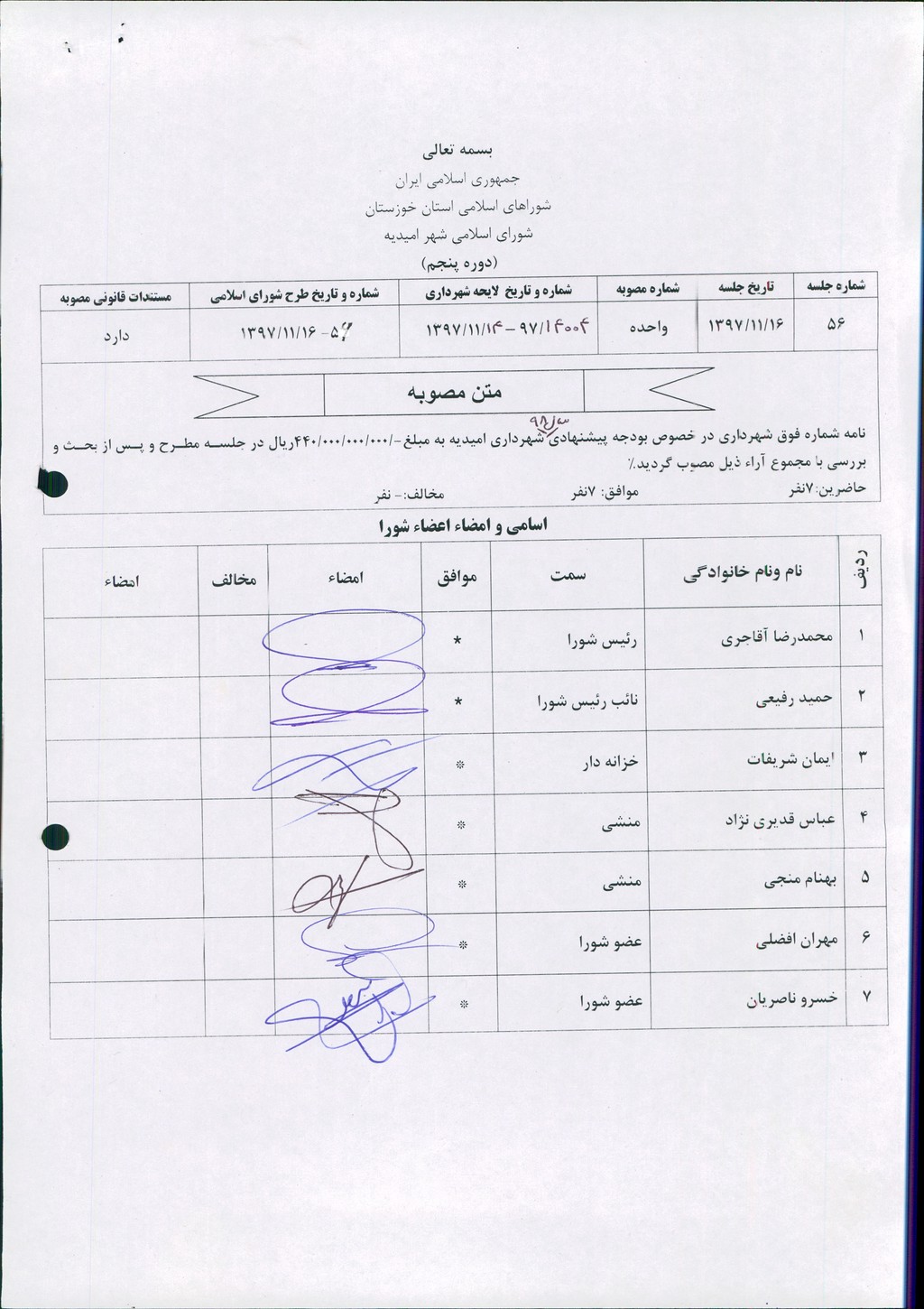 مصوبه شماره ۱ جلسه شماره ۵۶ مورخ ۹۷/۱۱/۱۶ شورای اسلامی شهر امیدیه